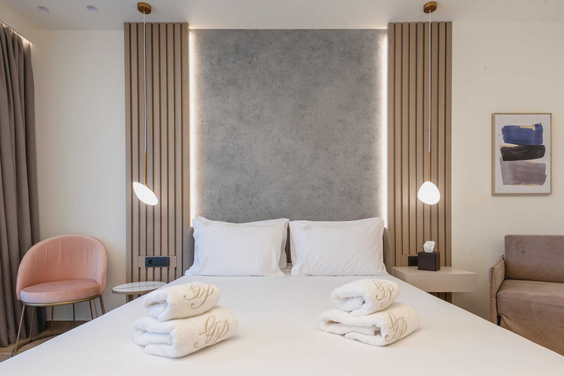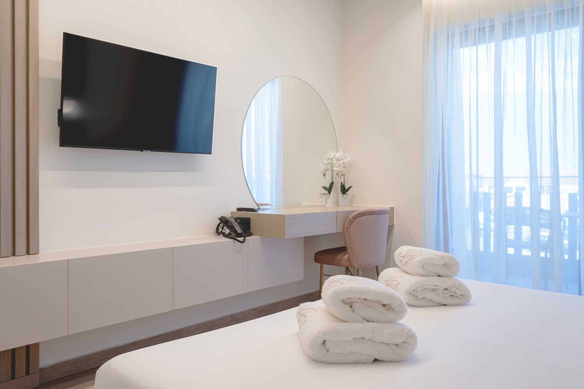 Dobbeltværelse med balkon eller terrasse. En dobbeltseng eller to enkeltsenge. Mulighed for ekstra opredning i sovesofa. Køleskab. El-kedel og kaffe/te. Gratis wifi, aircondition og deponering. Tv med internationale kanaler. Tøfler. Hårtørrer. Badeværelse med bruser og toilet. Rengøring 6 gange om ugen.