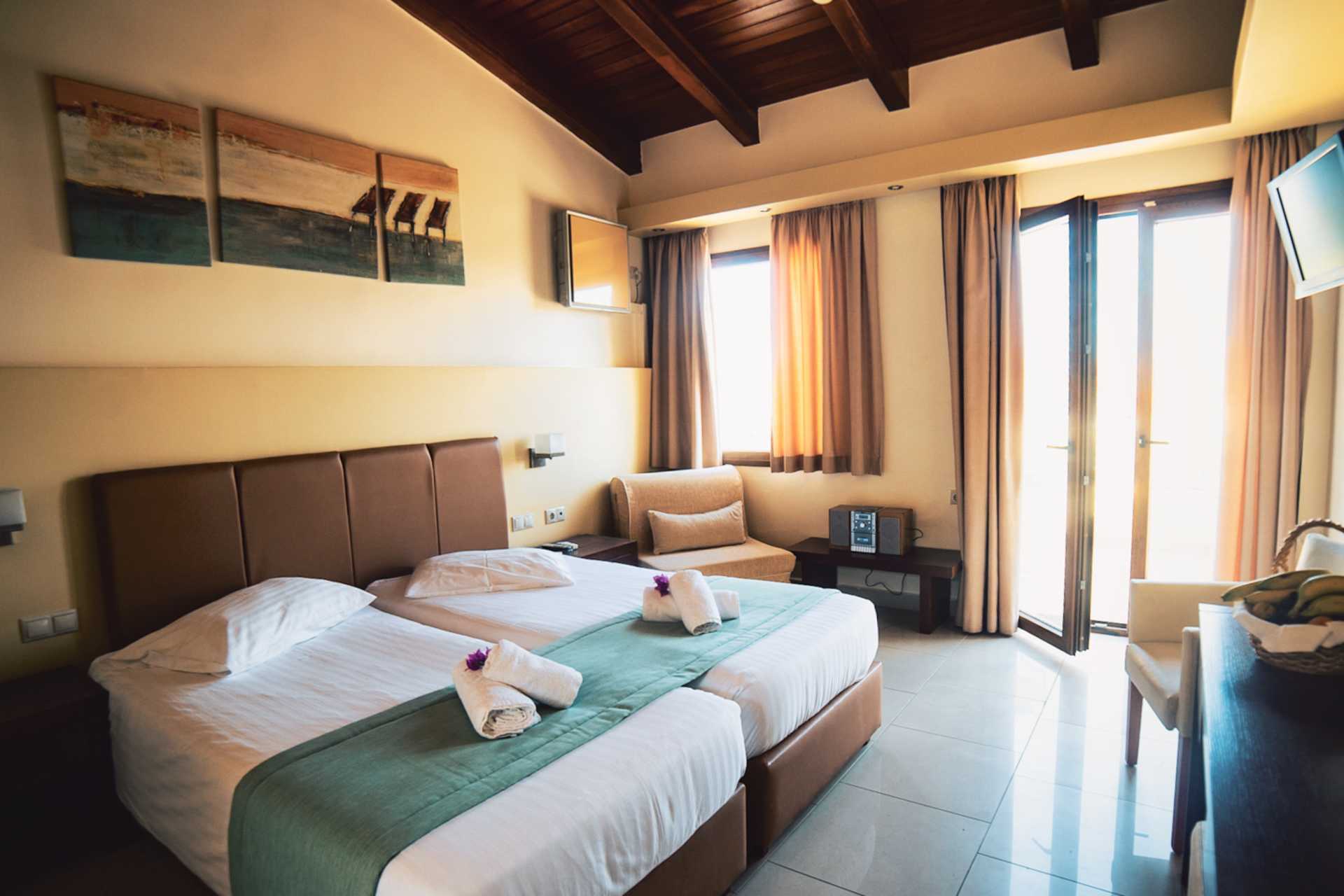 Dobbeltværelser med balkon og havudsigt eller delvis havudsigt. To enkeltsenge. Mulighed for ekstra opredning i enkeltseng. Gratis wifi og aircondition. Køleskab. El-kedel og kaffe/te. Tv med internationale kanaler. Niveauforskelle med et par trin inde i rummet. Hårtørrer. Badeværelse med badekar og toilet. Rengøring 7 gange om ugen.