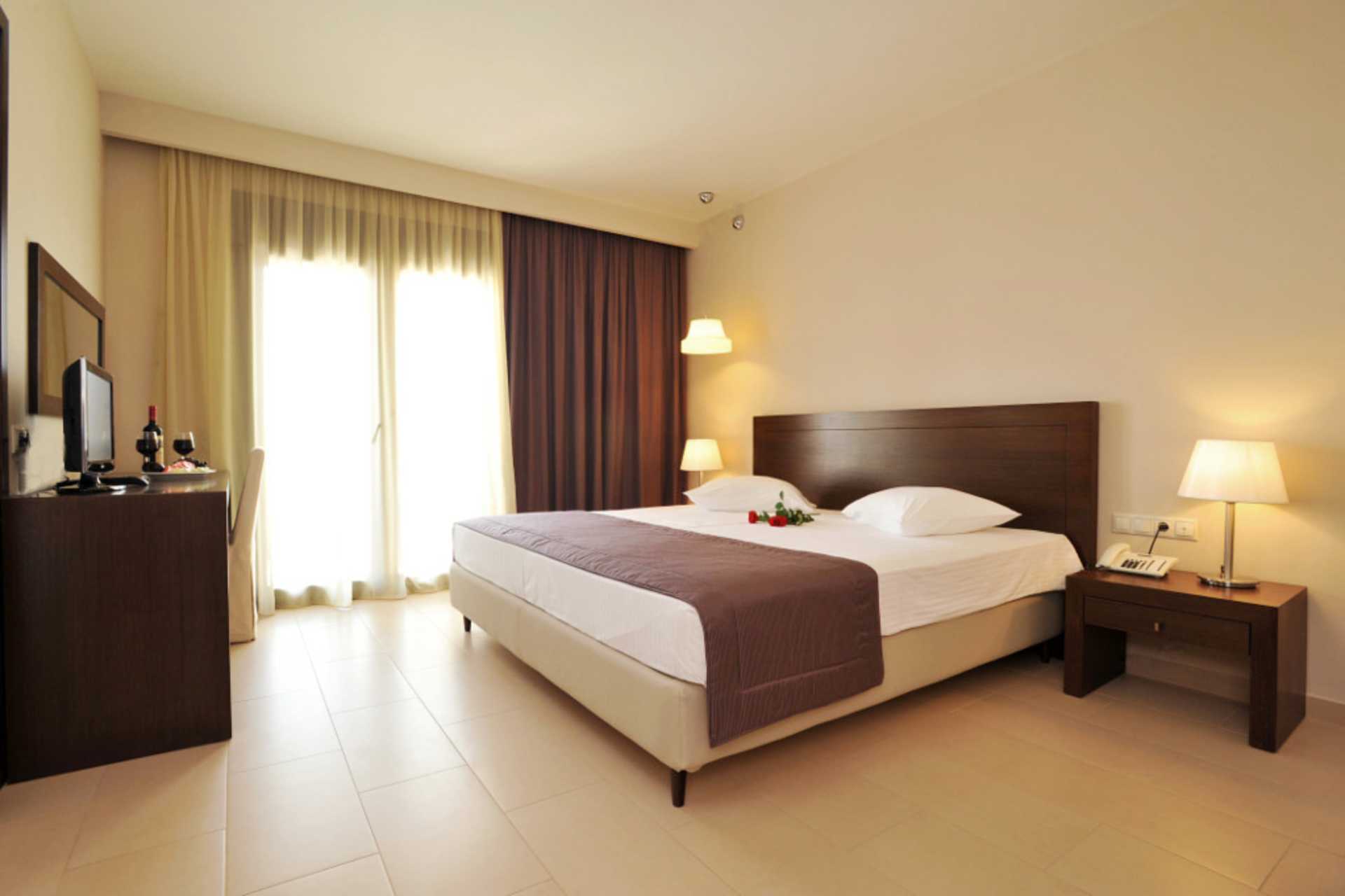 Større dobbeltværelse med balkon med havudsigt eller delvis havudsigt. En dobbeltseng eller to enkeltsenge. Mulighed for ekstra opredning i enkeltseng. Gratis wifi, aircondition og deponering. Køleskab - en flaske vand indgår ved ankomst. El-kedel og kaffe/te. Tv med internationale kanaler. Hårtørrer. Badeværelse med badekar/bruser og toilet. Rengøring 7 gange om ugen.