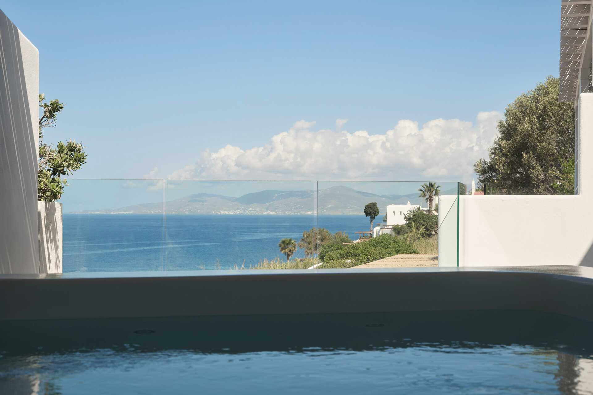 Executive-suite med havudsigt og jacuzzi på terrassen i stueplan. Terrassen har også en behagelig loungesofa og et tag til solbeskyttelse. En dobbeltseng. Mulighed for en ekstra opredning i sovesofaen. Gratis wifi, aircondition og deponering. Minibar. Nespresso-maskine. TV med internationale kanaler. Marshall Bluetooth-højttalere. Badekåber og tøfler. Fritstående badekar i soveværelset. Hårtørrer. Badeværelse med bruser og toilet. Acqua di Parma badeværelsesartikler. Rengøring 7 gange om ugen.
