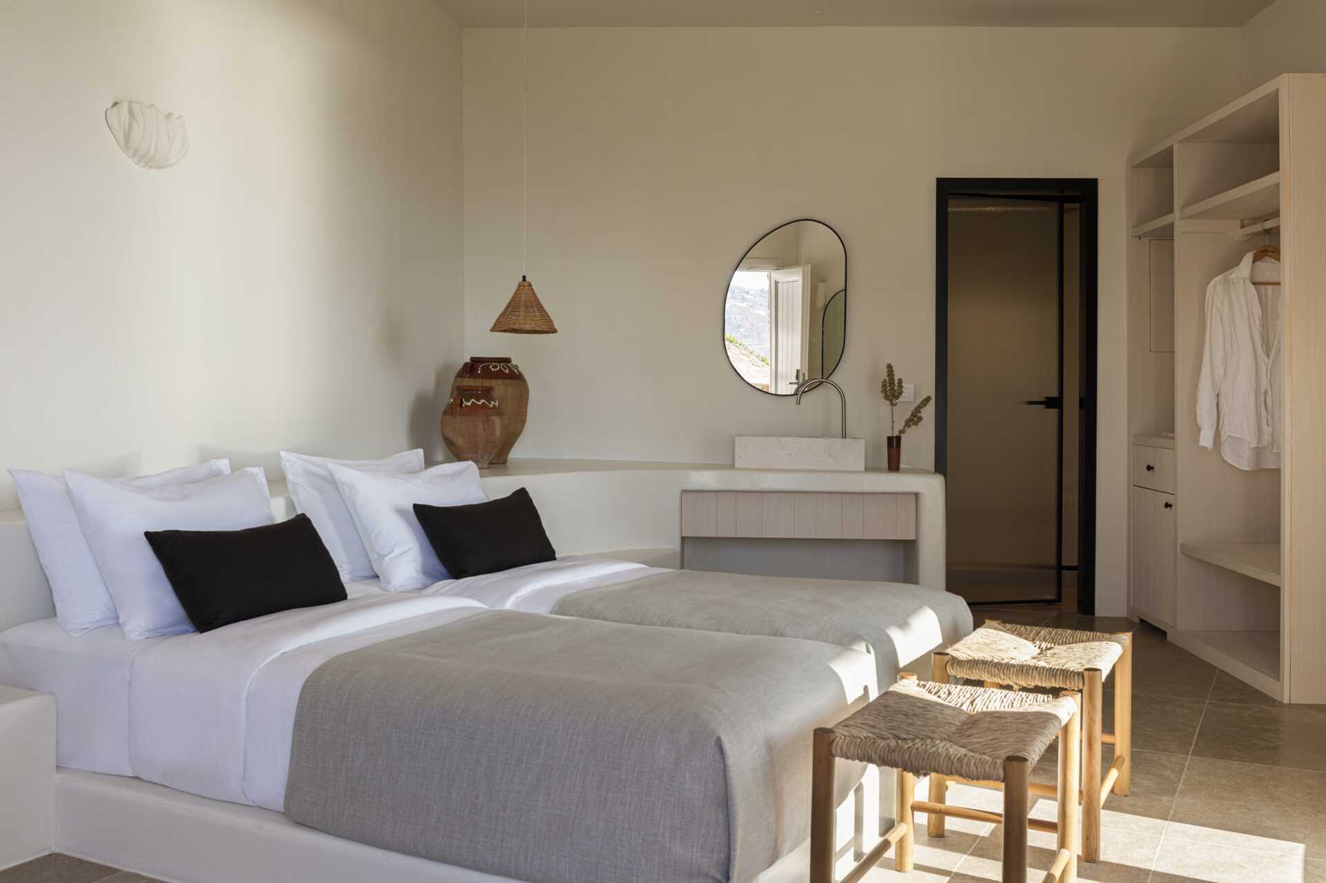 Deluxe-værelse med udeplads med privat pool. En dobbeltseng. Gratis wifi, aircondition og deponering. Minibar. Espressomaskine. Tv med internationale kanaler. Badekåber og tøfler. Hårtørrer. Badeværelse med bruser og toilet. Rengøring 7 gange om ugen. Børn under to år tæller med i det maksimale antal personer på værelset.
