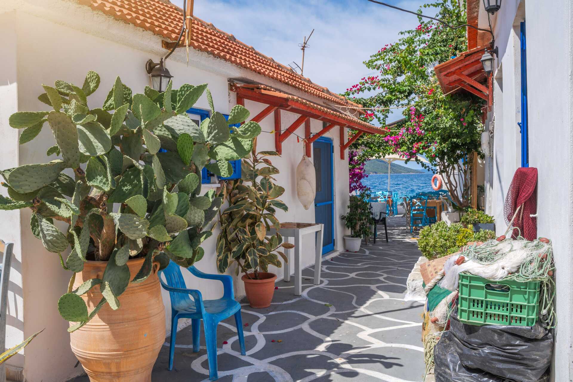 I Mytikas kommer du til at opleve autentisk græsk hverdagsliv, langt fra turistmasserne. Den charmerende landsby ligger lige ved vandet, hvor huse og butikker bogstaveligt talt grænser op til havet. En hyggelig brostensbelagt hovedgade fører fra landsbyens indsejling til havnen og er perfekt til hyggelige gåture. Om sommerens eftermiddage er gaden bilfri, hvilket giver børnene mulighed for at cykle rundt og skabe en dejlig og legende atmosfære.