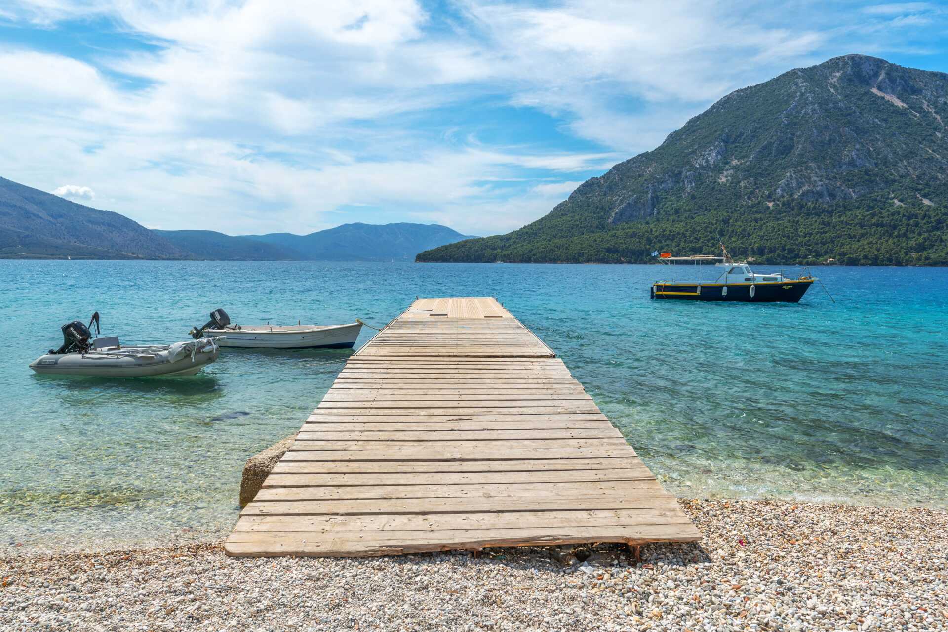 Mange smukke strande og bugter med krystalklart vand langs hele kystlinjen. Strandene Mytikas Beach og Paliovraka ligger i behagelig afstand og indbyder til afslapning i solen og dejlige svømmeture.