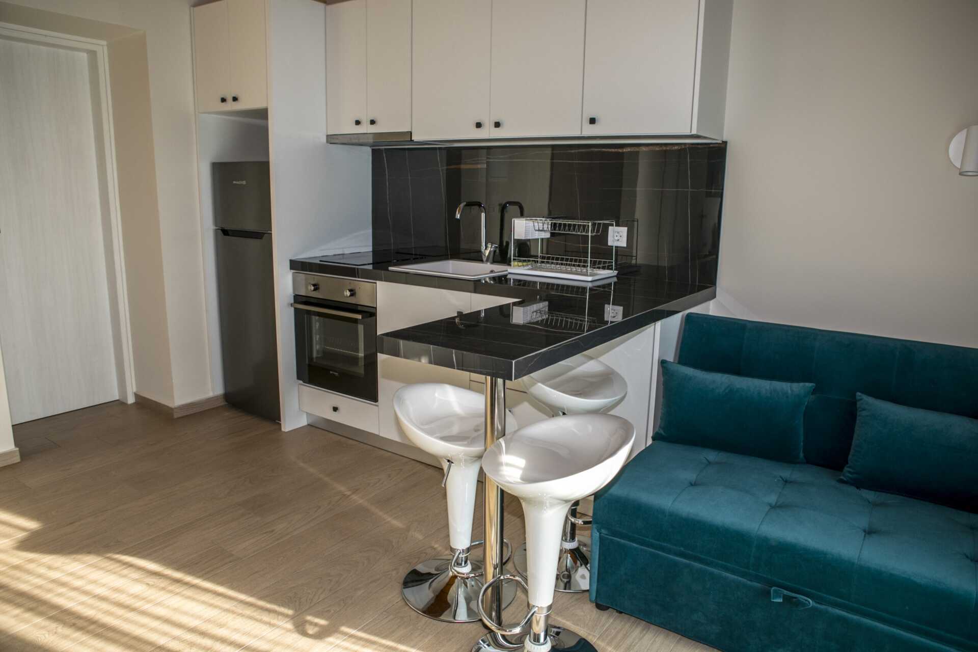 2-værelses lejlighed med balkon og havudsigt. Soveværelse og kombineret opholdsrum/minikøkken. Nogle lejligheder har skrå lofter. En dobbeltseng. Mulighed for ekstra opredning i sovesofa. Minikøkken med spiseplads ved bardisken, køleskab og fryser, kogeplader, ovn og enkelt køkkenudstyr. Tv med internationale kanaler. Strygejern og strygebræt. Vaskemaskine. Hårtørrer. Rengøring 6 gange om ugen. Børn under to år tæller med i det maksimale antal personer på værelset.