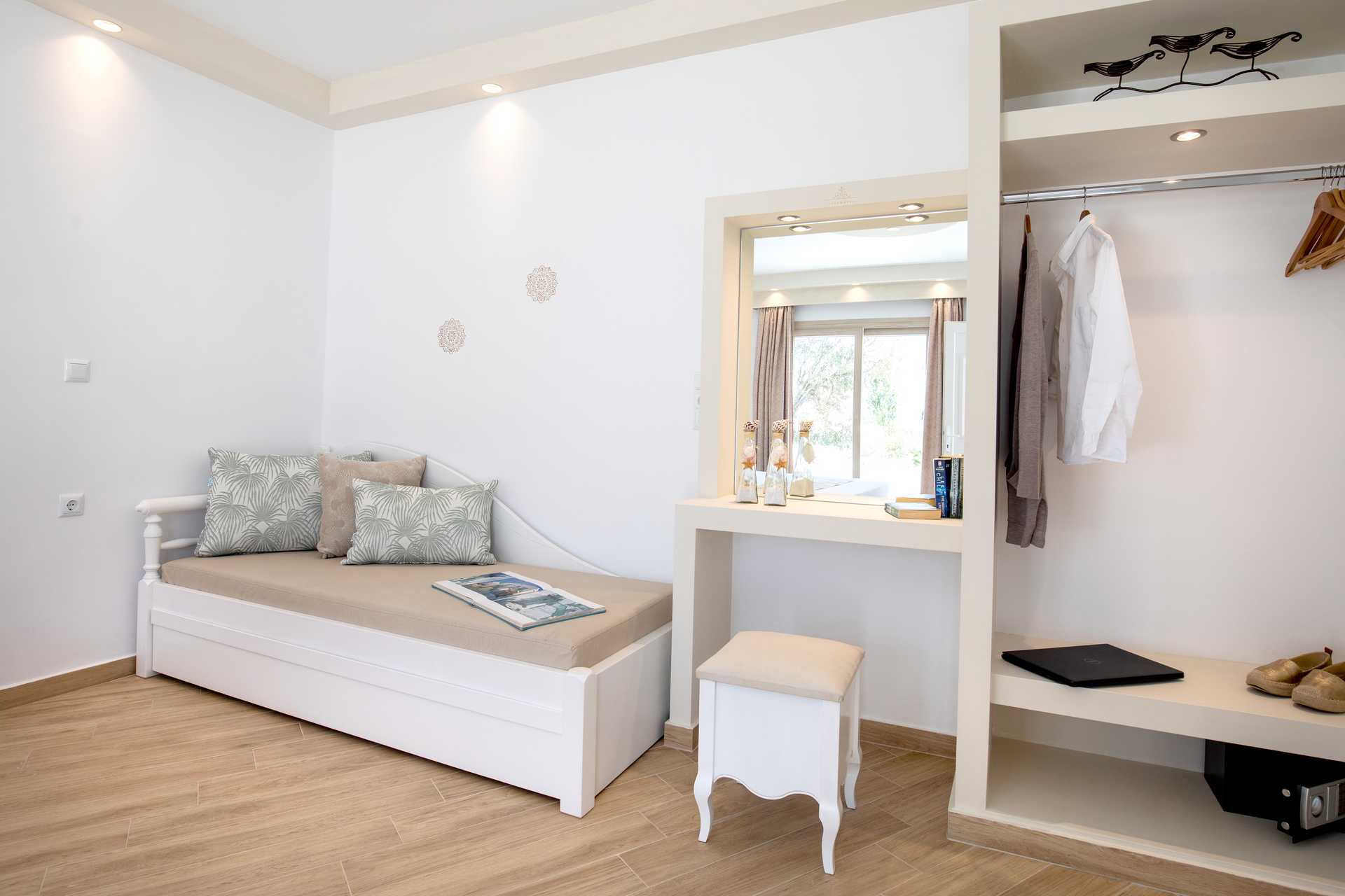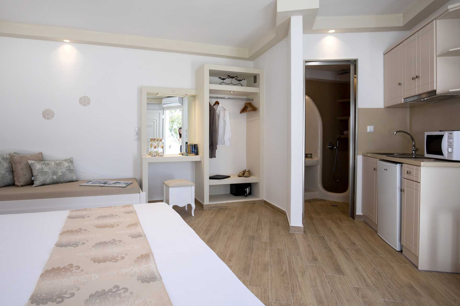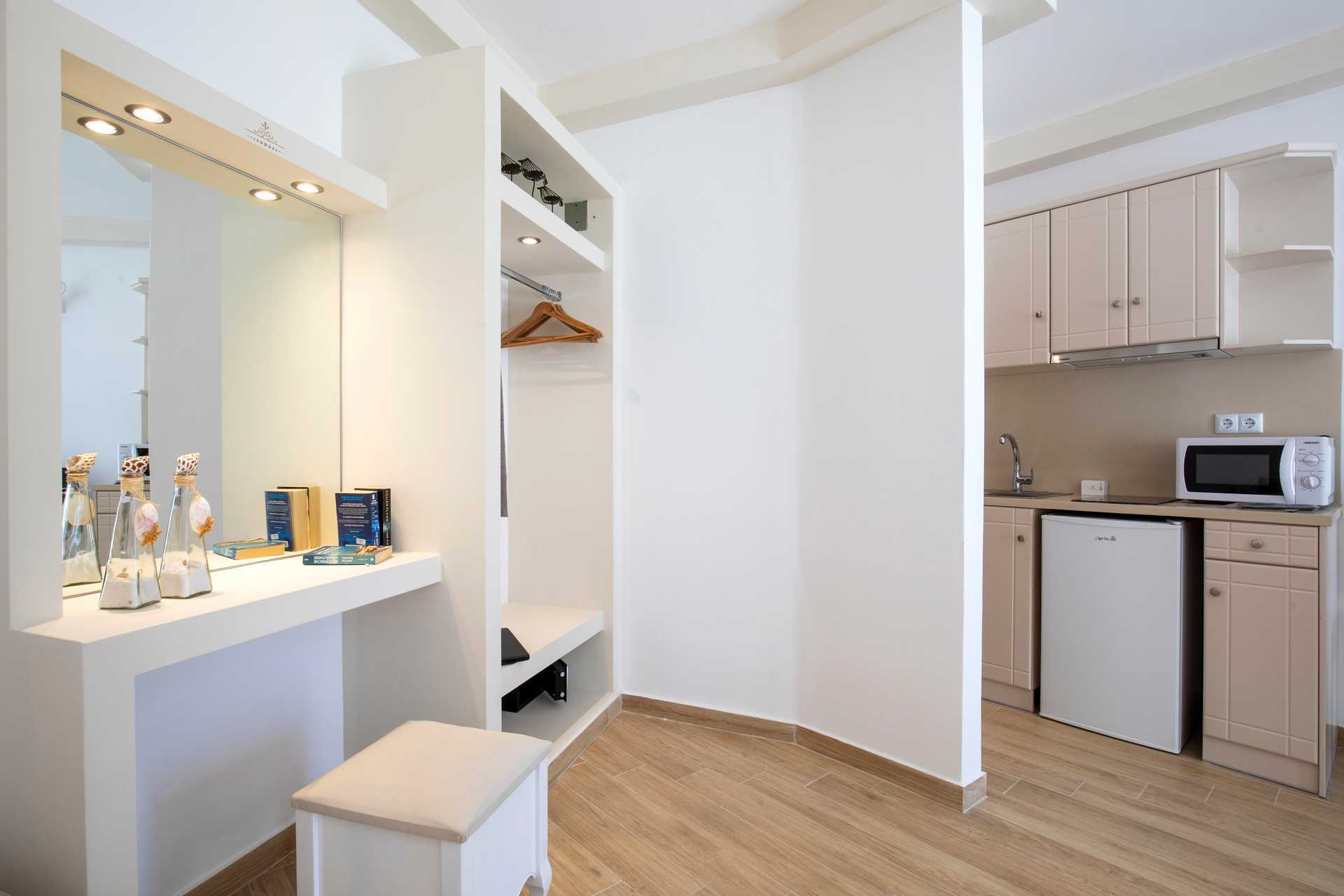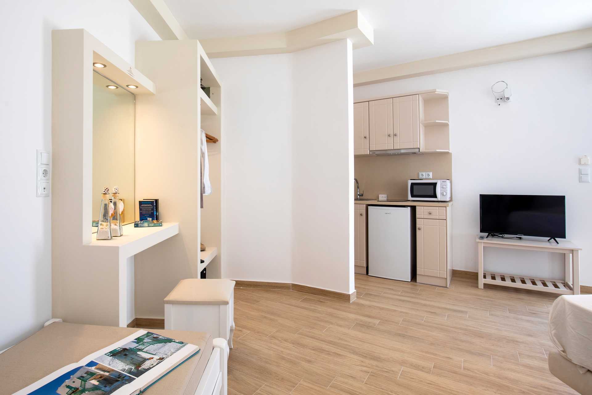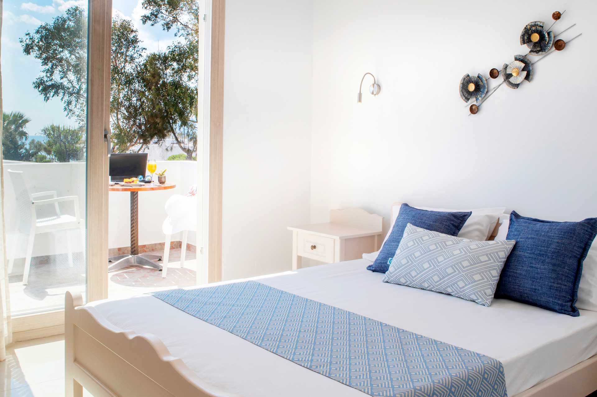 2-værelses lejligheder med balkon eller balkon i stueplan. Soveværelse samt kombineret opholdsrum og minikøkken. En dobbeltseng. Mulighed for ekstra opredninger i sovesofaer. Minikøkken med køleskab, kogeplader, mikrobølgeovn, el-kedel og enkelt køkkenudstyr. Gratis wifi, aircondition og deponering. Tv med internationale kanaler. Hårtørrer. Badeværelse med bruser og toilet. Rengøring 7 gange om ugen.