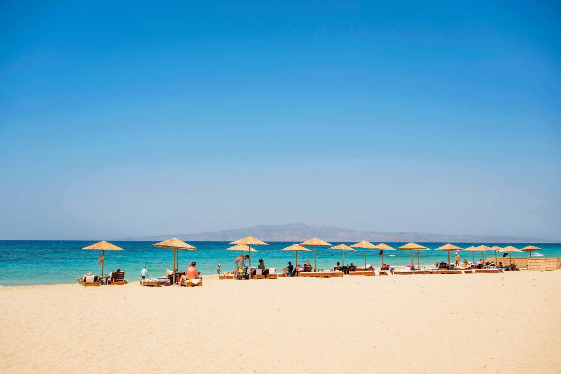 Midt i byen strækker den lange og smukke Agios Georgios-strand sig ud med et godt udvalg af strandtavernaer og barer. Her hygger alle sig, både børn, unge og ældre. Hvorfor ikke leje en bil og besøge øens andre strande? Smukke Agios Prokopios og Mikra Vigla er to berømte strande.