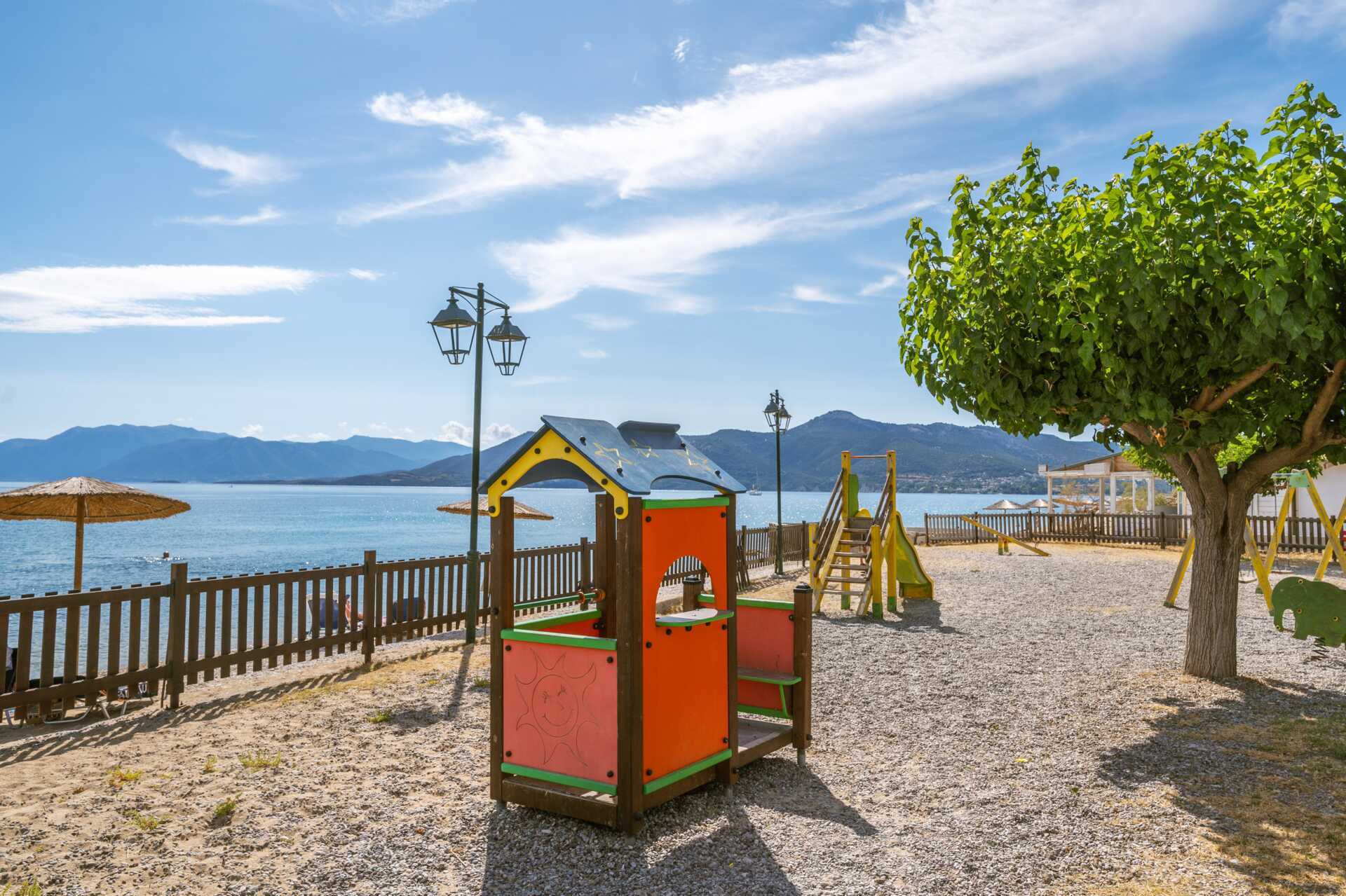 Mange strande og badebugter langs hele kysten. Potamaki Strand ligger et par kilometer væk, og der er en mindre strand midt i Paleros.