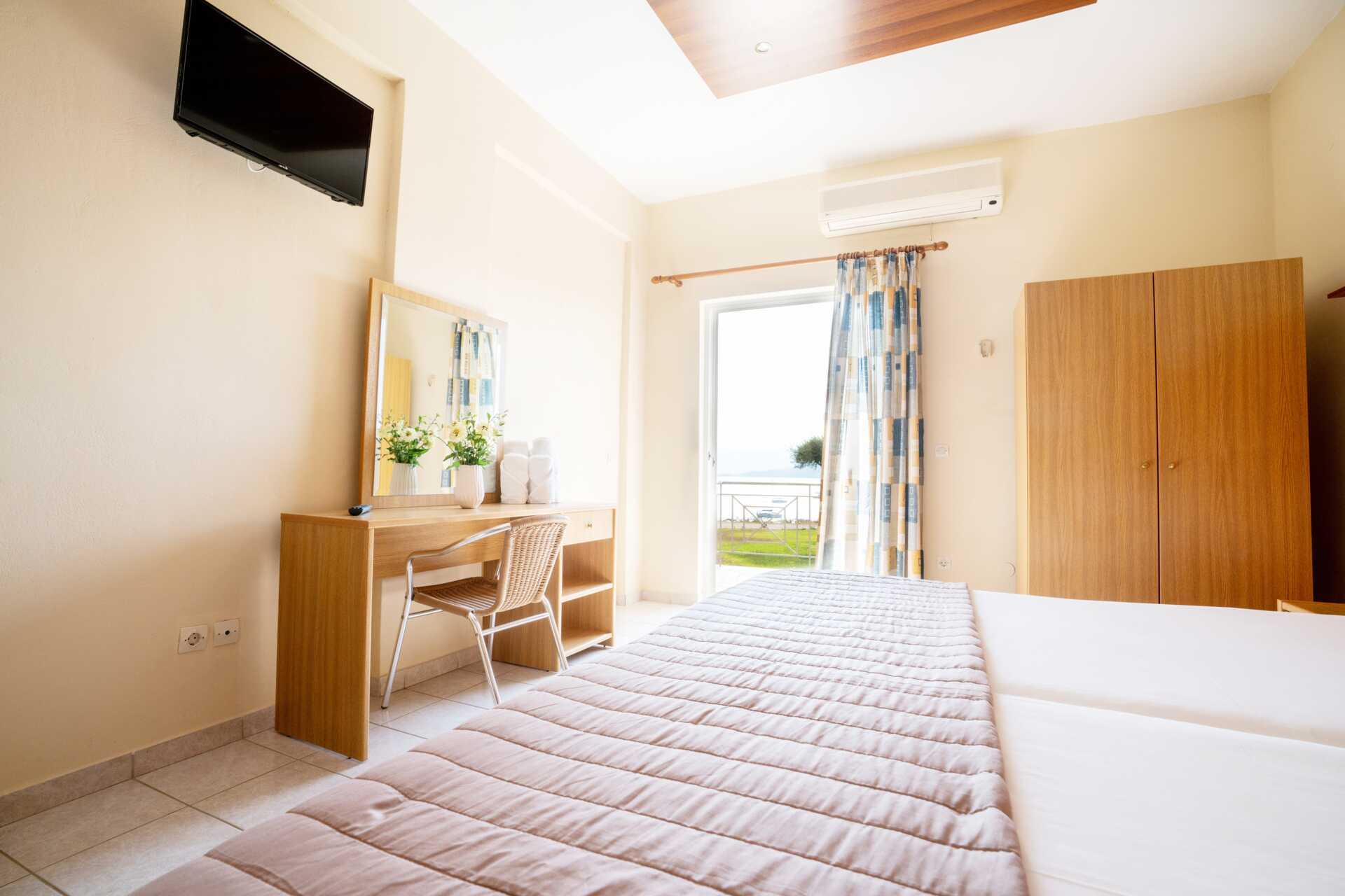 Dobbeltværelser med balkon, nogle med havudsigt. En dobbeltseng eller to enkeltsenge. Mulighed for ekstra opredning i enkeltseng. Gratis wifi, aircondition og deponering. Køleskab. El-kedel. Tv med internationale kanaler. Badeværelse med badekar eller bruser samt toilet. Børn under to år tæller med i det maksimale antal personer på værelset.