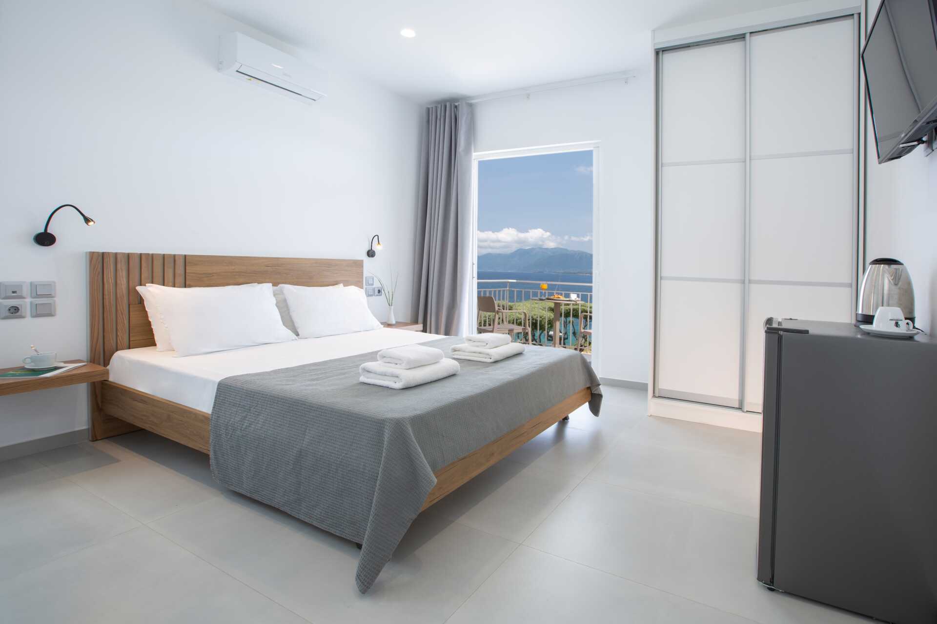 Superior-værelse med balkon og havudsigt. En dobbeltseng eller to enkeltsenge. Gratis wifi, aircondition og deponering. Køleskab. El-kedel. Tv med internationale kanaler. Badeværelse med bruser og toilet. Børn under to år tæller med i det maksimale antal personer på værelset.