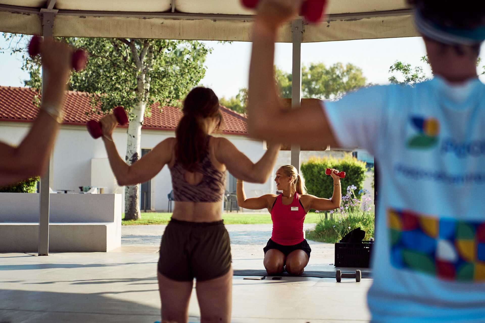 Paleros Beach Resort er som skabt til en aktiv ferie. Der er tre tennisbaner, to padelbaner, og ved vandsportscentret er der SUP, kajaksejlads og forskellige former for sejlads. SUP og kajak indgår, andre vandsportsgrene er mod betaling. Instruktørledede hold mod betaling. Varierede holdtræninger indgår. Sociale aktiviteter såsom vandpolo og volleyball. Guidede cykelture med både mountainbikes og landevejscykler indgår. Hotellet har også et fitnessrum, men det er meget sparsomt udstyret. Spa med sauna, massage og diverse behandlinger. Legeplads. Aftenunderholdning et par aftener om ugen med quizzer og livemusik.