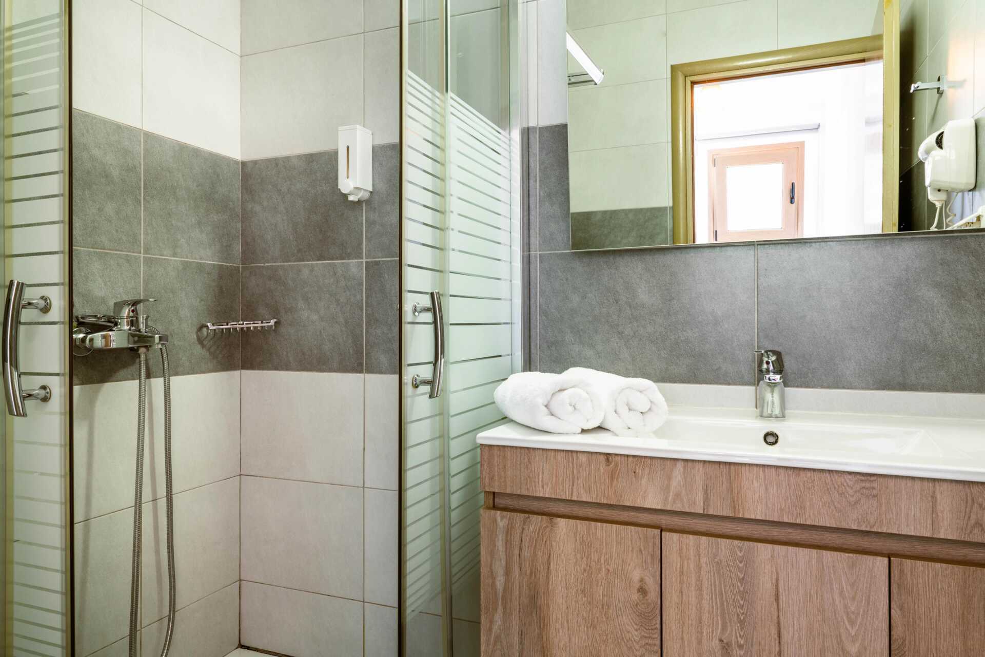 1-værelses lejlighed med balkon og havudsigt. Varierende størrelser og med moderne indretning. Soveværelse med kombineret minikøkken. To enkeltsenge. Mulighed for ekstra opredninger i sovesofa. Minikøkken med kogeplader, køleskab, kaffemaskine, el-kedel, brødrister og enkelt køkkenudstyr. Gratis wifi og aircondition. Deponering mod betaling. Tv med internationale kanaler. Hårtørrer. Badeværelse med bruser og toilet. Rengøring 6 gange om ugen.