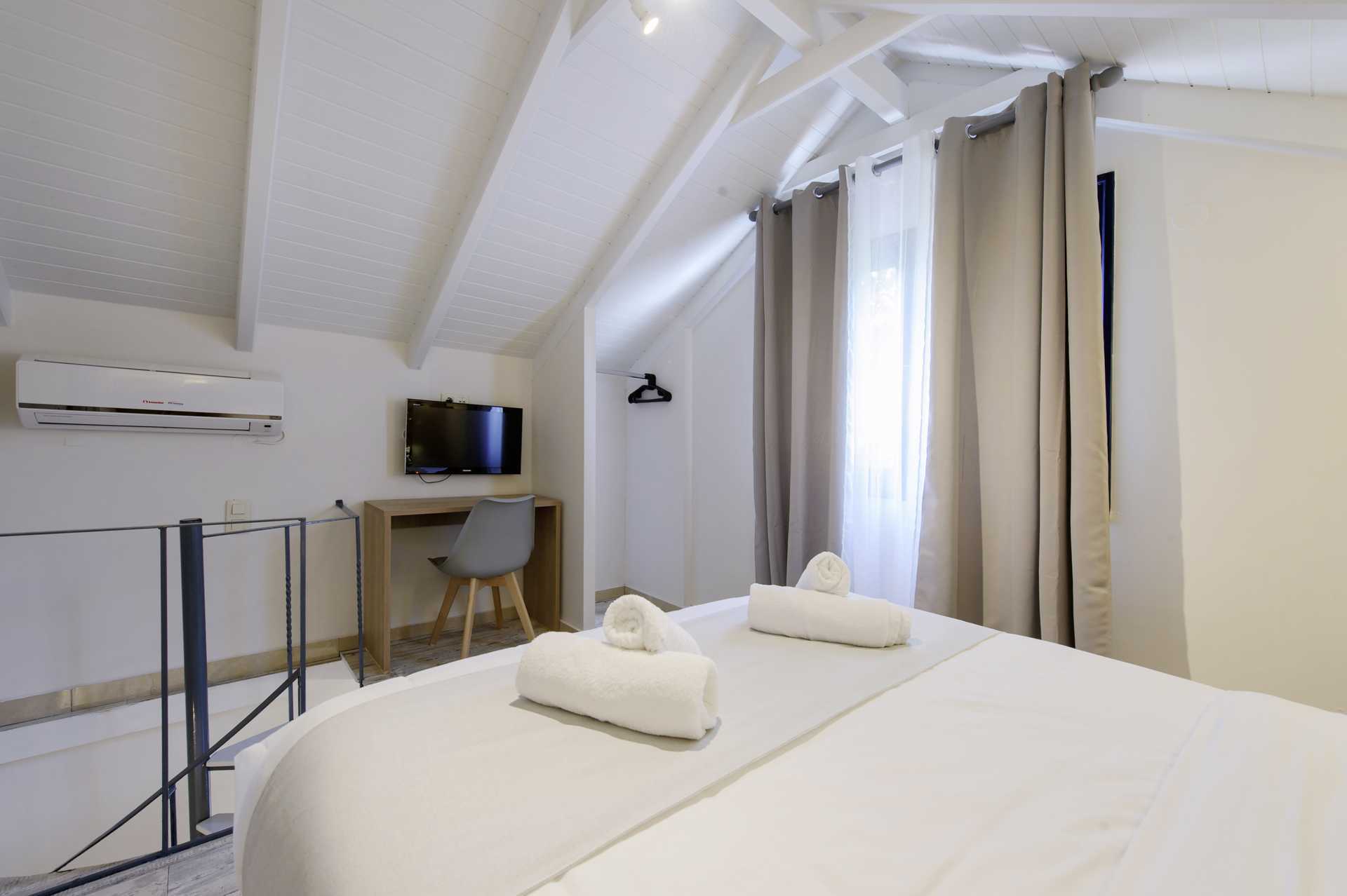 2-værelses lejlighed med balkon og pooludsigt. Lejlighederne er placeret på øverste etage i sidebygningen og har skrå lofter. Soveværelse og kombineret opholdsrum med minikøkken. To enkeltsenge. Mulighed for ekstra opredninger i dobbeltseng. Minikøkken med køleskab, kogeplade, brødrister, el-kedel og enkelt køkkenudstyr. Gratis wifi, aircondition og deponering. Tv med internationale kanaler. Hårtørrer. Badeværelse med bruser og toilet. Rengøring 7 gange om ugen.