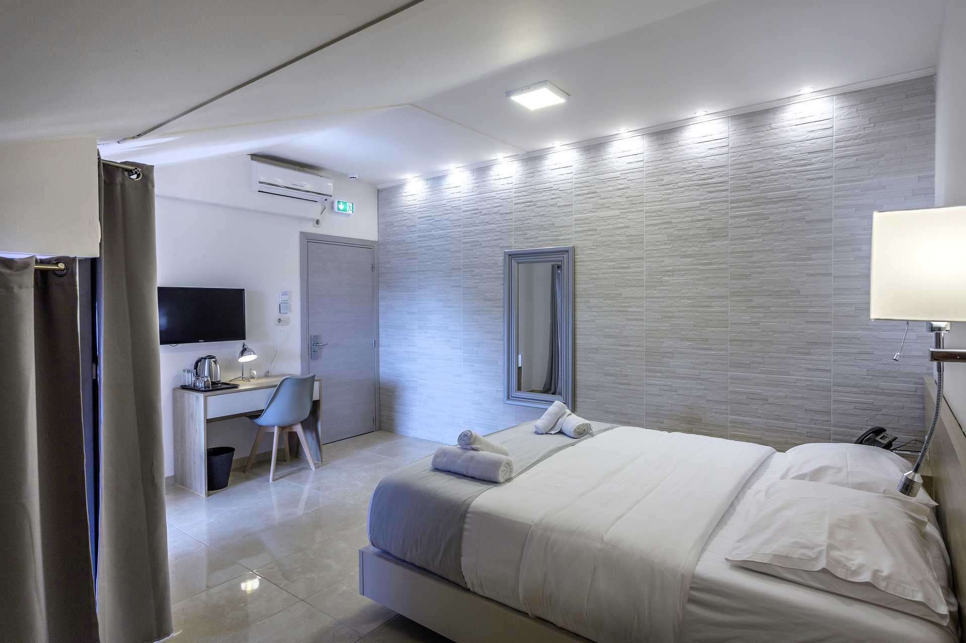Enkeltværelse, uden udeplads. En dobbeltseng. Mulighed for ekstra opredning i eksisterende senge. Gratis wifi, aircondition og deponering. Køleskab. Tv med internationale kanaler. Hårtørrer. Lille badeværelse med bruser og toilet. Rengøring 7 gange om ugen.