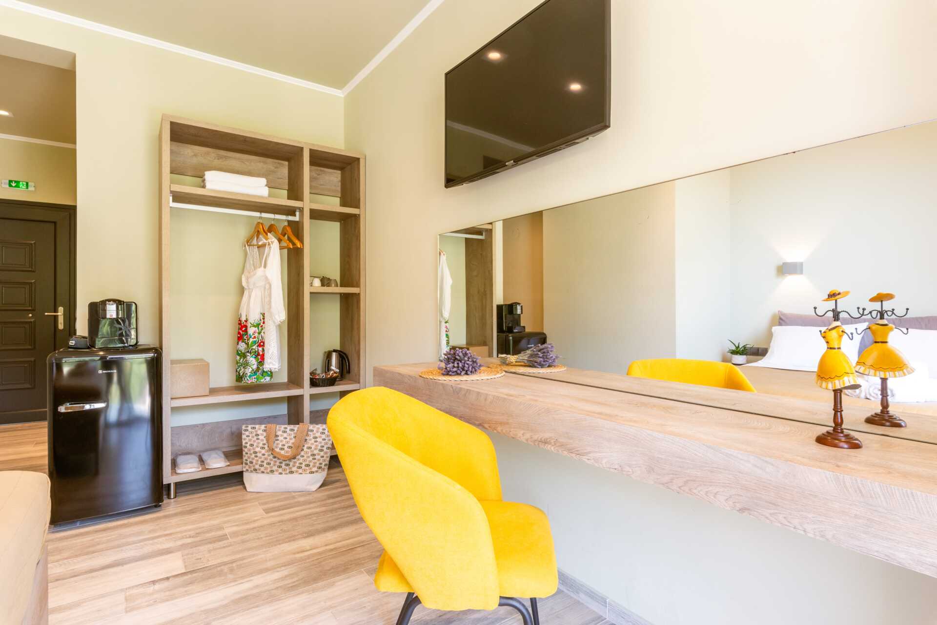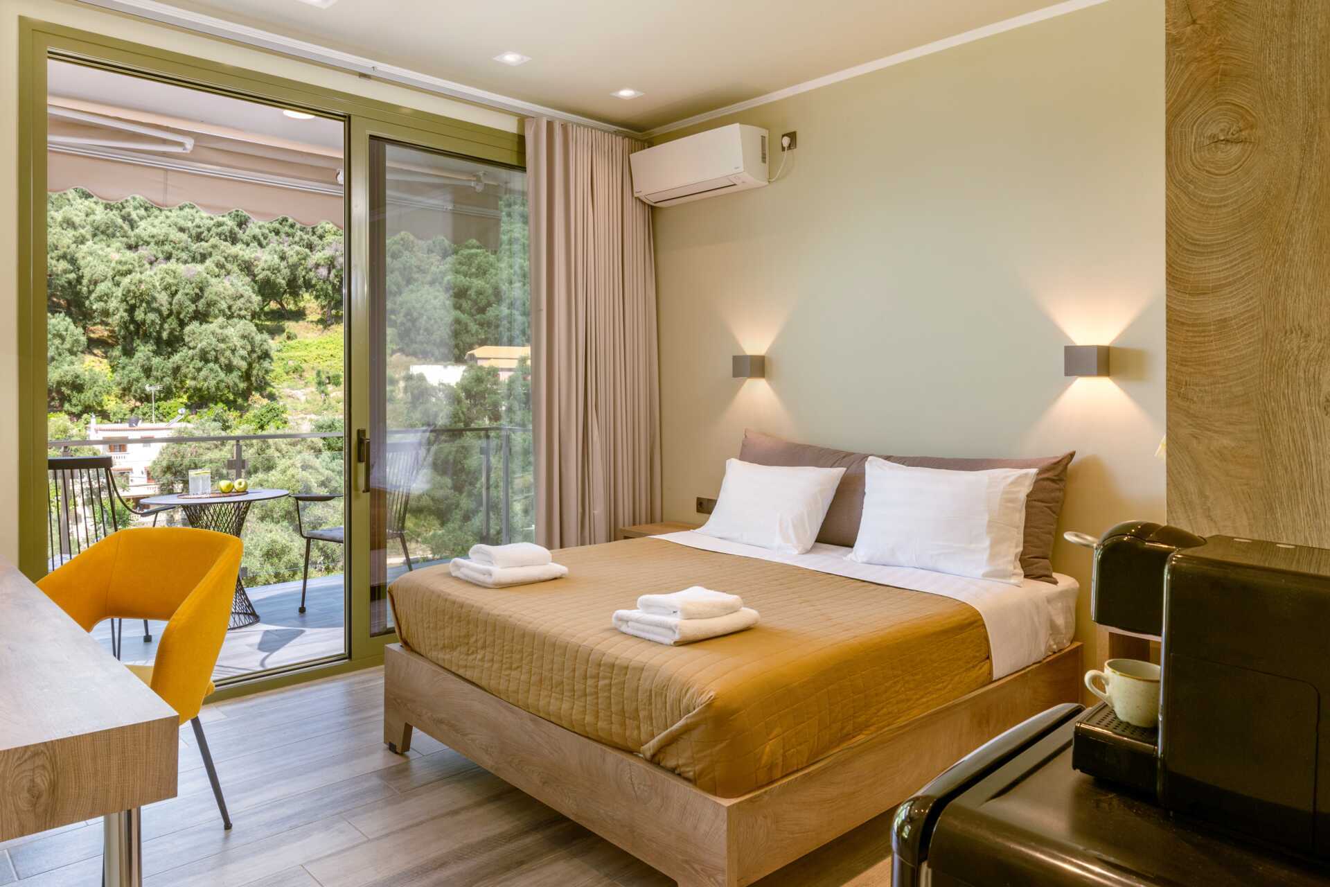 Dobbeltværelser med balkon, nogle med delvis havudsigt. En dobbeltseng. Køleskab. El-kedel og kaffemaskine. Gratis wifi, aircondition og deponering. Tv med internationale kanaler. Hårtørrer. Badeværelse med badekar eller bruser samt toilet. Rengøring 7 gange om ugen. Børn under to år tæller med i det maksimale antal personer på værelset.