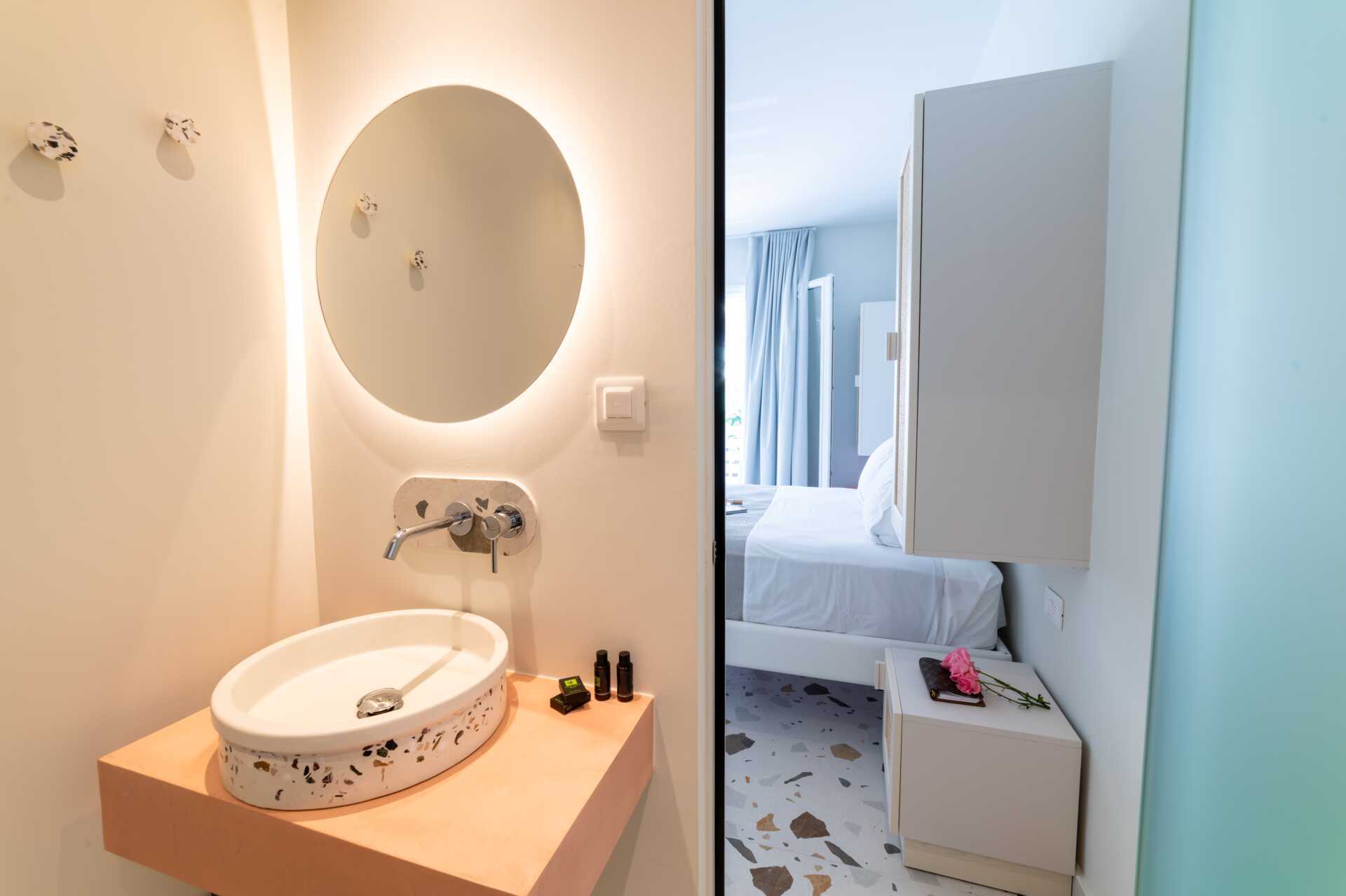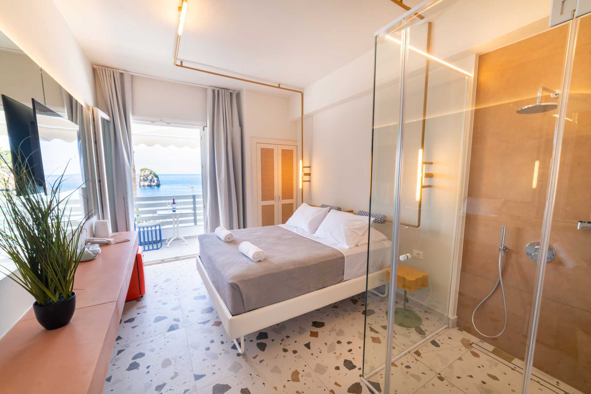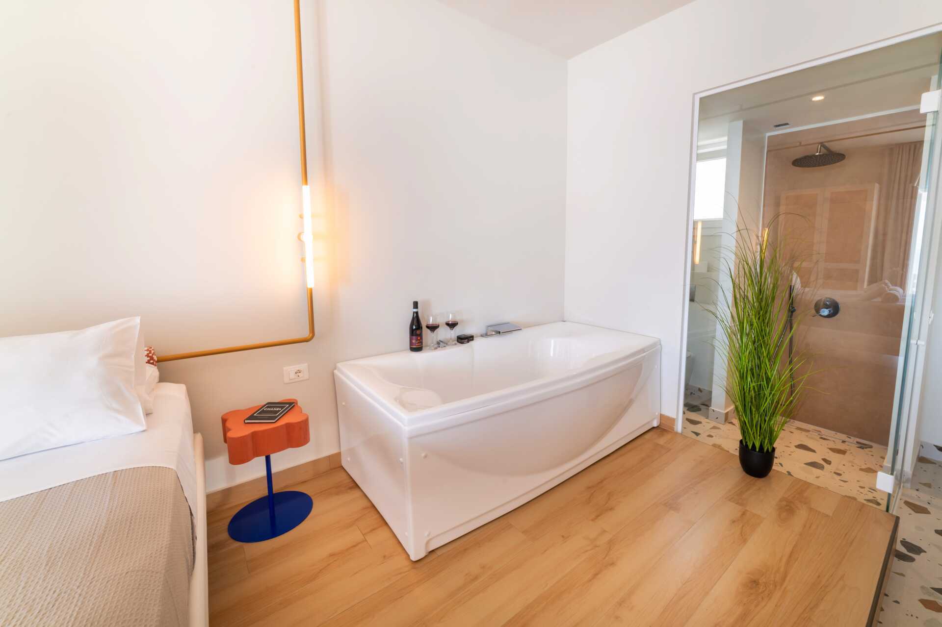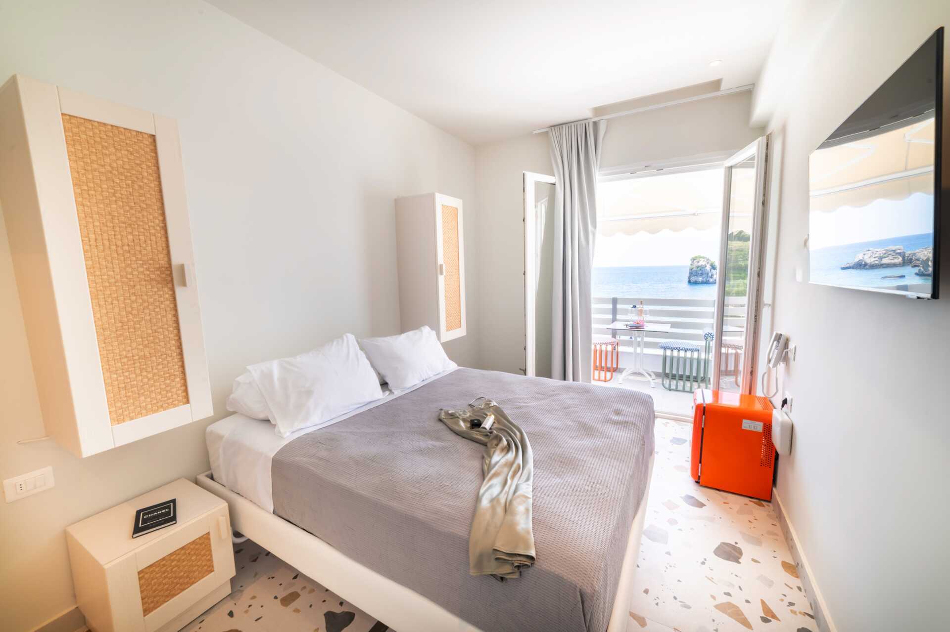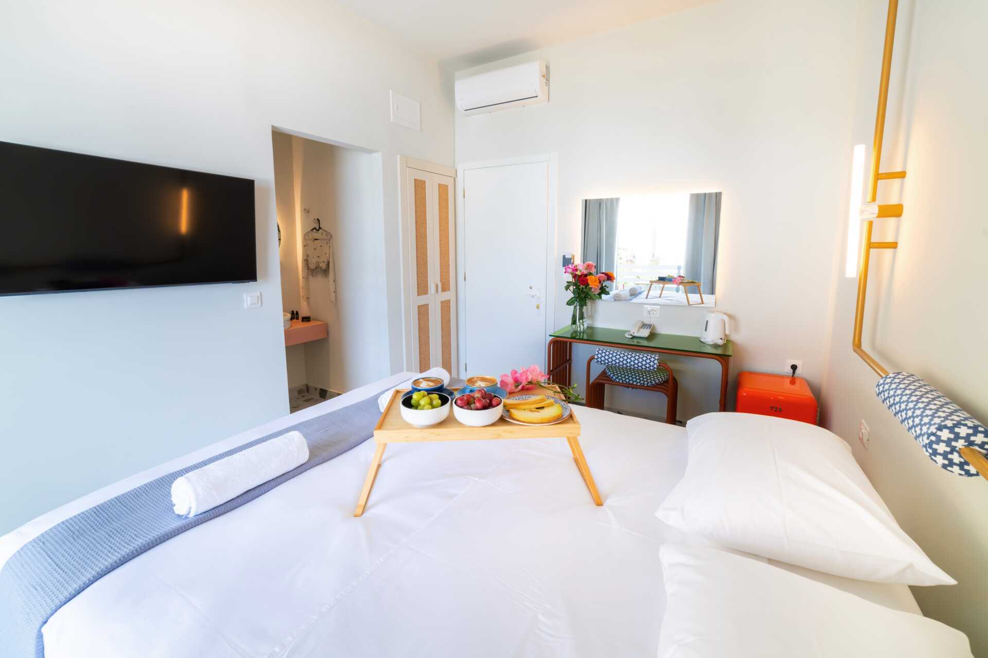 Junior-suite med balkon og havudsigt. En dobbeltseng. Gratis wifi, aircondition og deponering. Lille køleskab. El-kedel. Tv med internationale kanaler. Hårtørrer. Badekåber og tøfler. Badeværelse med badekar og bruser samt toilet. Rengøring 7 gange om ugen.