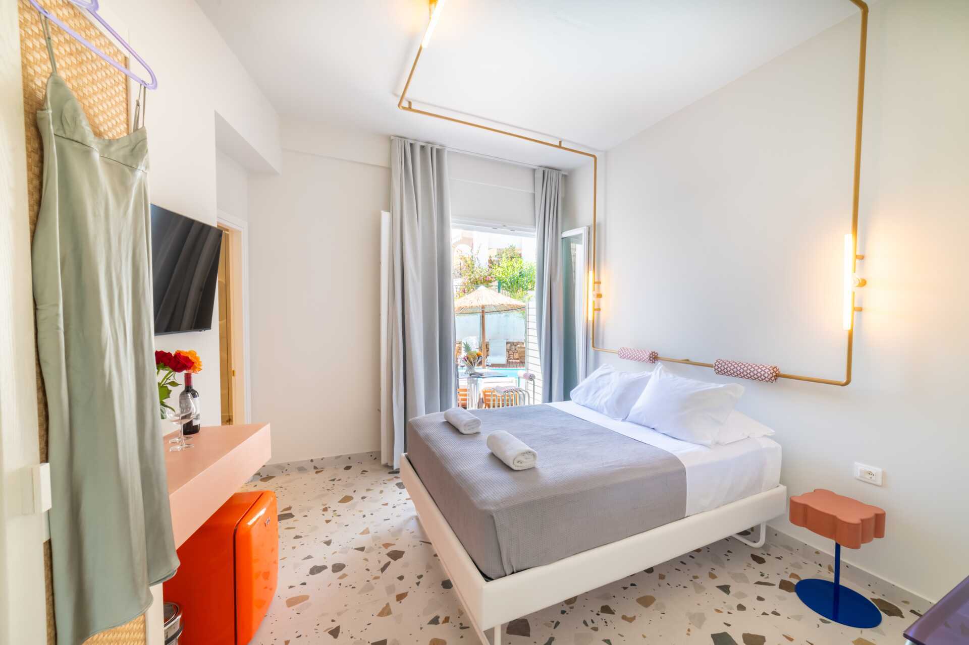 Deluxe-værelse med balkon med havudsigt eller delvis havudsigt. Alternativt et deluxe-værelse med terrasse i stueplan med pooludsigt. En dobbeltseng. Gratis wifi, aircondition og deponering. Lille køleskab. El-kedel. Tv med internationale kanaler. Hårtørrer. Badekåber og tøfler. Badeværelse med bruser og toilet. Rengøring 7 gange om ugen.