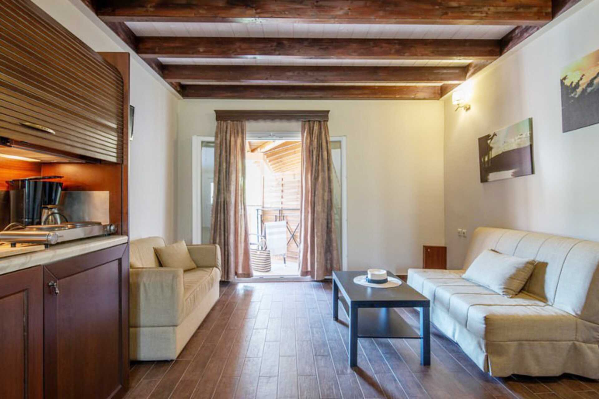 1-værelses lejlighed superior med balkon eller terrasse og udsigt mod haven. Kombineret soveværelse med minikøkken. En dobbeltseng eller to enkeltsenge. Mulighed for ekstra opredning i sovesofa. Vær opmærksom på, at lejligheden kan blive trang, hvis der anvendes en ekstra opredning. Minikøkken med kogeplader, køleskab, kaffemaskine, el-kedel og enkelt køkkenudstyr. Spiseplads på balkon eller terrasse. Gratis wifi, aircondition og deponering. Tv med internationale kanaler. Hårtørrer. Badeværelse med badekar eller bruser samt toilet. Rengøring 7 gange om ugen. Børn under to år tæller med i det maksimale antal personer på værelset.