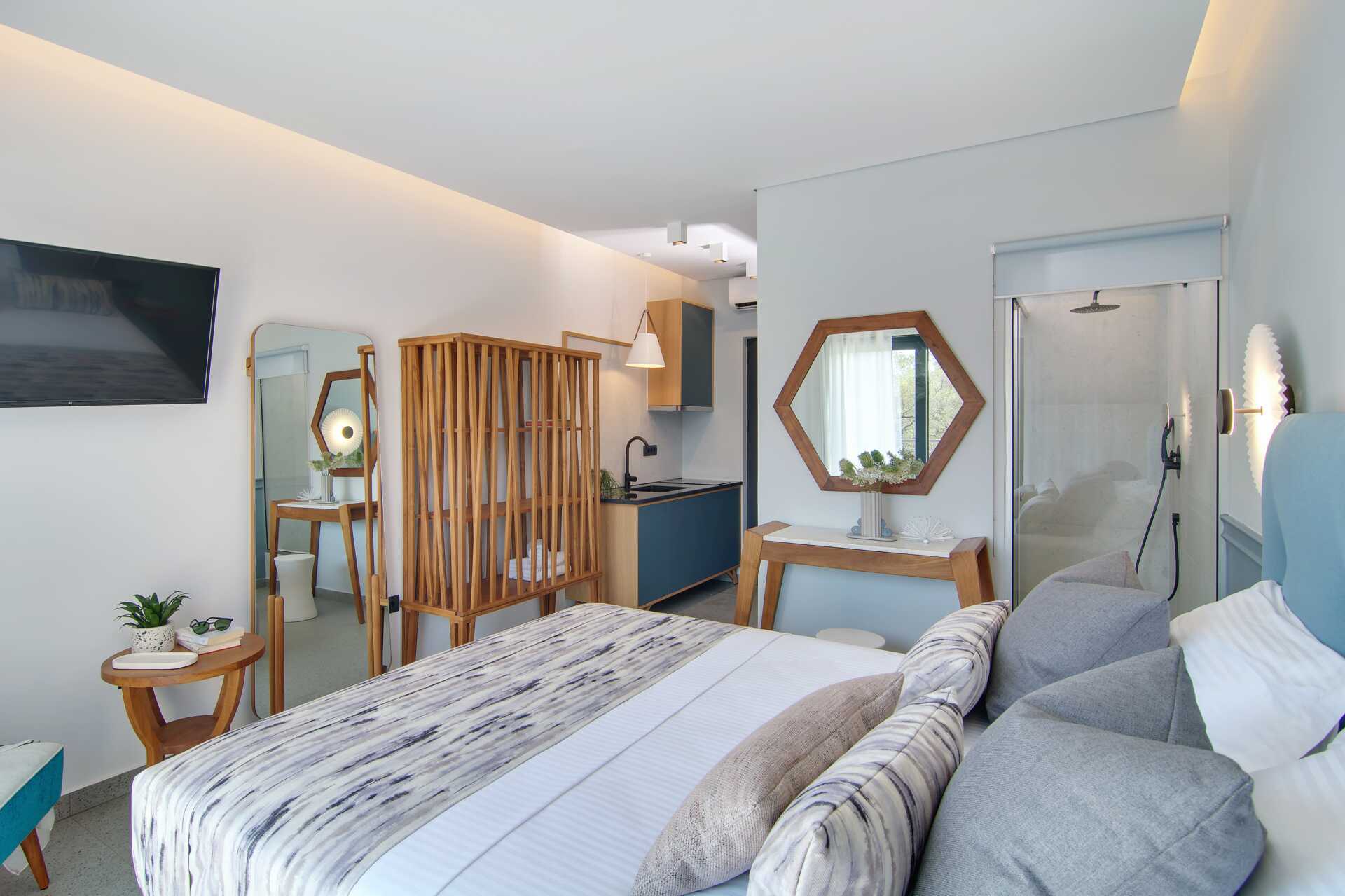 1-værelses lejlighed med balkon eller terrasse i stueplan. Værelserne er unikke med forskellig indretning og udseende. Kombineret soveværelse med minikøkken. En dobbeltseng eller to enkeltsenge. Mulighed for ekstra opredning i sovesofa. Minikøkken med kogeplader, køleskab, el-kedel og enkelt køkkenudstyr. Gratis wifi, aircondition og deponering. Tv med lokale kanaler. Hårtørrer. Badeværelse med bruser og toilet. Rengøring 7 gange om ugen.