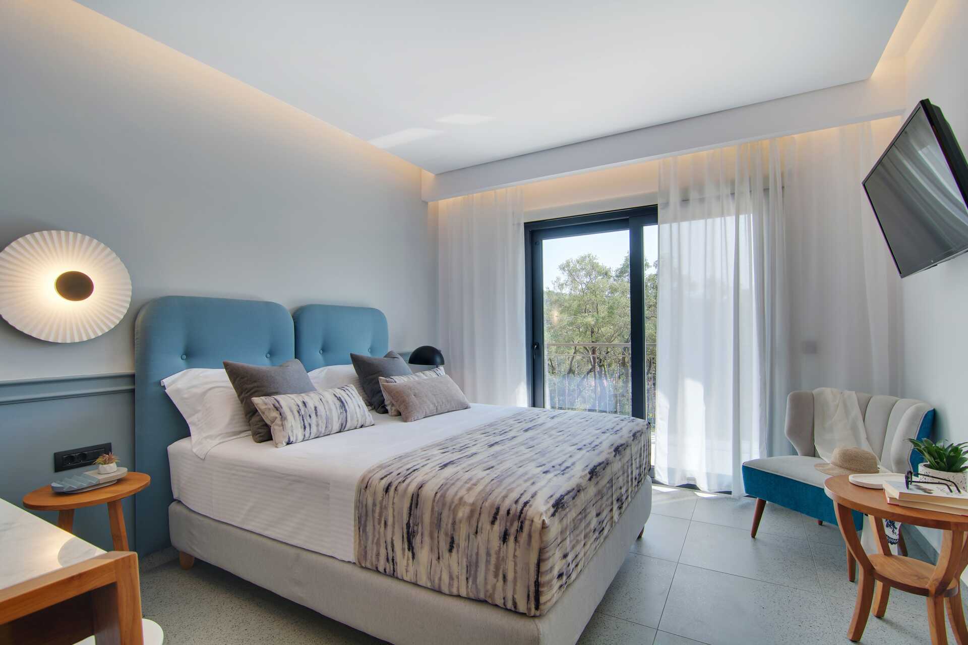 Dobbeltværelse med balkon eller terrasse i stueplan. En dobbeltseng eller to enkeltsenge. Mulighed for ekstra opredning i værelse i stueplan. Værelserne er unikke med forskellig indretning og udseende. Gratis wifi, aircondition og deponering. El-kedel og kaffe/te. Lille køleskab. Tv med internationale kanaler. Hårtørrer. Badeværelse med bruser og toilet. Rengøring 7 gange om ugen.