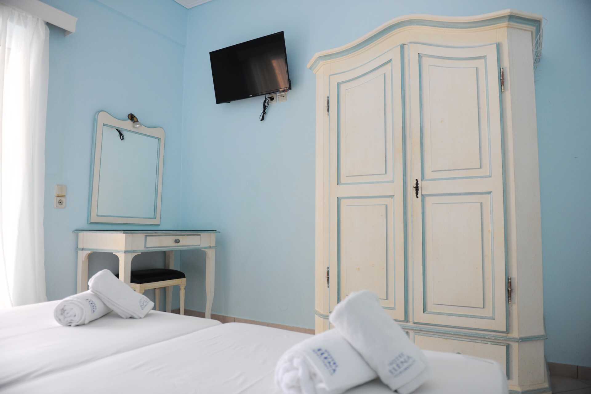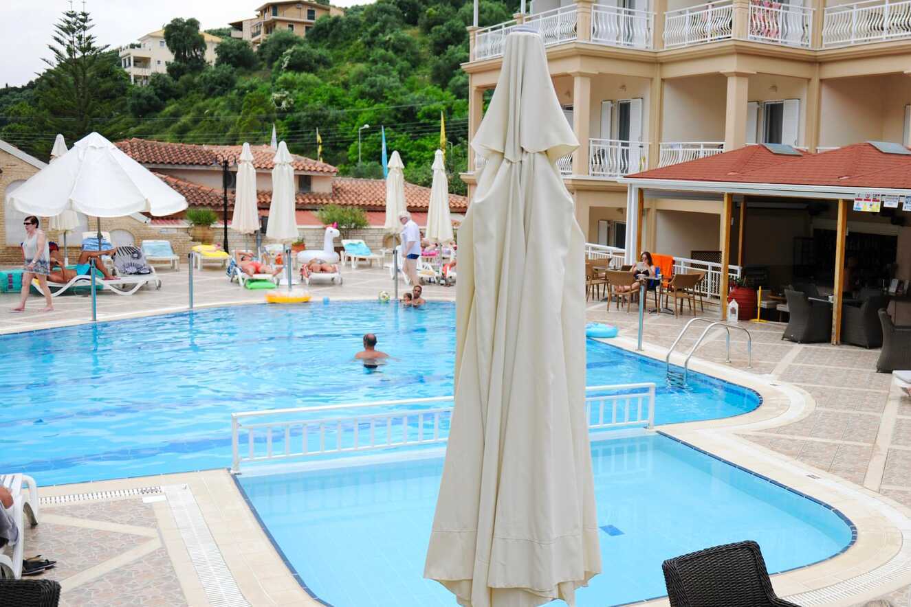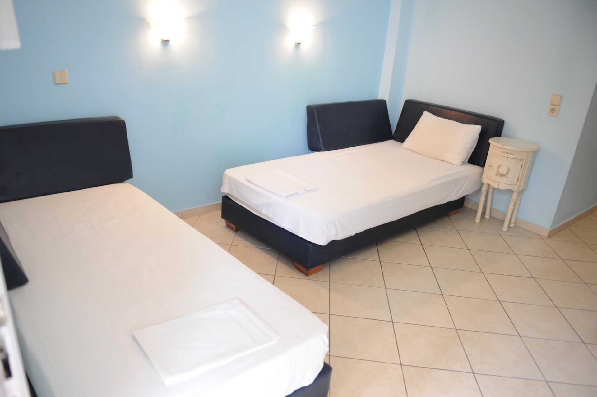 1-værelses lejlighed med balkon eller terrasse i stueplan. Nogle balkoner har pooludsigt. To enkeltsenge og mulighed for ekstra opredning på en sovesofa. Minikøkken med køleskab. Kogeplader, el-kedel, kaffemaskine og enkelt køkkenudstyr. Gratis wifi, aircondition og deponering. Tv med lokale kanaler. Hårtørrer. Badeværelse med bruser og toilet. Rengøring 6 gange om ugen.