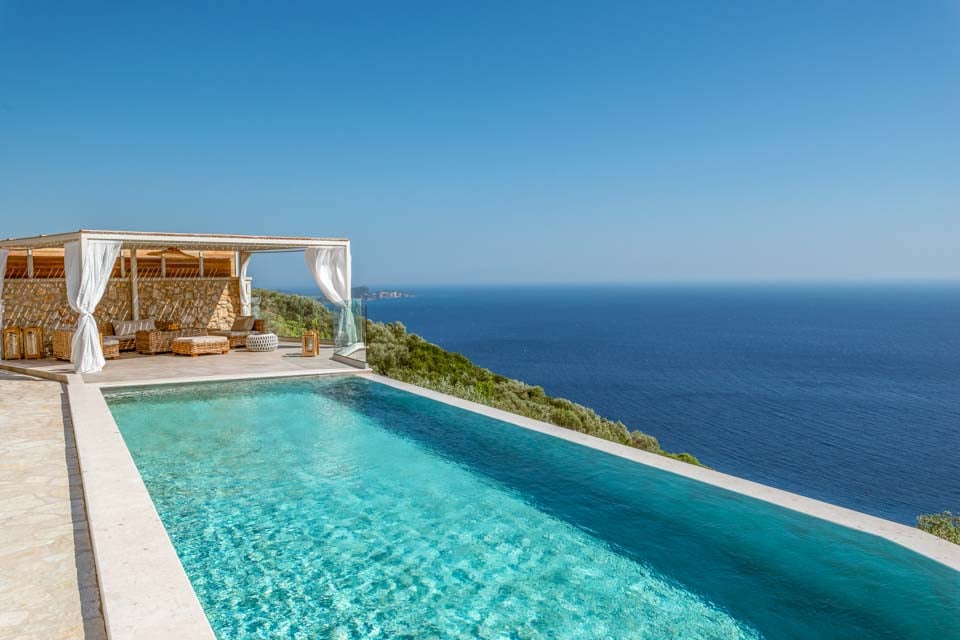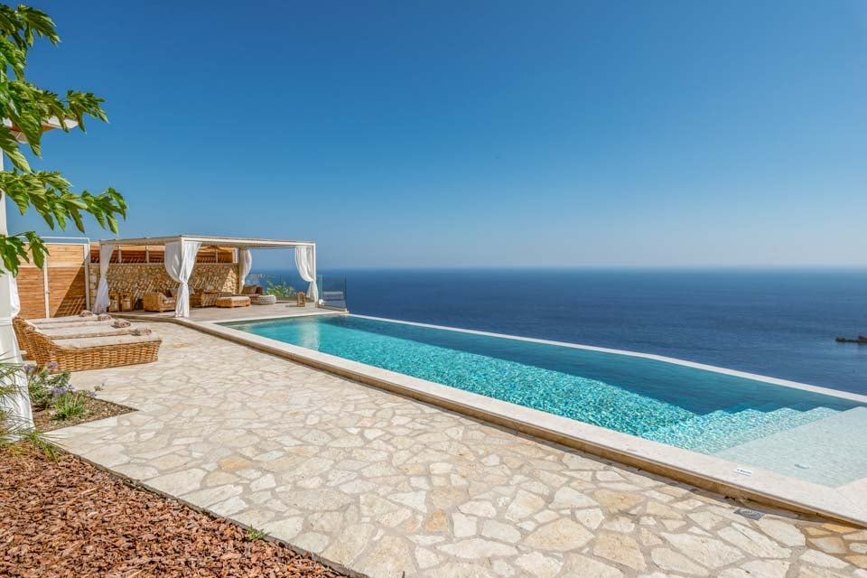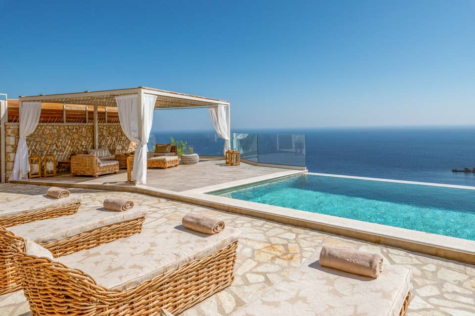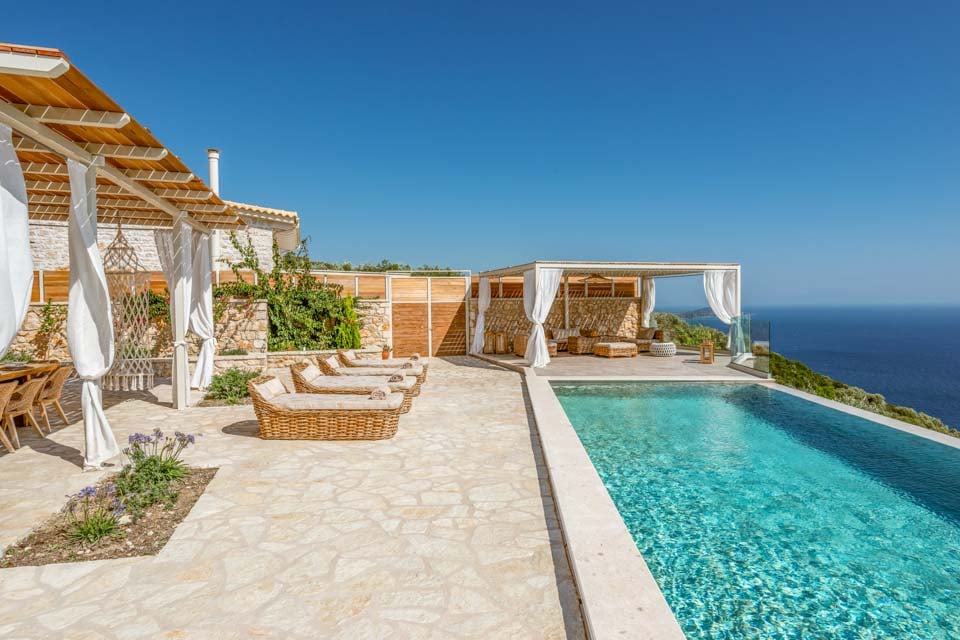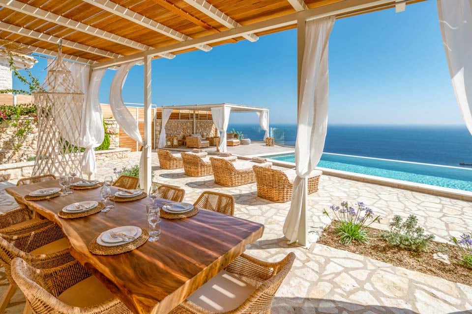 Denne villa har også en stor terrasse med en fantastisk udsigt over Det Ioniske Hav og den nærliggende Lichnos-strand. En overdækket terrasse tilbyder skygge, så man kan nyde et familiemåltid under åben himmel, mens den udendørs dagseng er et hyggeligt sted at putte sig, mens man ser verden passere forbi nedenunder.
