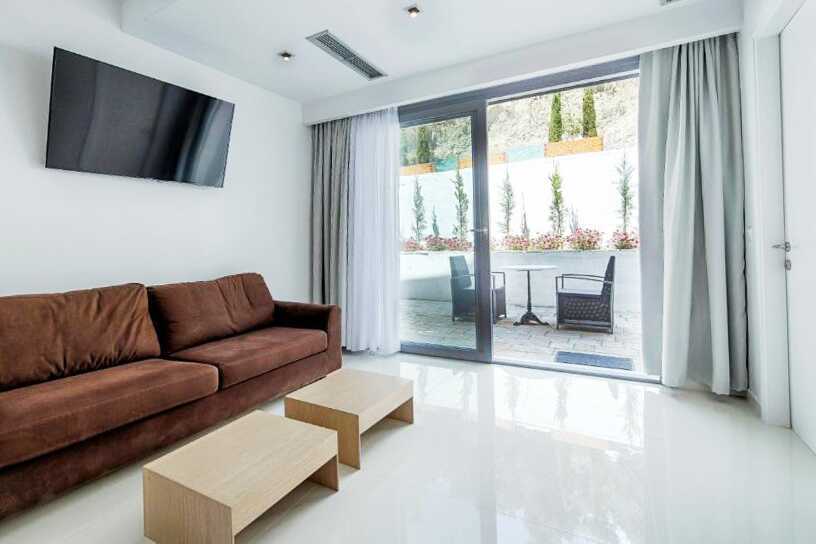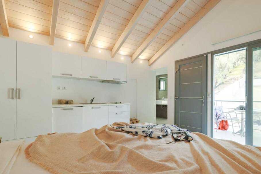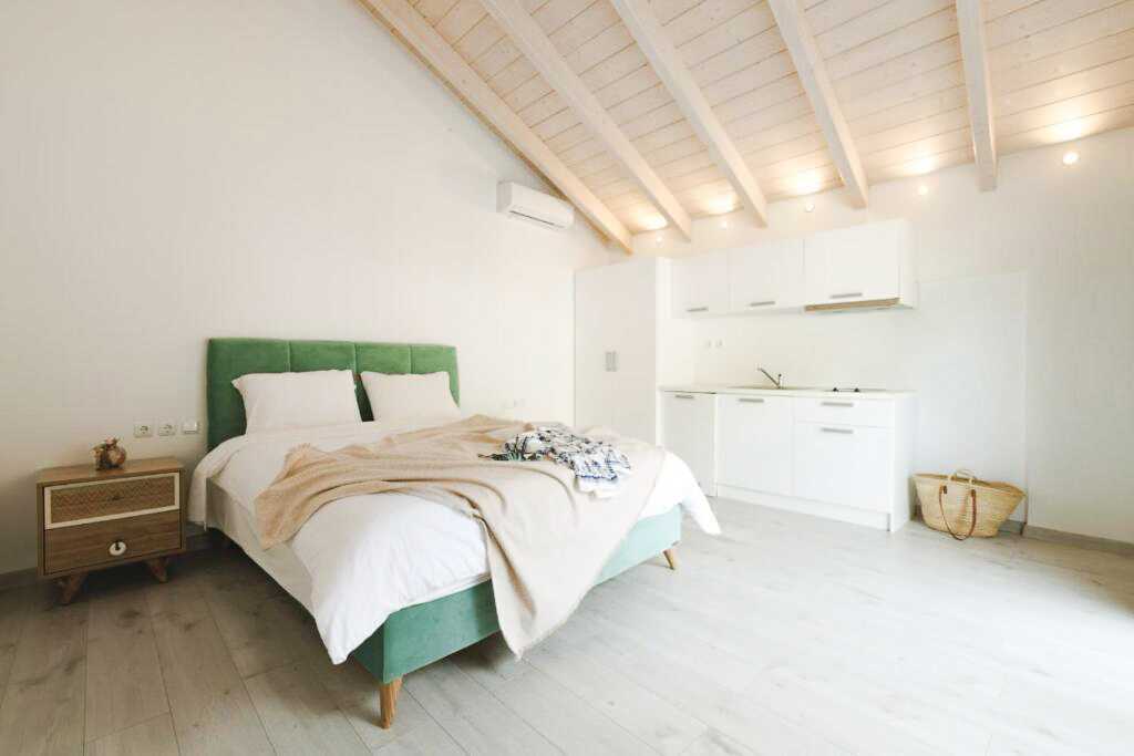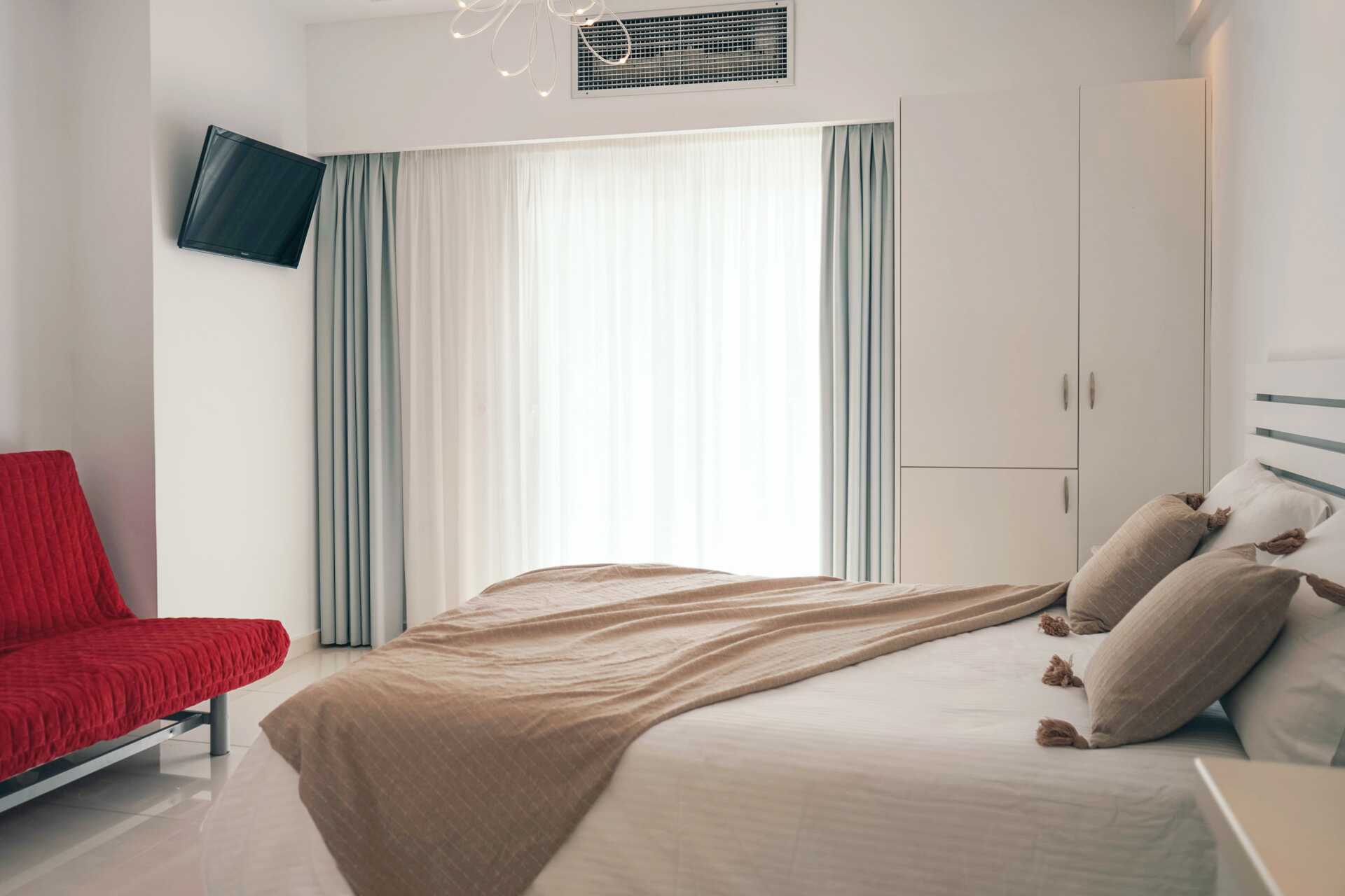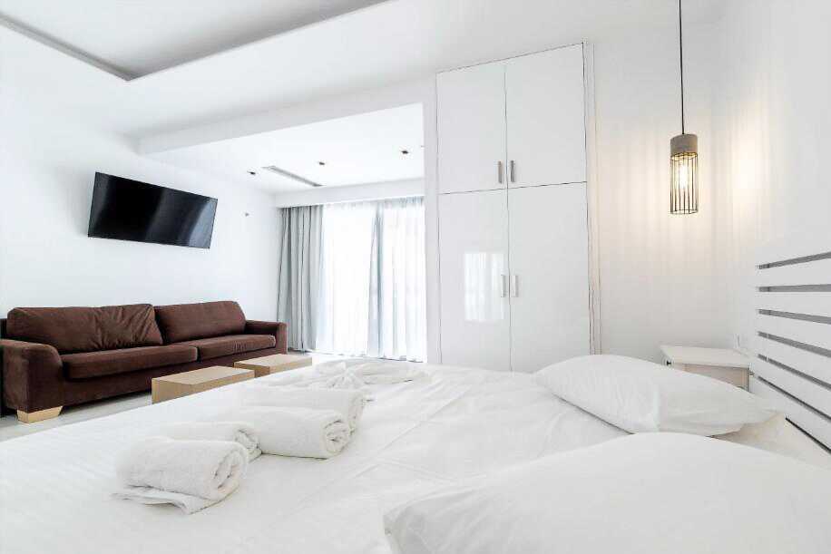 1-værelses lejligheder med balkon og pooludsigt. Lejligheden har skråvægge. Soveværelse kombineret med minikøkken. En dobbeltseng. Minikøkken med kogeplader, køleskab og enkelt køkkenudstyr. Gratis wifi, aircondition og deponering. Tv med internationale kanaler. Badeværelse med bruser og toilet. Rengøring 6 gange om ugen. Børn under to år tæller med i det maksimale antal personer på værelset.