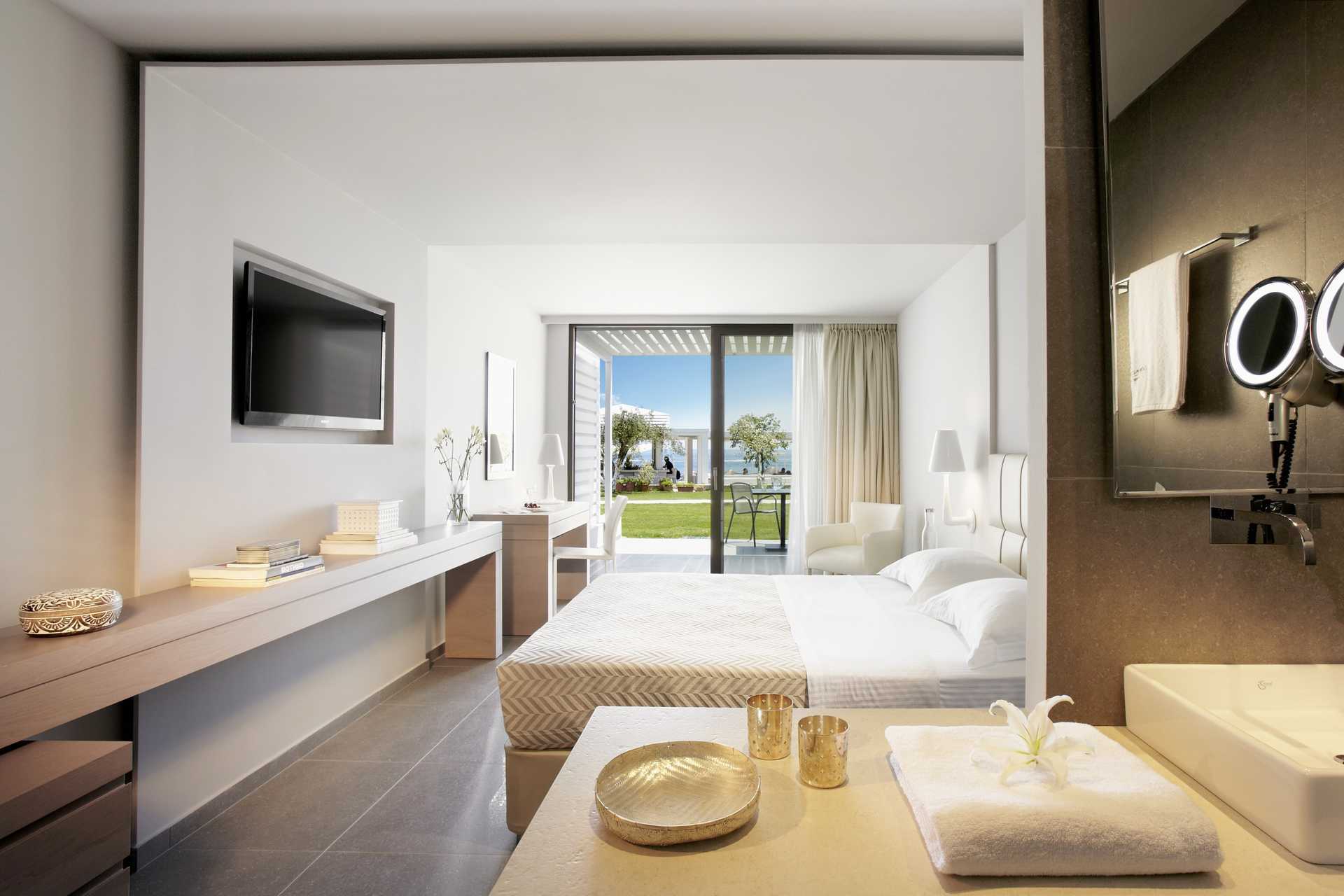 Executive-værelse med balkon eller terrasse og havudsigt. Værelserne ligger i hovedbygningen ved poolen. En stor dobbeltseng. Gratis wifi, aircondition og deponering. Køleskab. Tv med internationale kanaler. Tøfler. Hårtørrer. Badeværelse med bruser og toilet. Rengøring 7 gange om ugen.