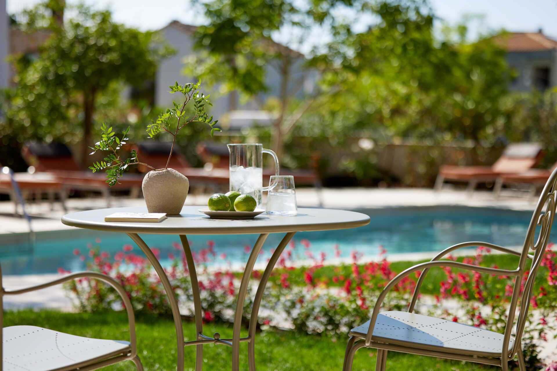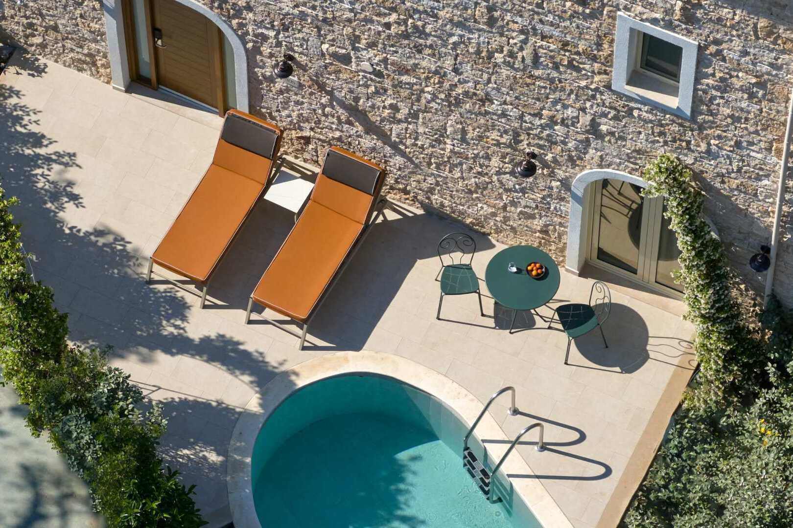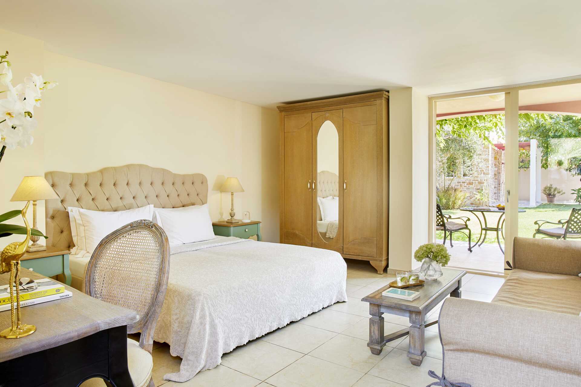 Deluxe-suite med privat pool på udepladsen. To solstole på udepladsen. Suiterne består af et soveværelse og et opholdsrum, der kan adskilles med en skydedør. En dobbeltseng. Mulighed for ekstra opredninger i sovesofa. Pudemenu. Gratis wifi, aircondition og deponering. Minibar. Nespresso-maskine, kapsler mod betaling. El-kedel og kaffe/te. Tv med internationale kanaler. Badekåber og tøfler. Hårtørrer. Badeværelse med bruser og toilet. Rengøring 7 gange om ugen. Suiterne er placeret i en separat bygning og en mindre vej med begrænset trafik skal krydses for at nå stranden og øvrige dele af hotellet.