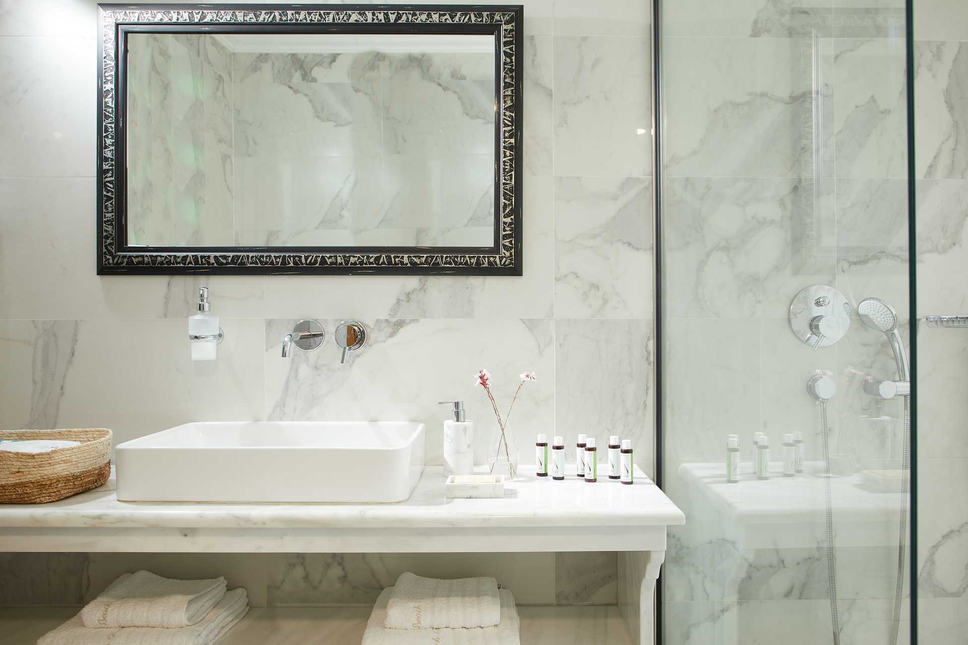 Grand-suite med balkon eller terrasse. En dobbeltseng eller to enkeltsenge. Mulighed for ekstra opredninger i sovesofa. Pudemenu. Gratis wifi, aircondition og deponering. Minibar. El-kedel og kaffe/te. Nespresso-maskine, kapsler mod betaling. Tv med internationale kanaler. Badekåber og tøfler. Hårtørrer. Badeværelse med badekar og toilet. Rengøring 7 gange om ugen.
