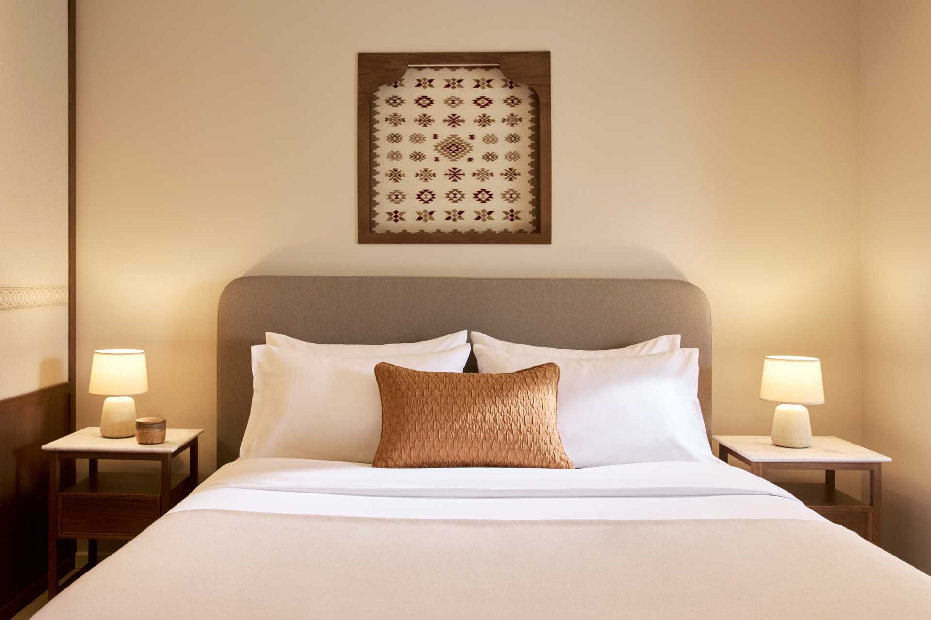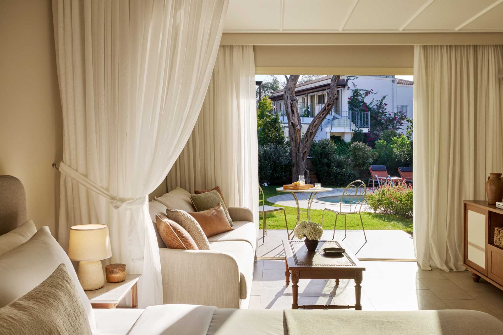 Suite med balkon eller terrasse. En dobbeltseng. Mulighed for ekstra opredninger i sovesofa. Pudemenu. Gratis wifi, aircondition og deponering. Minibar. Nespresso-maskine, kapsler mod betaling. El-kedel og kaffe/te. Tv med internationale kanaler. Badekåber og tøfler. Hårtørrer. Badeværelse med bruser og toilet. Rengøring 7 gange om ugen. Suiterne er placeret i en separat bygning og en mindre vej med delvis trafik skal krydses for at nå stranden og andre dele af hotellet.
