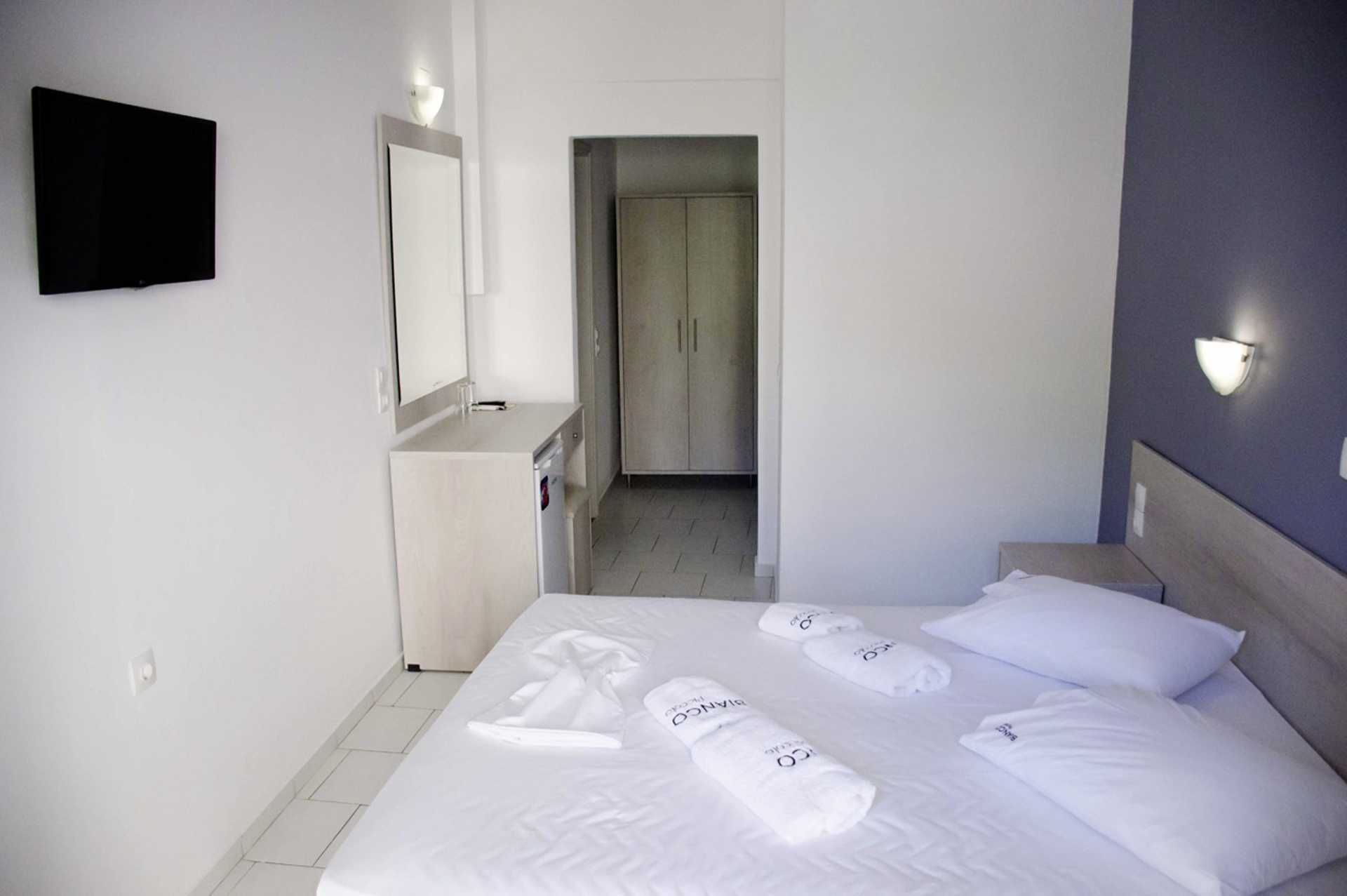 1-værelses lejligheder med balkon. Soveværelse kombineret med minikøkken. En dobbeltseng. Mulighed for ekstra opredning i fold ud-seng. Minikøkken med kogeplader, køleskab, brødrister og enkelt køkkenudstyr. Gratis wifi, aircondition og deponering. Hårtørrer. Badeværelse med bruser og toilet. Rengøring 6 gange om ugen.