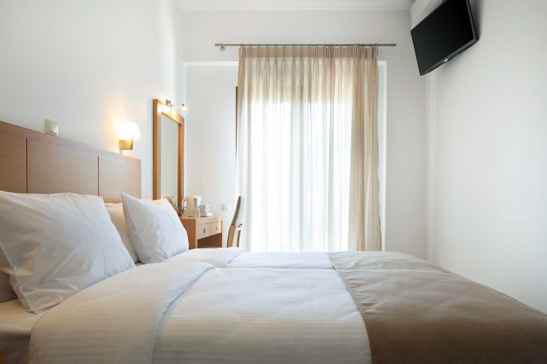 Dobbeltværelse med balkon med udsigt over haven, bjergene eller byen. En dobbeltseng eller to enkeltsenge. Gratis wifi og aircondition. Deponering mod betaling. Køleskab. El-kedel. Tv med internationale kanaler. Hårtørrer. Badeværelse med bruser og toilet. Nogle dobbeltværelser har små badeværelser. Rengøring 7 gange om ugen.