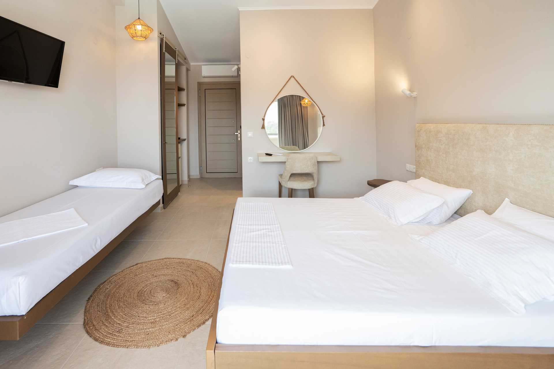 Superior-værelse med balkon eller terrasse. Værelserne er placeret i en bygning, der bygges til sommeren 2025. En dobbeltseng. Gratis wifi, aircondition og deponering. Køleskab. El-kedel og kaffe/te. Tv med internationale kanaler. Bluetooth højttaler. Strygejern og strygebræt. Badekåber og tøfler. Hårtørrer. Badeværelse med bruser og toilet. Rengøring 7 gange om ugen.