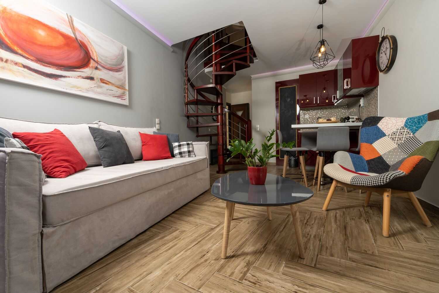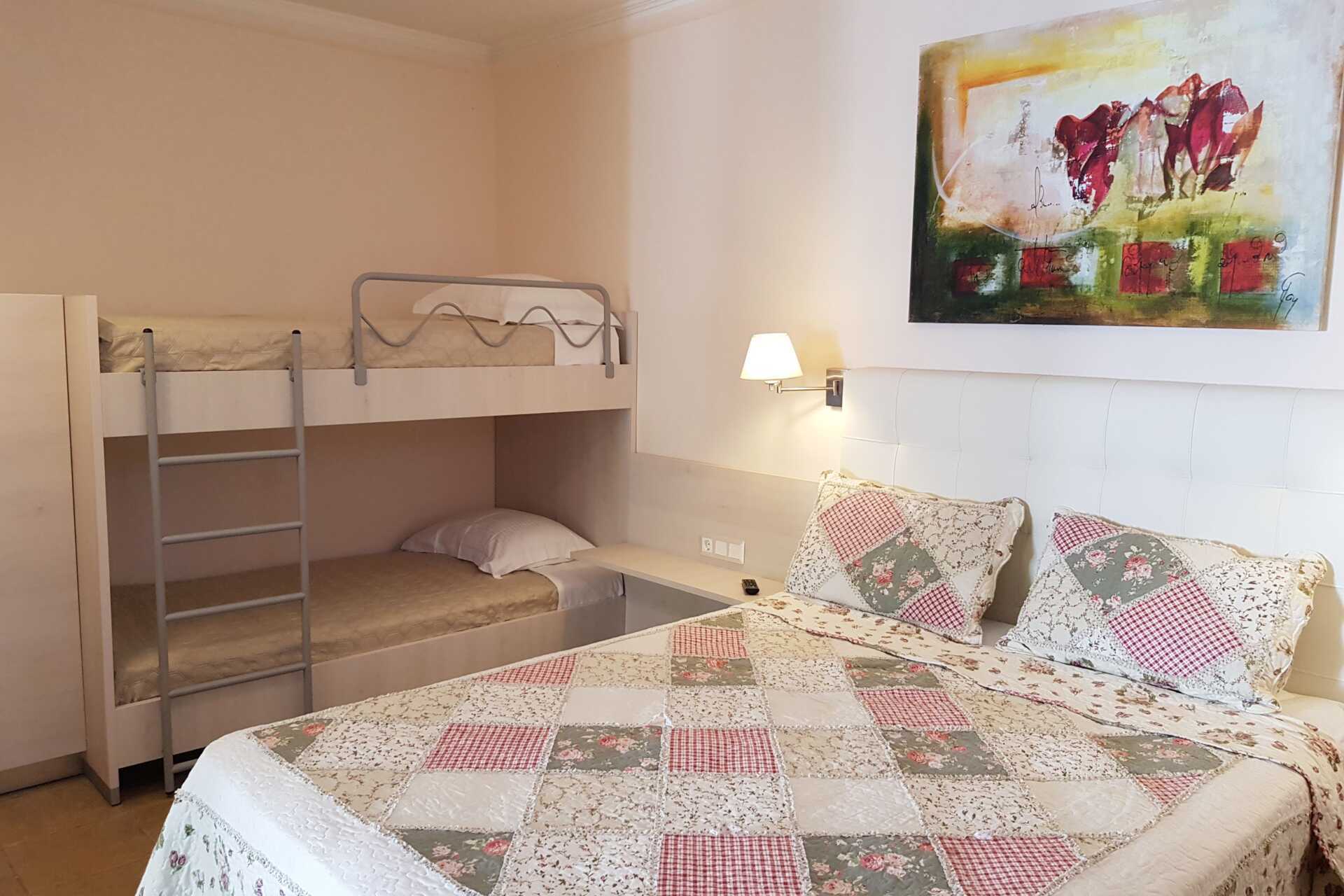 1-værelses lejlighed i etage med balkon. På entréplan er der et kombineret opholdsrum med minikøkken, badeværelse og mulighed for ekstra opredning sovesofa. Ovenpå er der hems med badeværelse og dobbeltseng. Smal vindeltrappe mellem etagerne. Minikøkken med kogeplader, køleskab og fryser, mikroovn, el-kedel, kaffemaskine, brødrister og enkelt køkkenudstyr. Gratis wifi og aircondition. Tv med lokale kanaler. Hårtørrer. To badeværelser med bruser og toilet. Rengøring 7 gange om ugen.