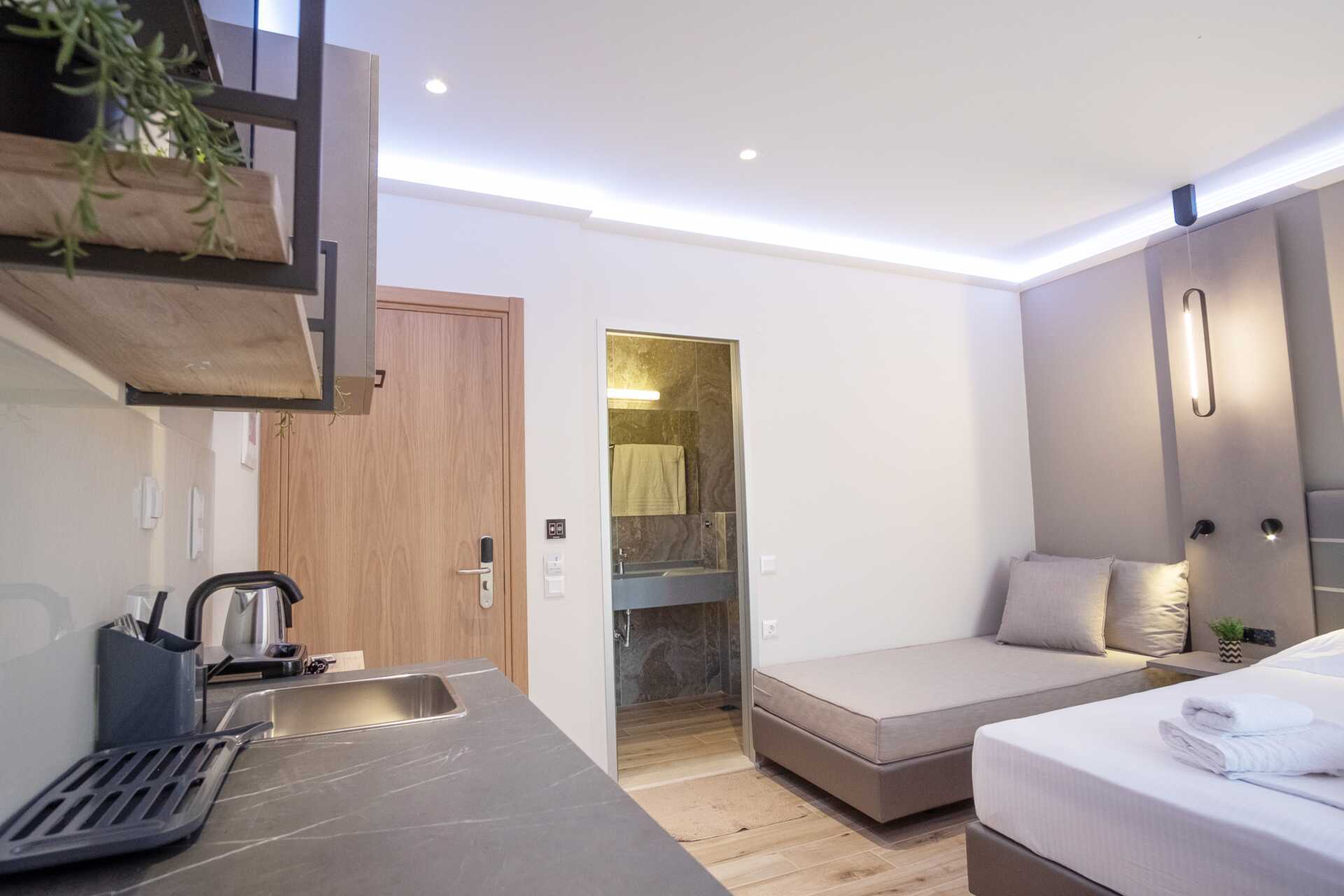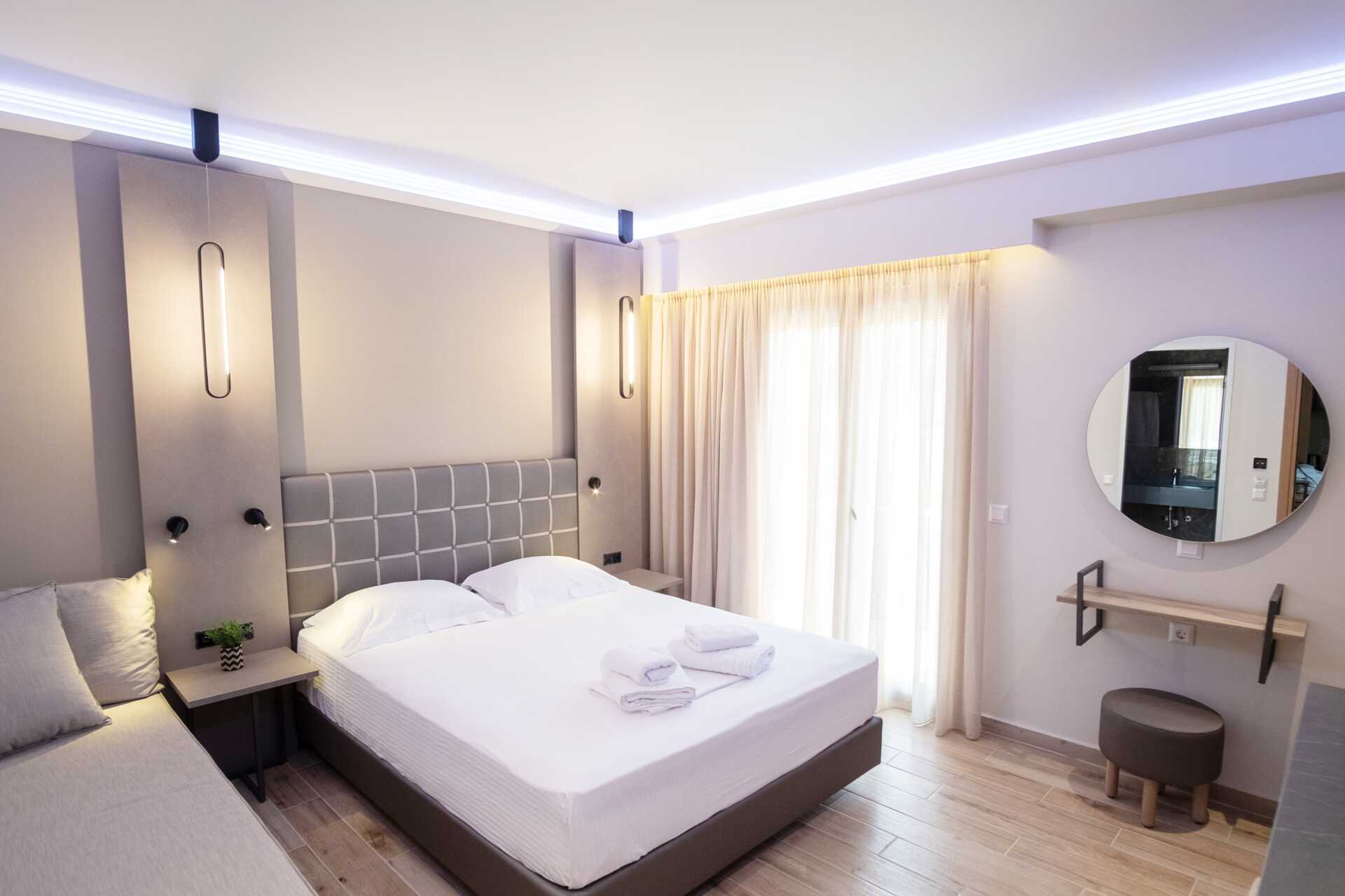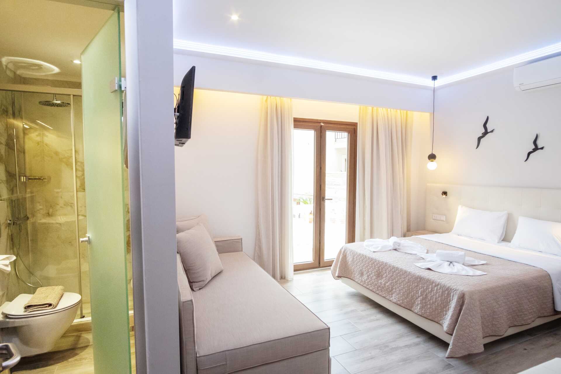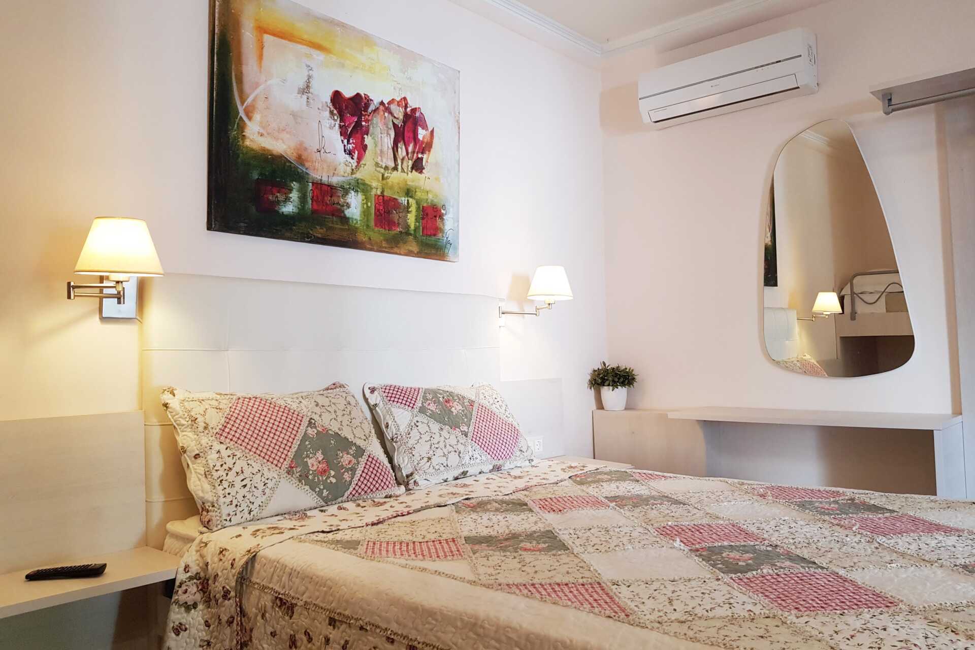 Renoveret dobbeltværelse med balkon. En dobbeltseng. Mulighed for ekstra opredninger i sovesofa/daybed. Gratis wifi og aircondition. Køleskab, el-kedel, kaffemaskine og sandwichgrill. Tv med lokale kanaler. Hårtørrer. Badeværelse med bruser og toilet. Rengøring 7 gange om ugen.