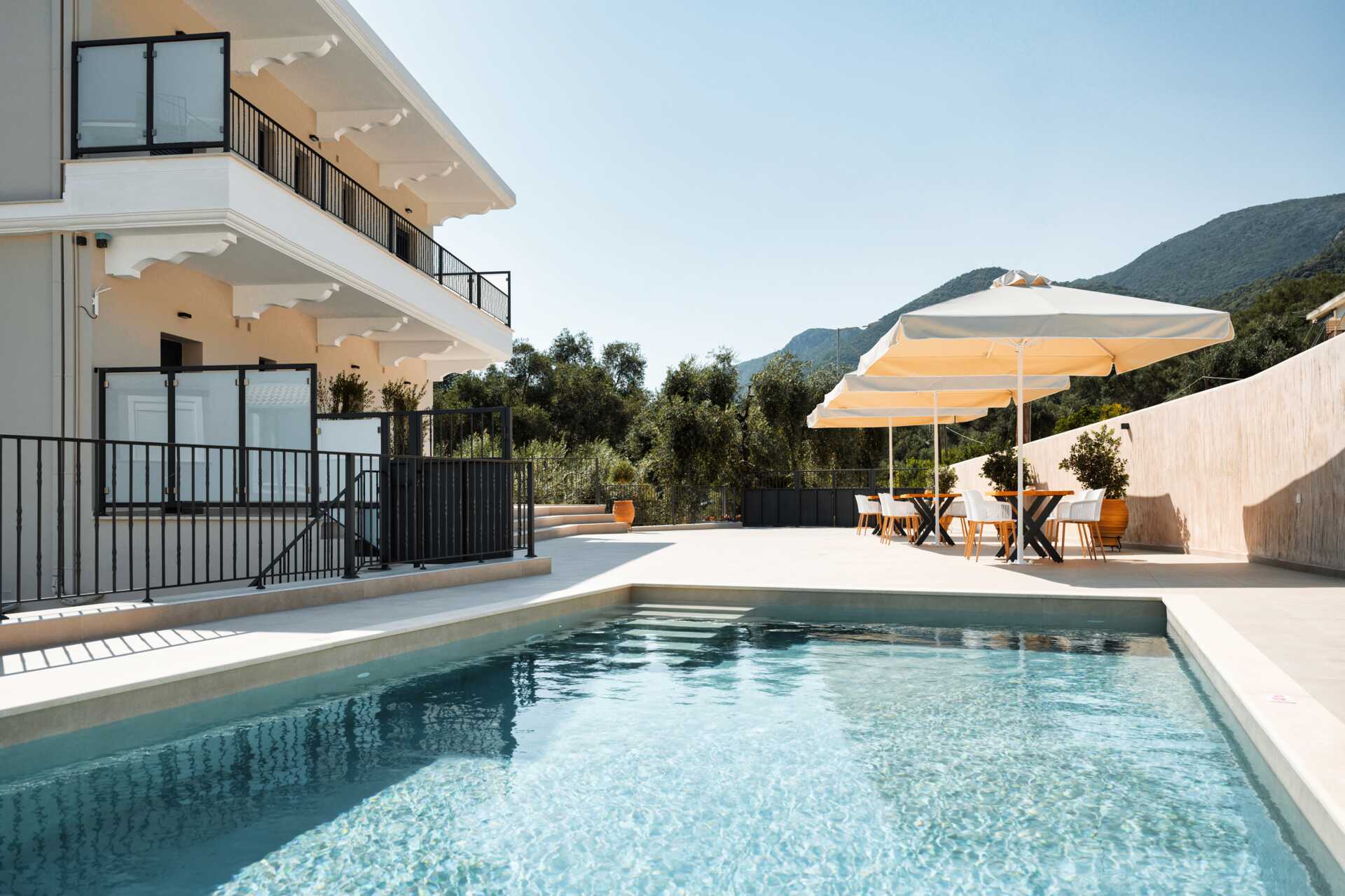 Suites of Happiness byder på fire pænt møblerede lejligheder og et poolområde med saltvandspool, solstole og parasoller. Vi anbefaler en lejebil, da den ligger lidt længere væk fra både Parga og stranden.
