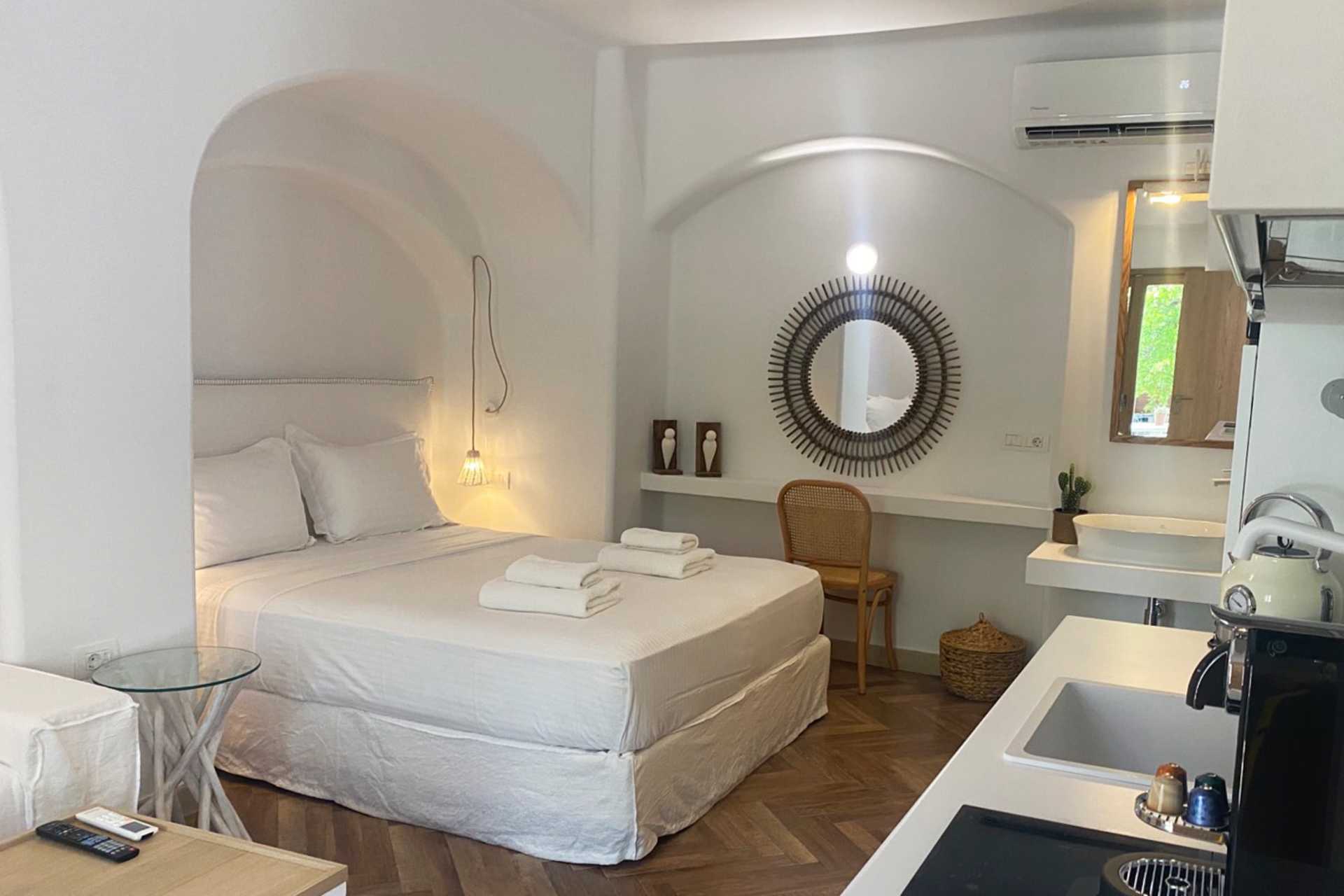 Vores “bolig” var I jeres beskrivelse betegnet som en suite, det var det ikke, studio var en bedre betegnelse. Vi boede i jordhøjde i et lille værelse, der lå i et anneks til hotellet, ikke i den bygning som I har afbilledet.