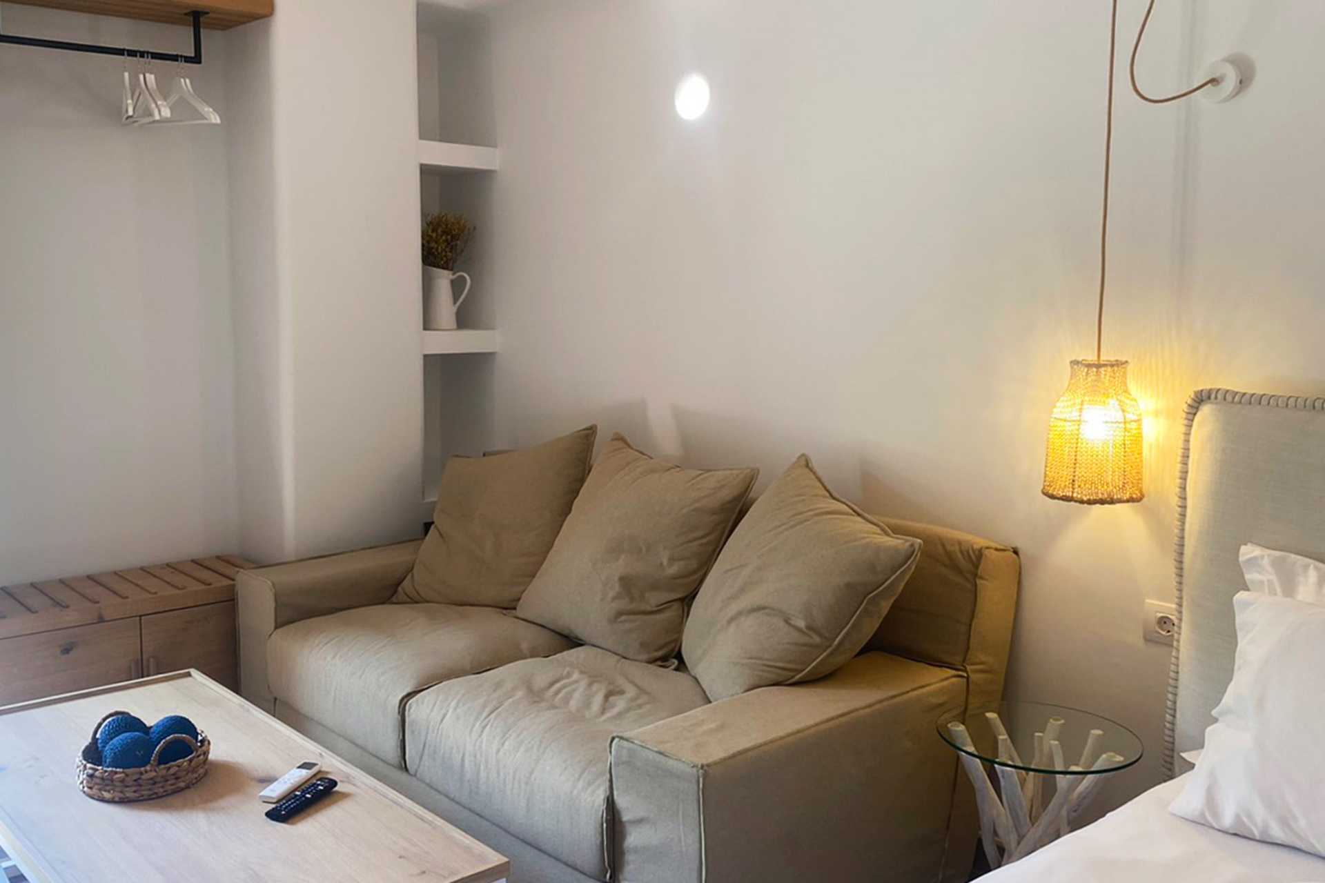 Suiter med balkon eller terrasse. Kombineret soveværelse og minikøkken. En dobbeltseng. Gratis wifi, aircondition og deponering. Minikøkken med køleskab, el-kedel og kaffe/te, Nespresso kaffemaskine, kaffemaskine, kogeplader og mikroovn. Tv med internationale kanaler. Strygefaciliteter. Badekåber og tøfler. Hårtørrer. Badeværelse med bruser og toilet. Rengøring 5 gange om ugen.