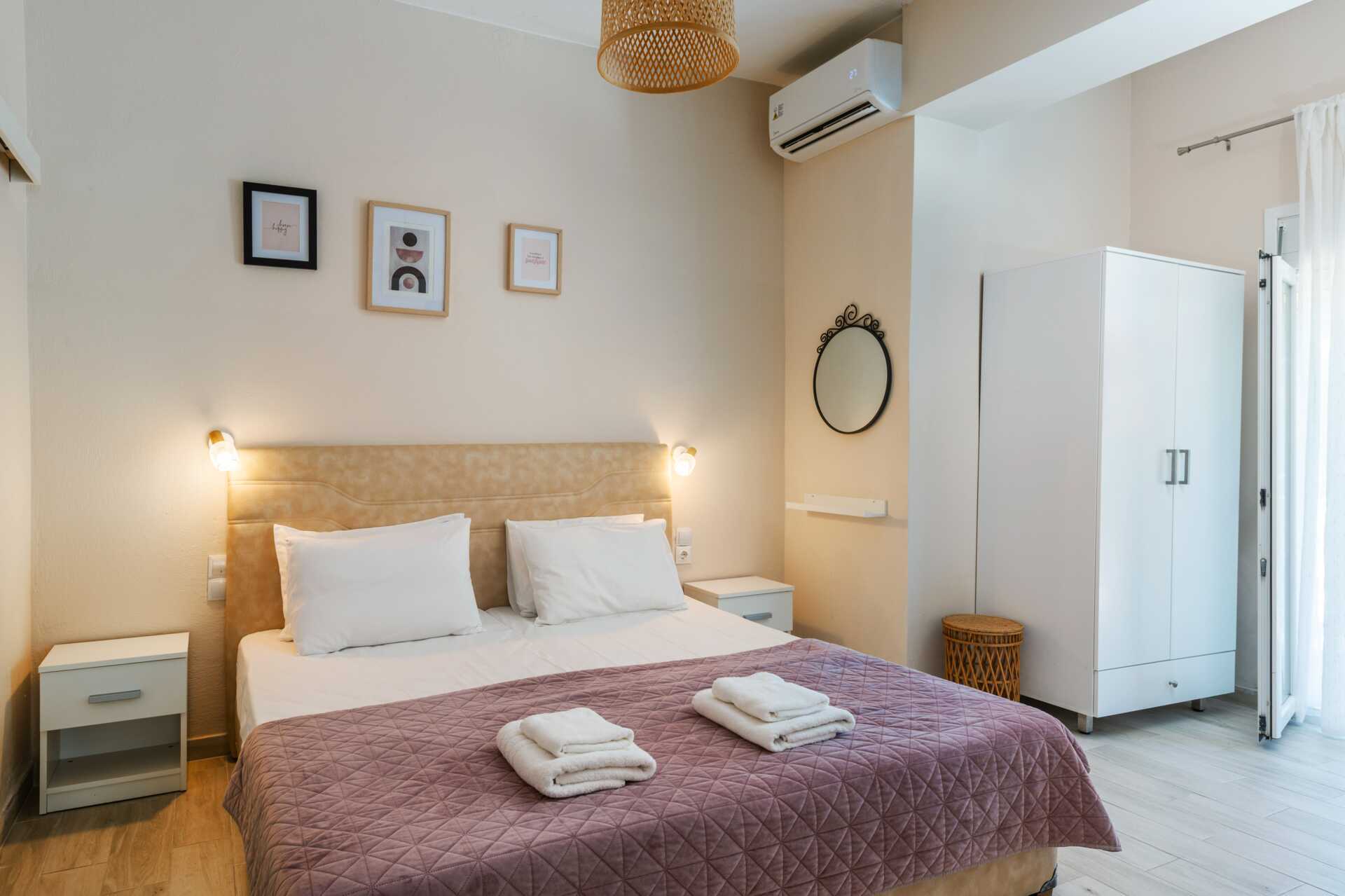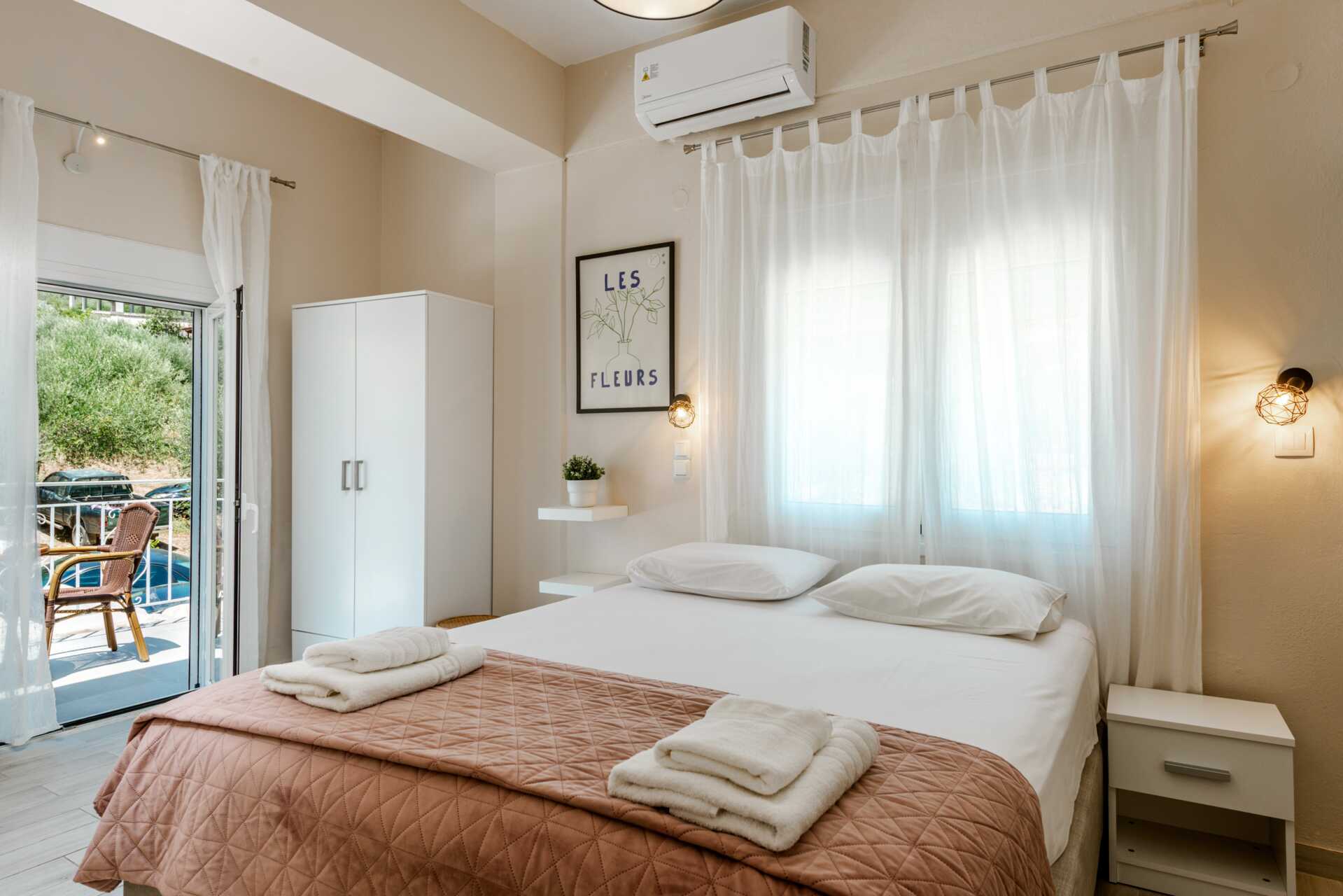 Dobbeltværelser med balkon. En dobbeltseng eller to enkeltsenge. Gratis wifi, aircondition og deponering. Tv med internationale kanaler. Hårtørrer. Badeværelse med bruser og toilet. Rengøring 6 gange om ugen.