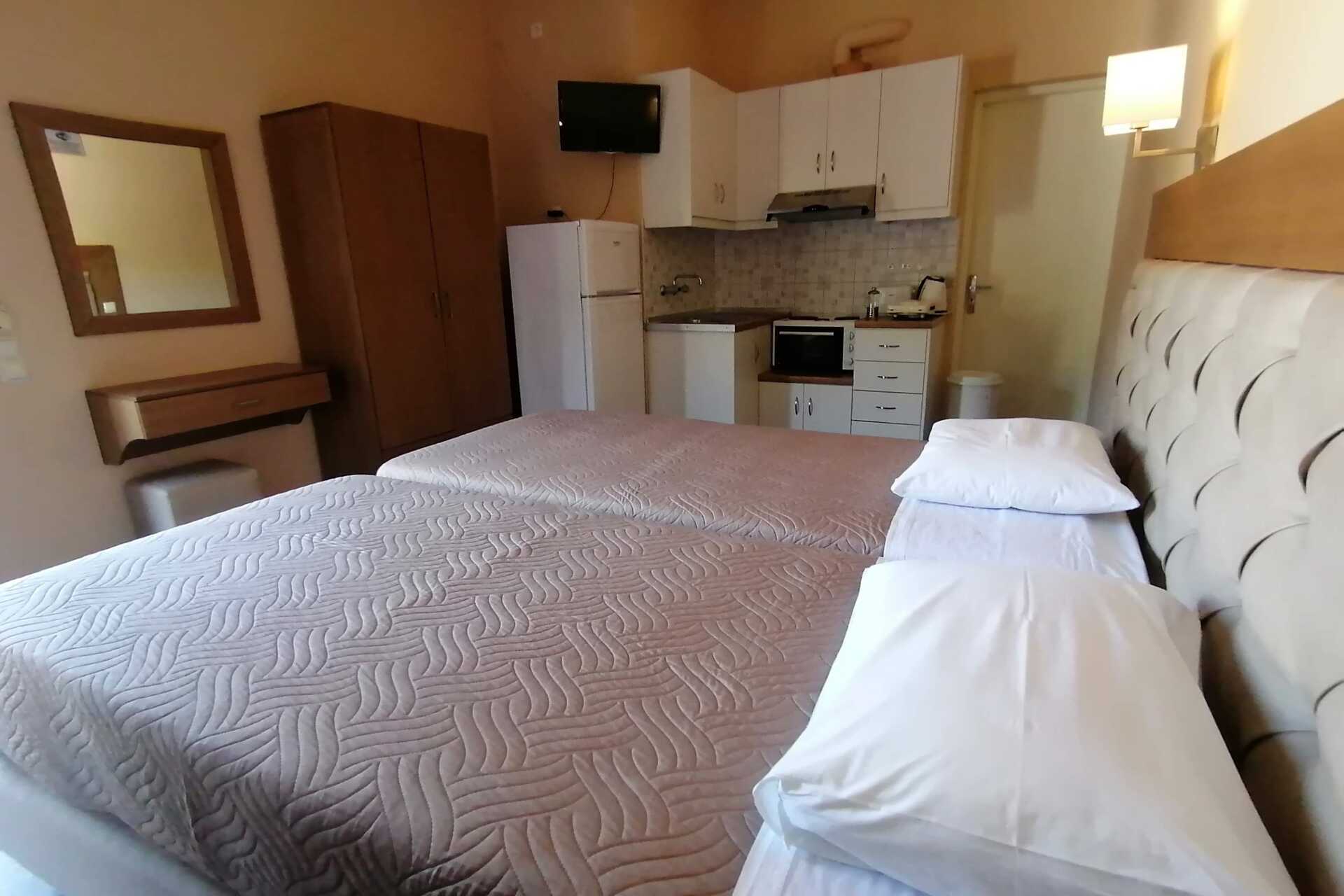 1-værelses lejligheder med balkon. Soveværelse kombineret med minikøkken. En dobbeltseng eller to enkeltsenge. Mulighed for ekstra opredning i sovesofa. Minikøkken med kogeplader, køleskab med fryser, brødrister, sandwichgrill, el-kedel og enkelt køkkenudstyr. Gratis wifi og deponering. Aircondition mod betaling. Tv med lokale kanaler. Hårtørrer. Badeværelse med bruser og toilet. Rengøring 5 gange om ugen.