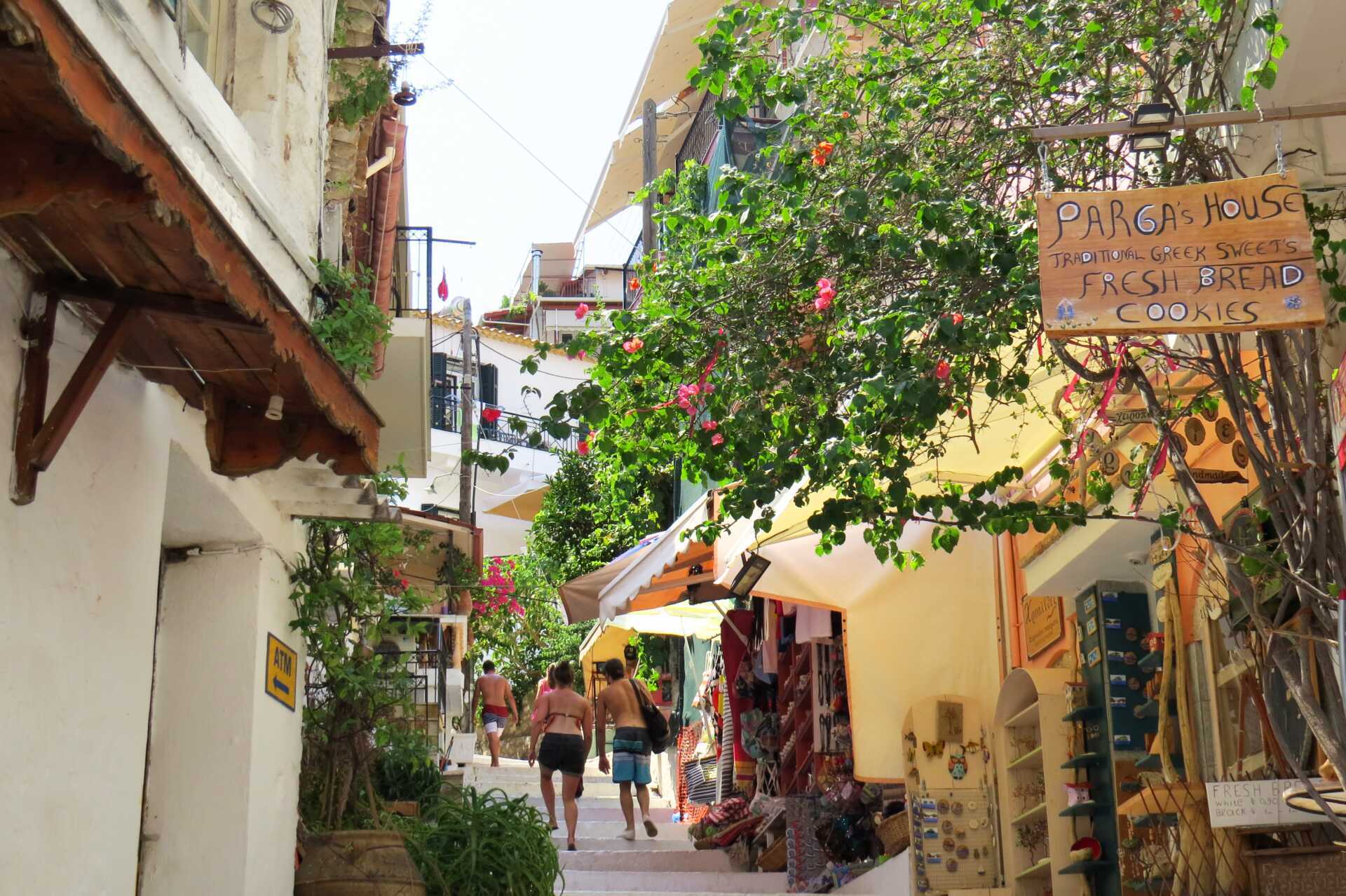 Parga ligger som et smukt amfiteater ved havnen. Om aftenen summer havnen af aktivitet, med hyggelig belysning fra de populære tavernaer, der ligger tæt sammen. Det dufter af grillmad og ferierende par slentrer rundt i den varme aftenbrise.