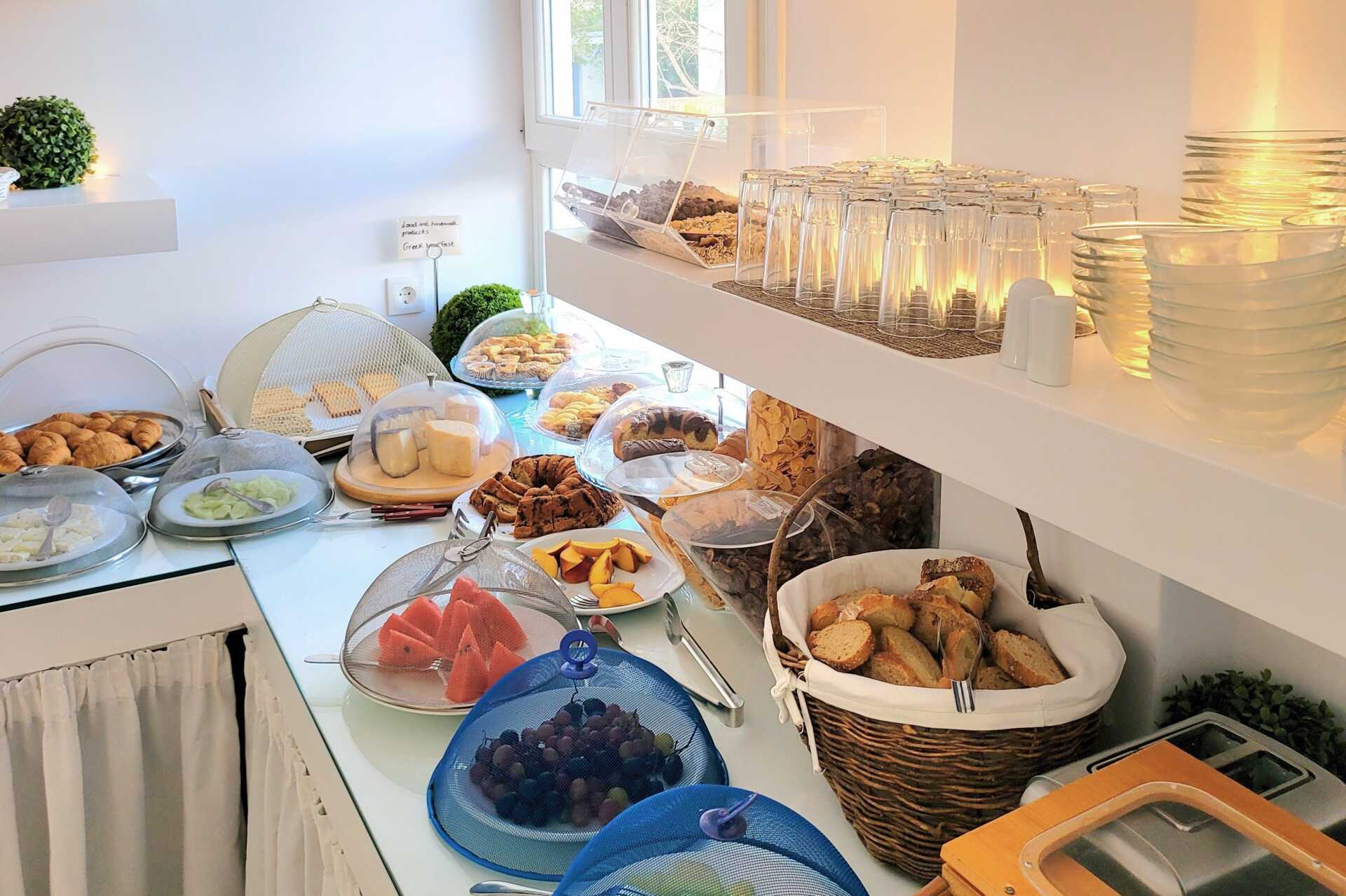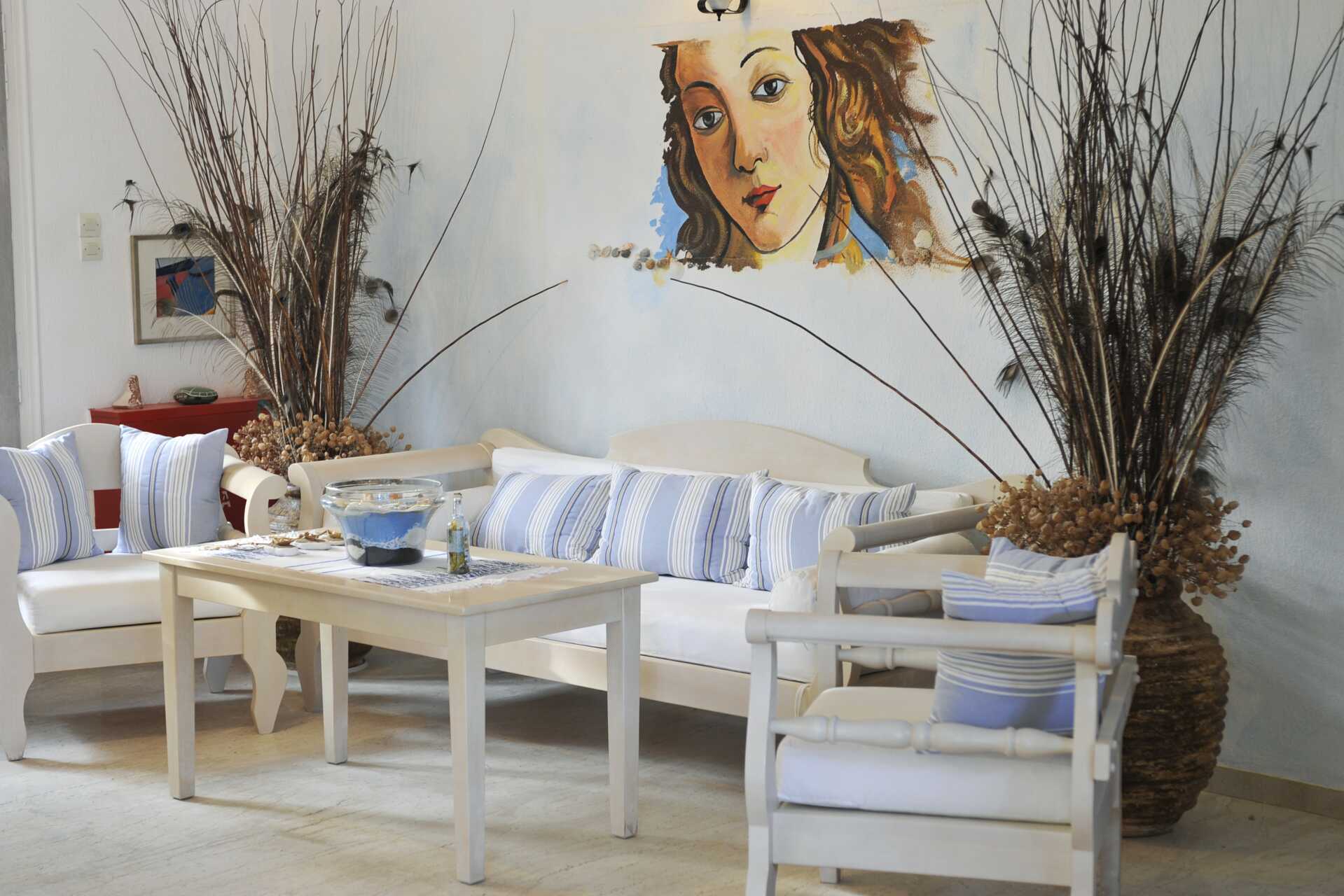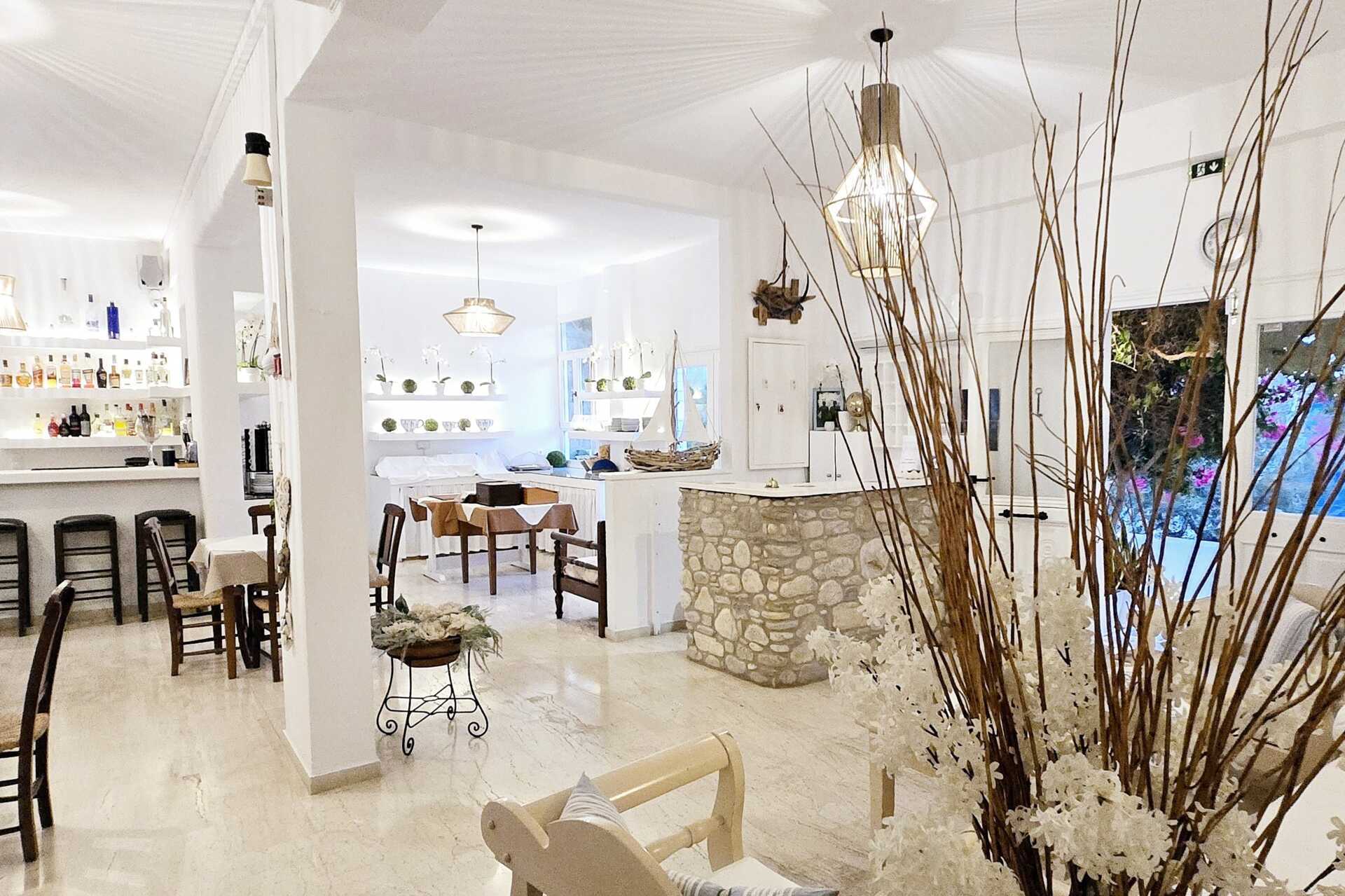Afrodite Boutique Hotel i traditionel kykladisk stil, har et poolområde med pool, omgivet af grønne områder, der klatrer op ad tag og vægge og giver en dejlig skygge, mens du slapper af i solstolen. Poolhåndklæder indgår. Ved poolområdet ligger også den kombinerede bar og morgenmadslokale. Du kan også spise morgenmaden udendørs under vinstokkene. Vil du bade i havet, er der flere fine strande efter en lidt længere gåtur.
