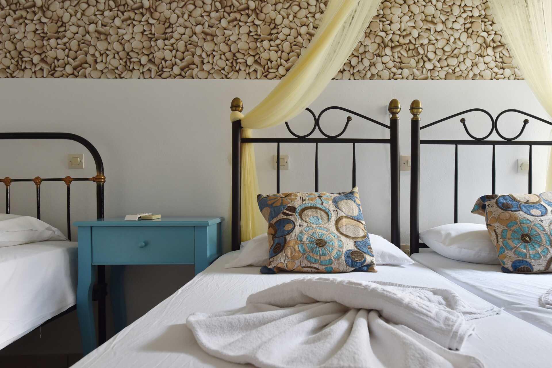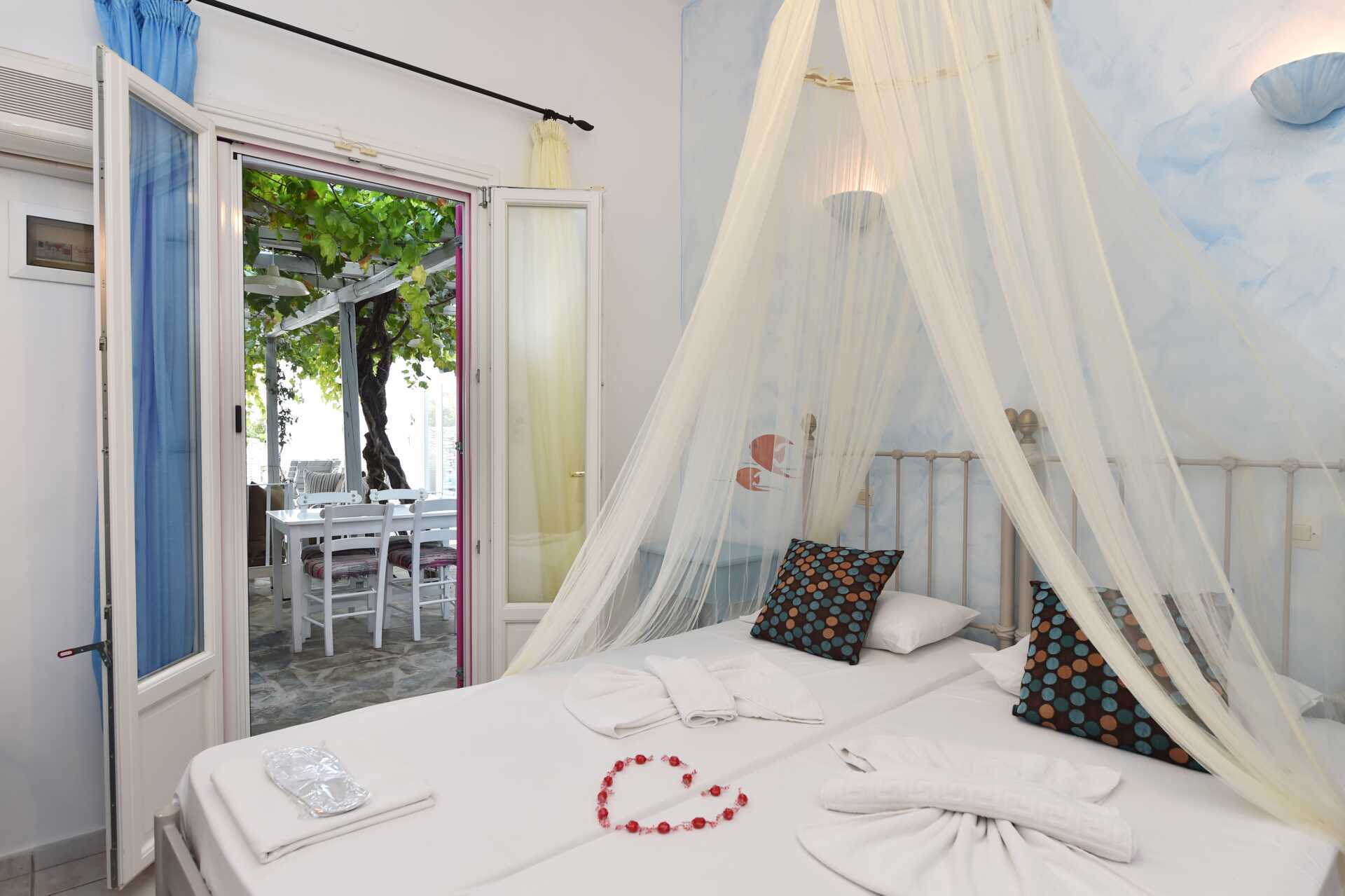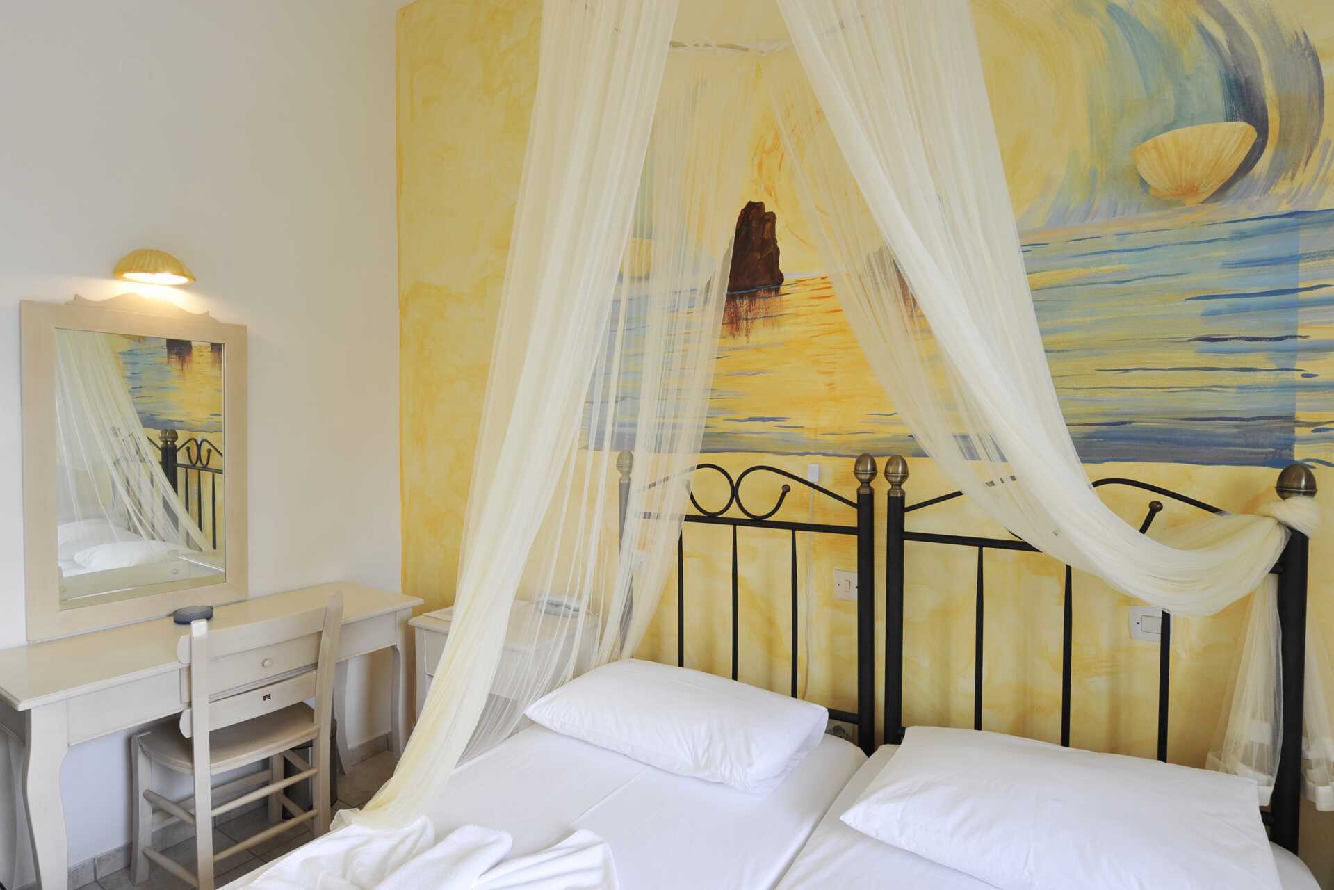 Dobbeltværelse med balkon eller terrasse. En dobbeltseng eller to enkeltsenge. Gratis wifi og aircondition. Køleskab. El-kedel. Tv med internationale kanaler. Hårtørrer. Badeværelse med bruser og toilet. Rengøring 7 gange om ugen.