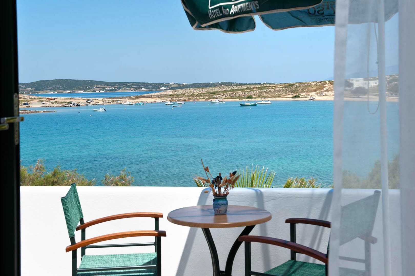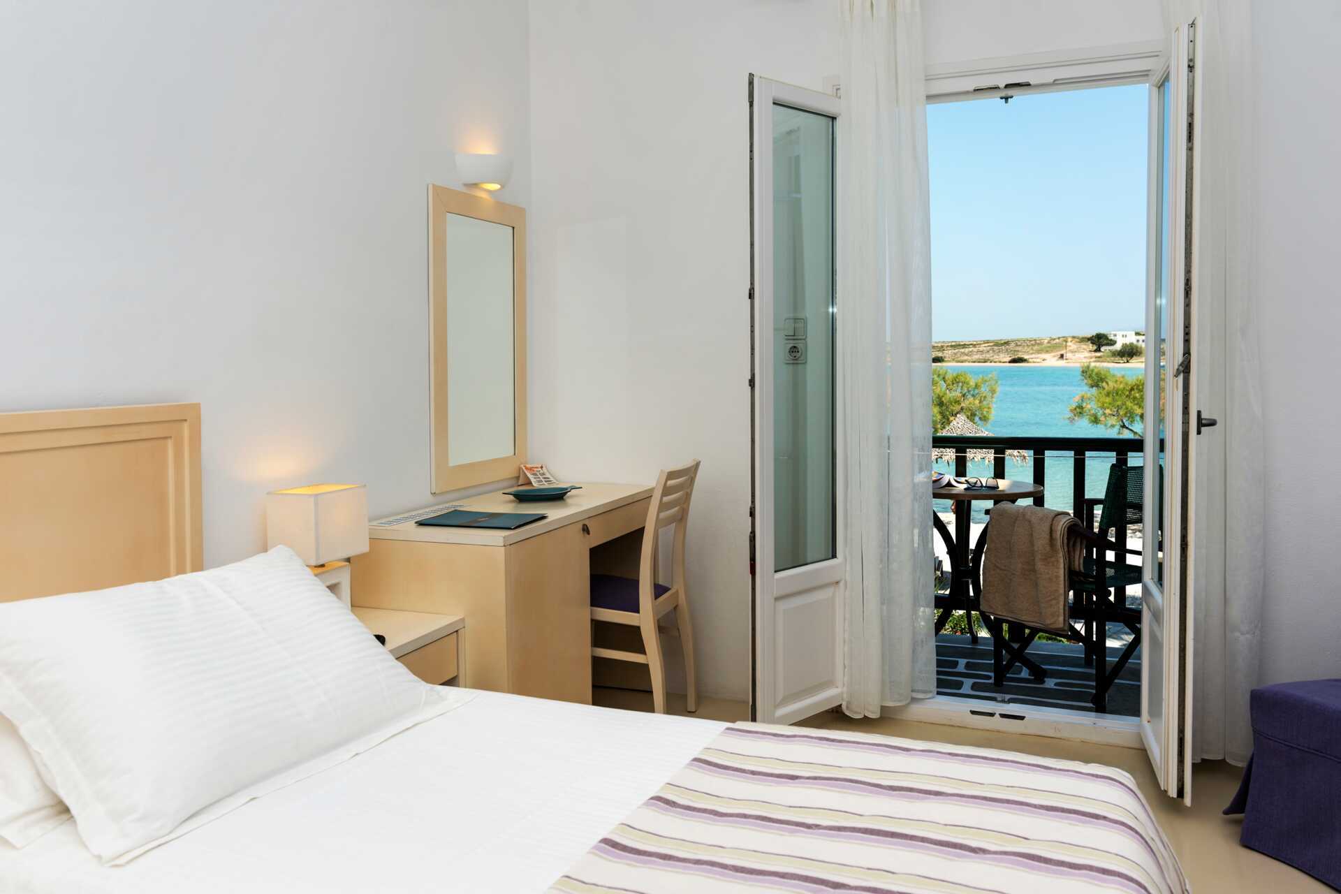 Hotel Kalypso ligger lige ved stranden og en kort gåtur fra centrum og havnen i Naussa på Paros. Hotellet er idyllisk bygget i traditionel stil og med stranden og havet som nærmeste nabo. Sæt dig ned under cypresserne, nyd duftene og mærk feriestemningen komme.