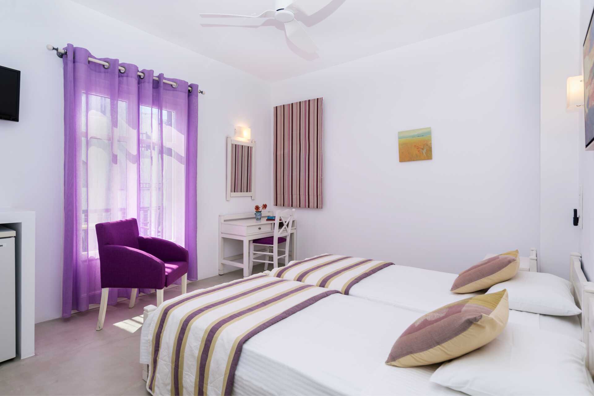 2-værelses suiter med balkon eller terrasse. Suiten består af to værelser, et med dobbeltseng fra COCO-MAT og et med to enkeltsenge, der kan laves om til sofaer. Gratis wifi, aircondition og deponering. Køleskab. Tv med internationale kanaler. Hårtørrer. Badeværelse med bruser og toilet. Rengøring 7 gange om ugen.