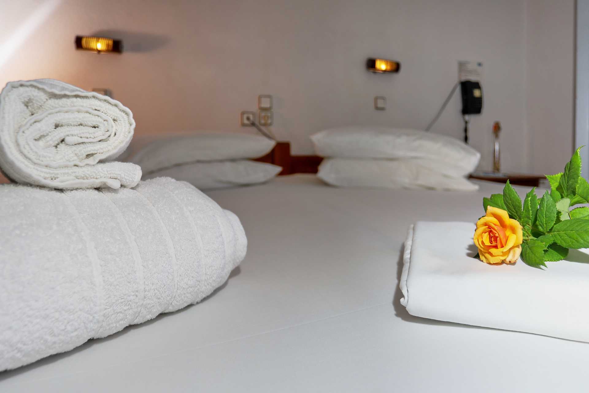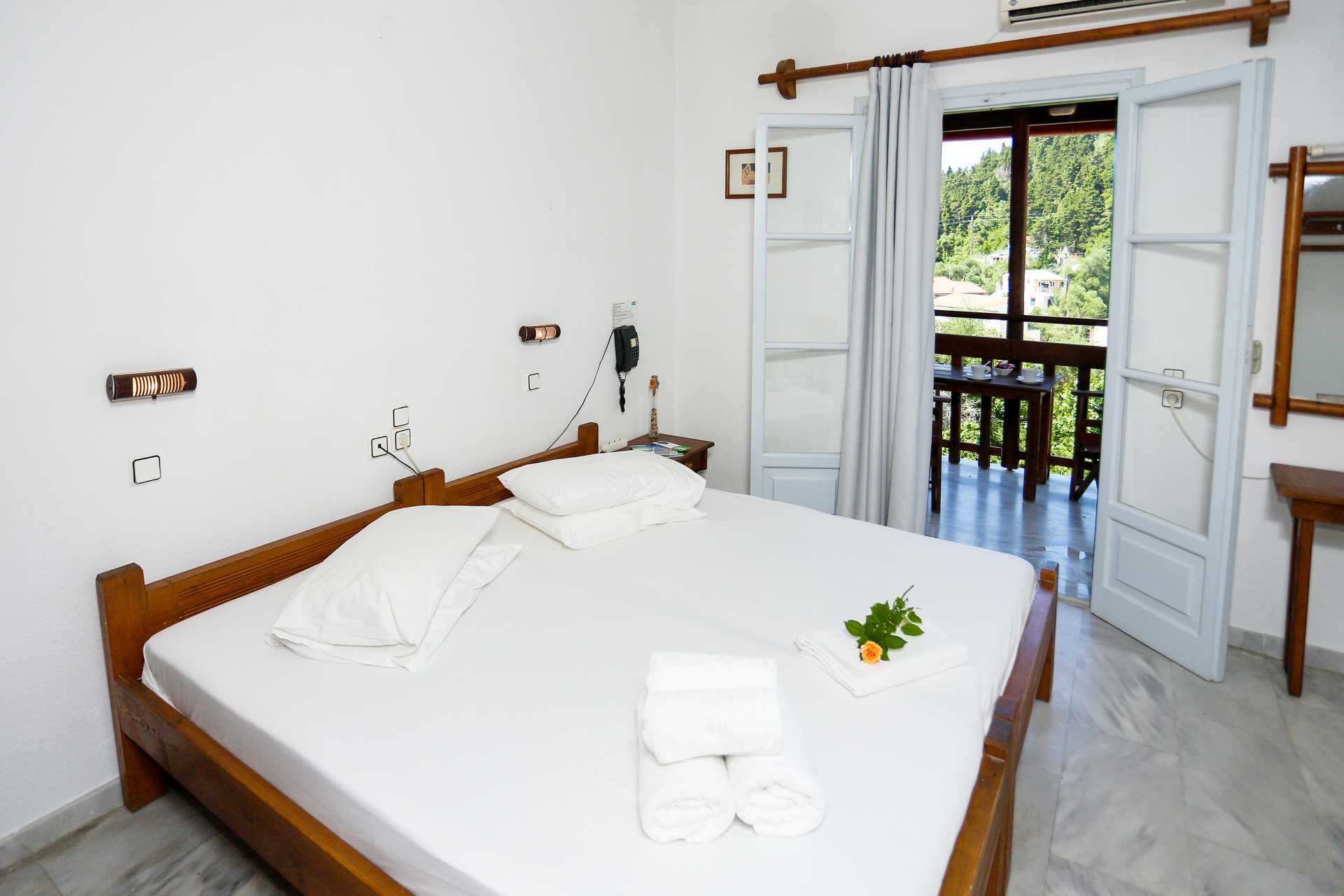 Dobbeltværelse med balkon eller terrasse. En dobbeltseng eller to enkeltsenge. Gratis wifi, aircondition og deponering. Wifi er kun tilgængelig på terrassen. Køleskab. Tv. Hårtørrer. Badeværelse med badekar eller bruser samt toilet. Rengøring 7 gange om ugen.