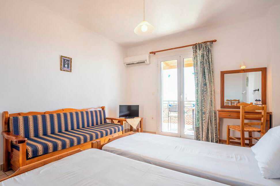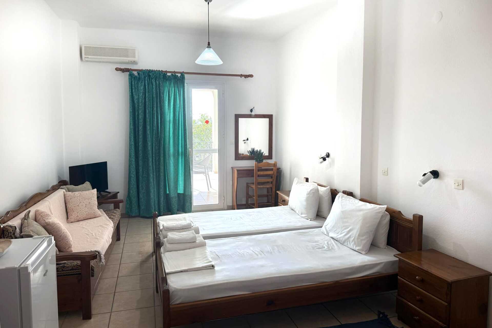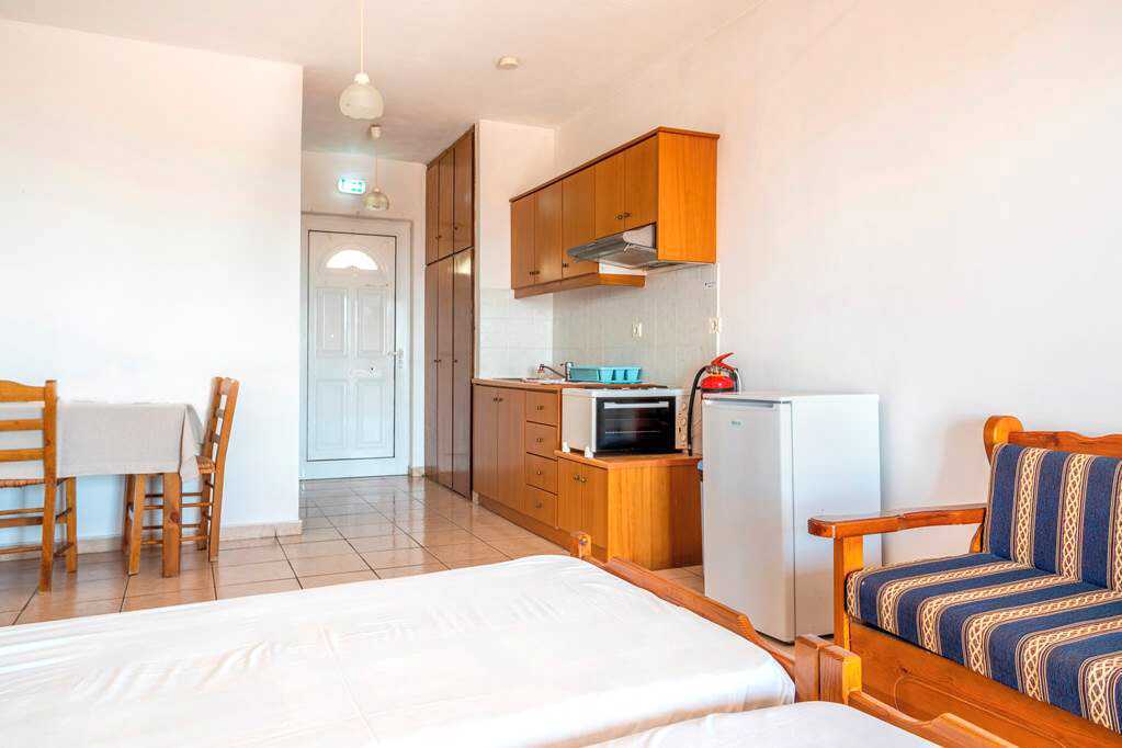 1-værelses lejligheder med balkon eller terrasse. Opholdsrum med minikøkken. To enkeltsenge. Minikøkken med kogeplader, køleskab, el-kedel, kaffemaskine, brødrister og enkelt køkkenudstyr. Gratis wifi og aircondition. Badeværelse med bruser og toilet. Rengøring 5 gange om ugen.