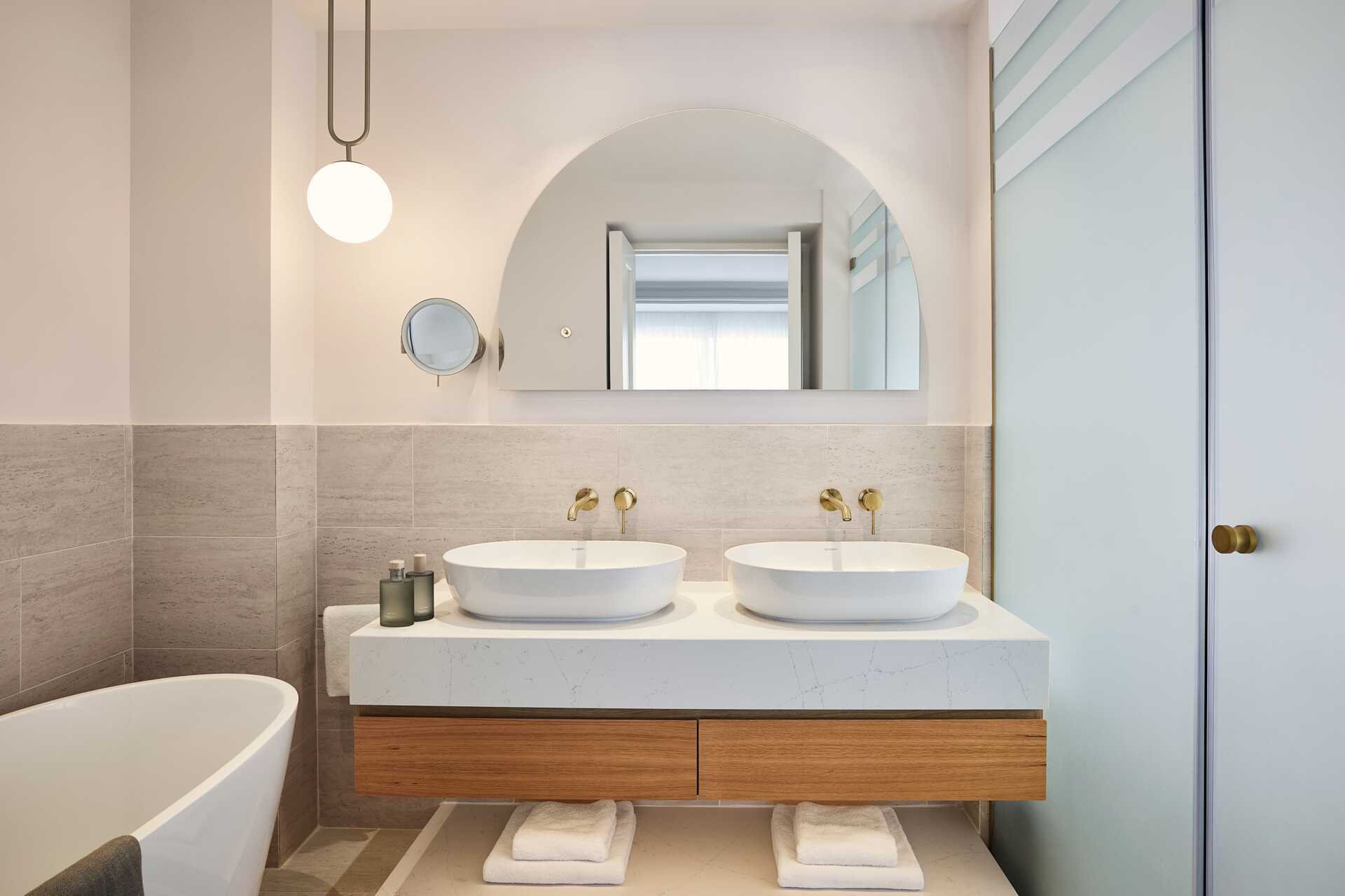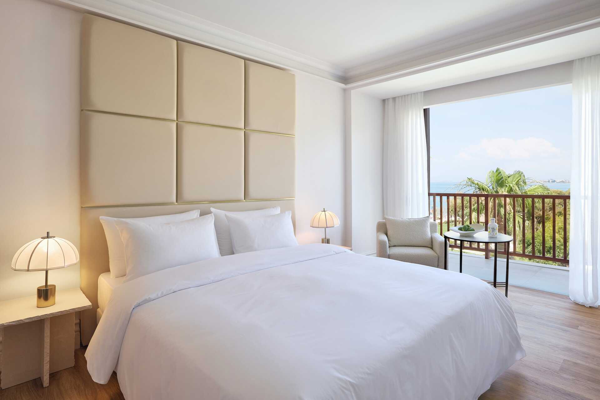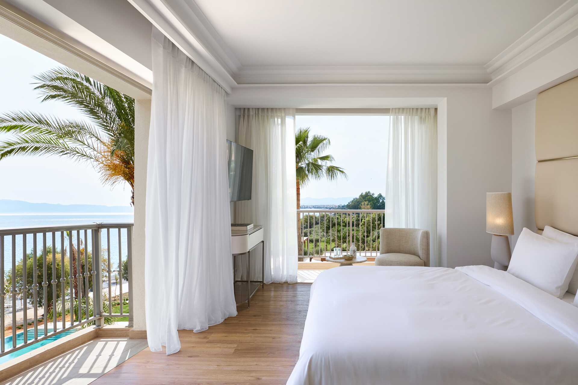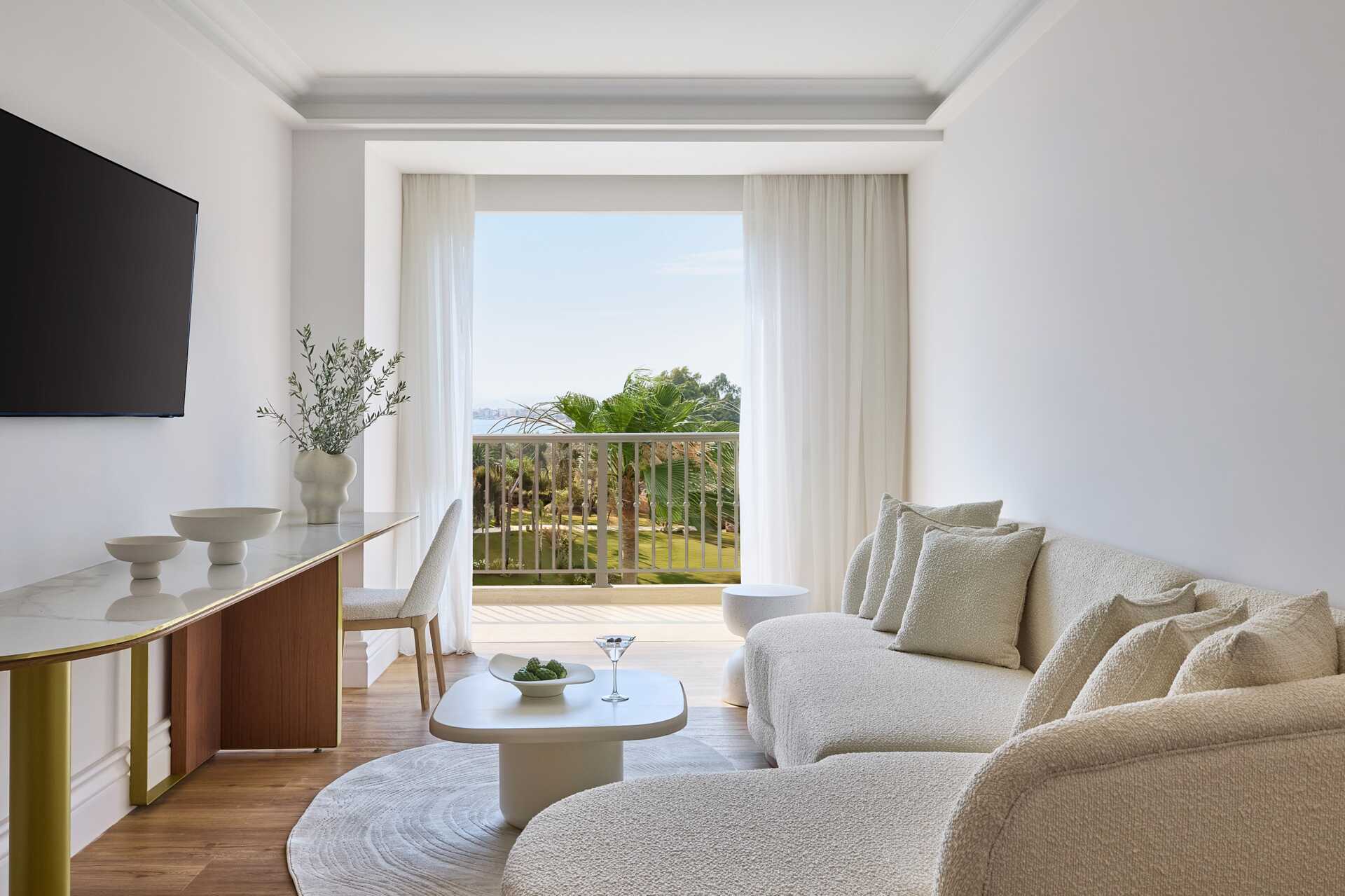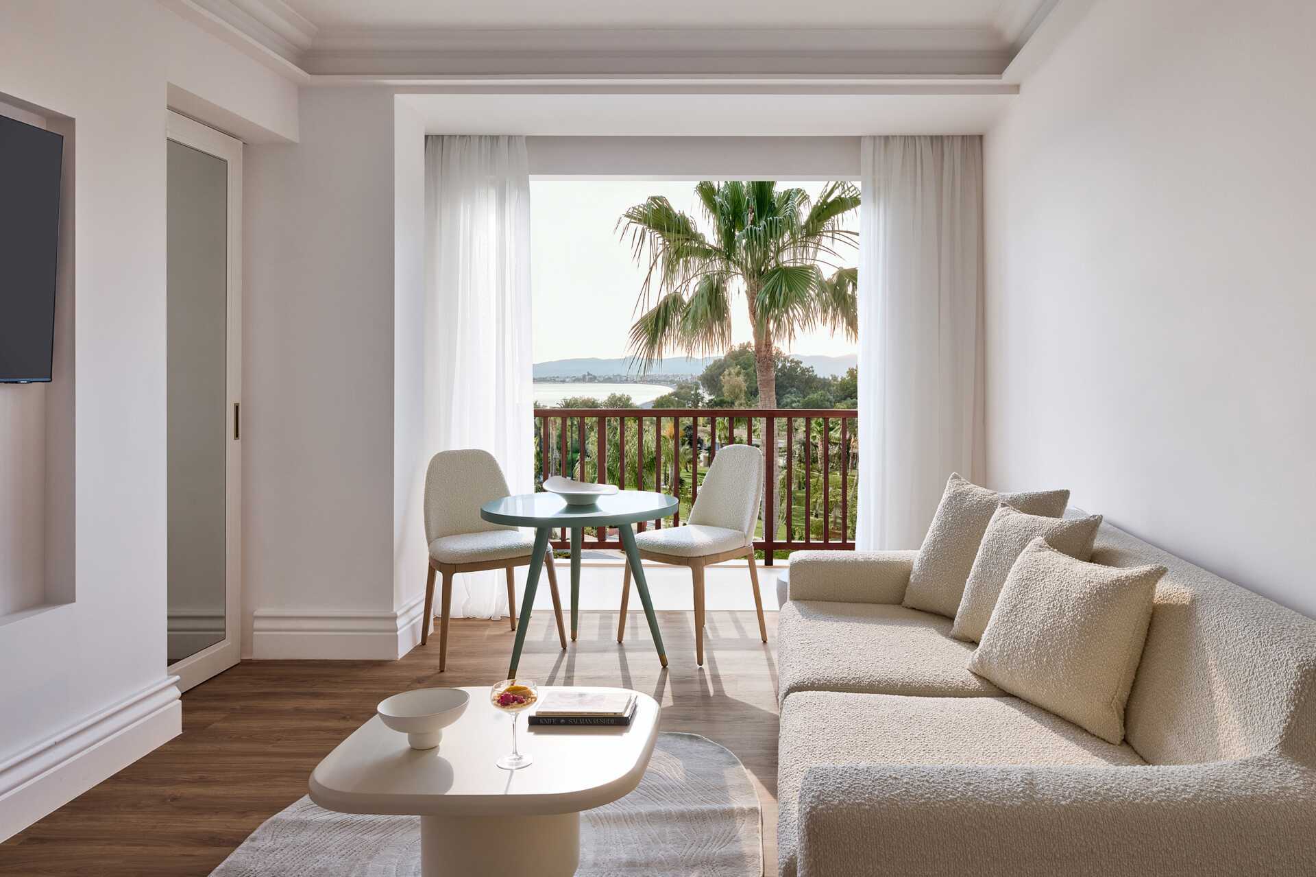 Suiter med balkon eller terrasse og havudsigt. Soveværelse og opholdsrum. En dobbeltseng. Mulighed for ekstra opredning i sovesofa. Gratis wifi, aircondition og deponering. Køleskab. Tv med internationale kanaler. Hårtørrer. Badeværelse med bruser og toilet. Rengøring 7 gange om ugen. Børn under to år tæller med i det maksimale antal personer på værelset.
