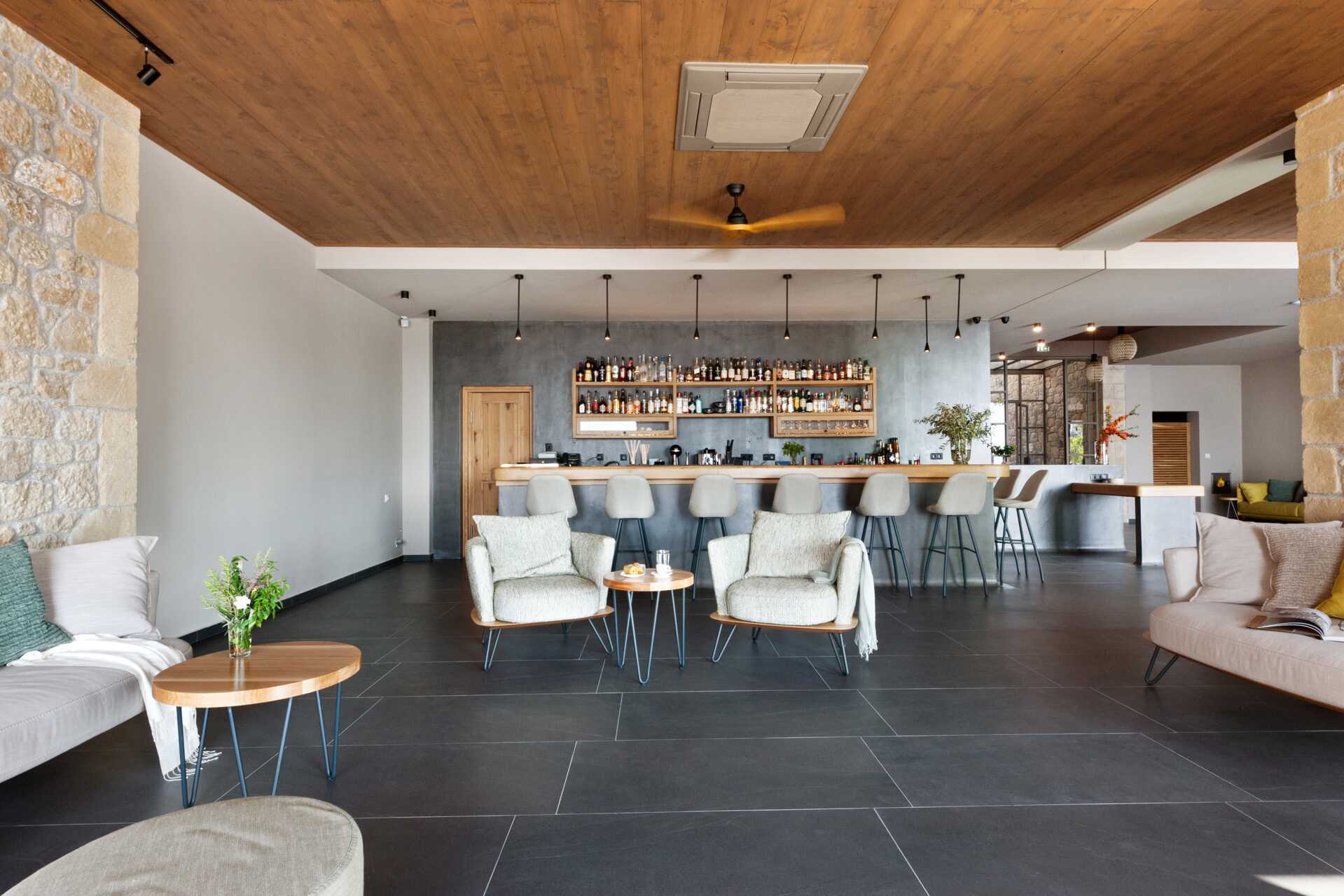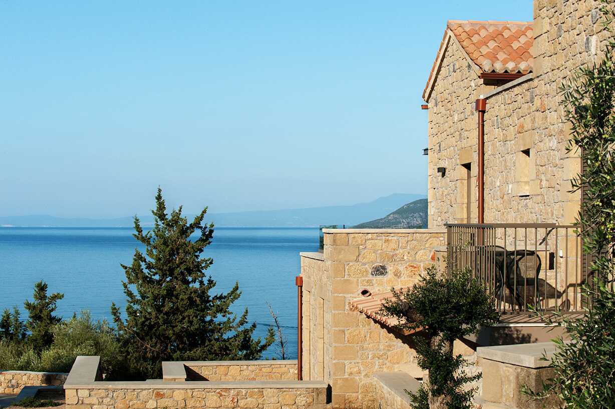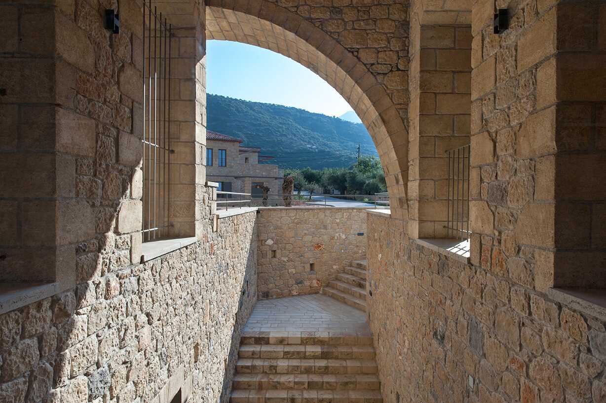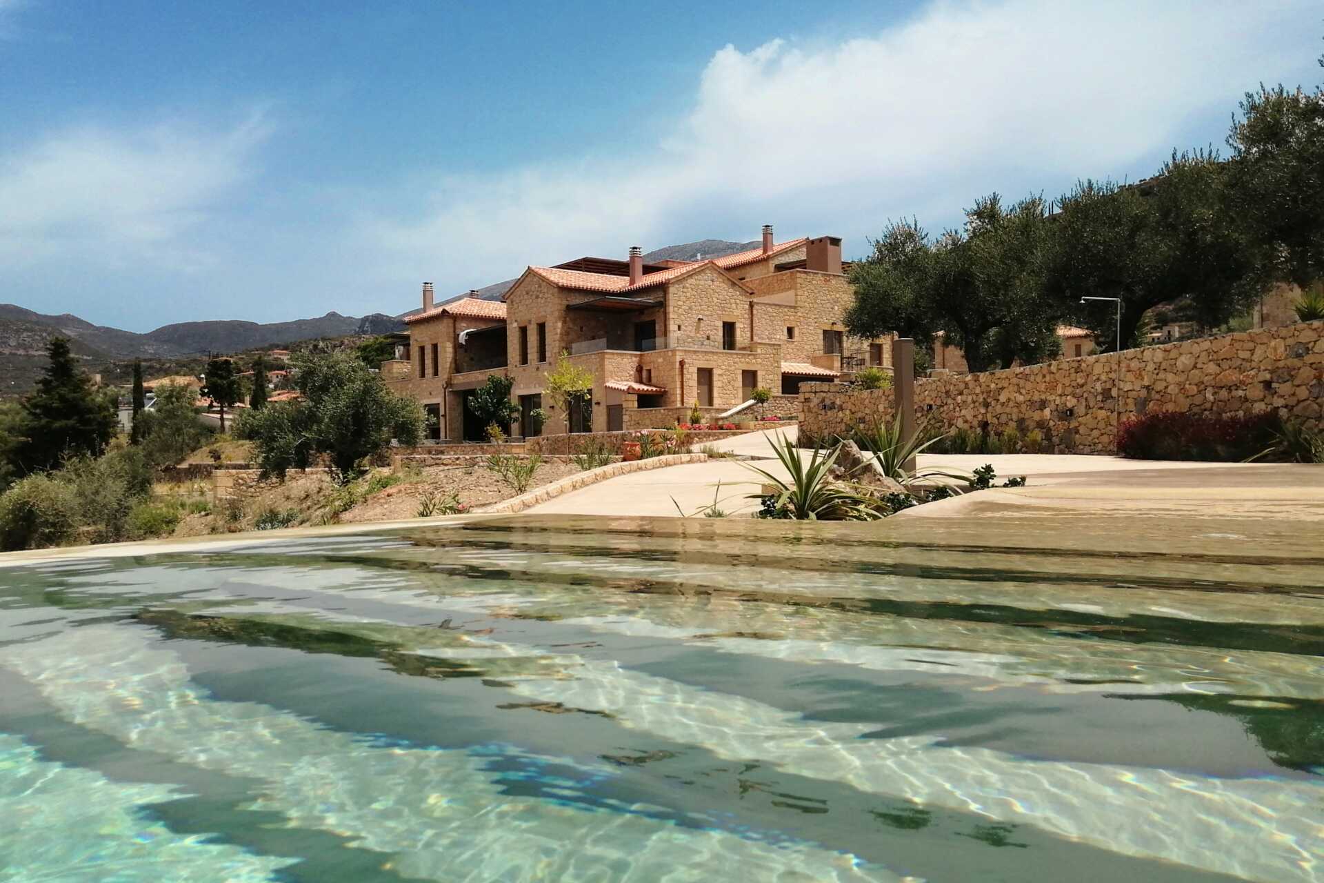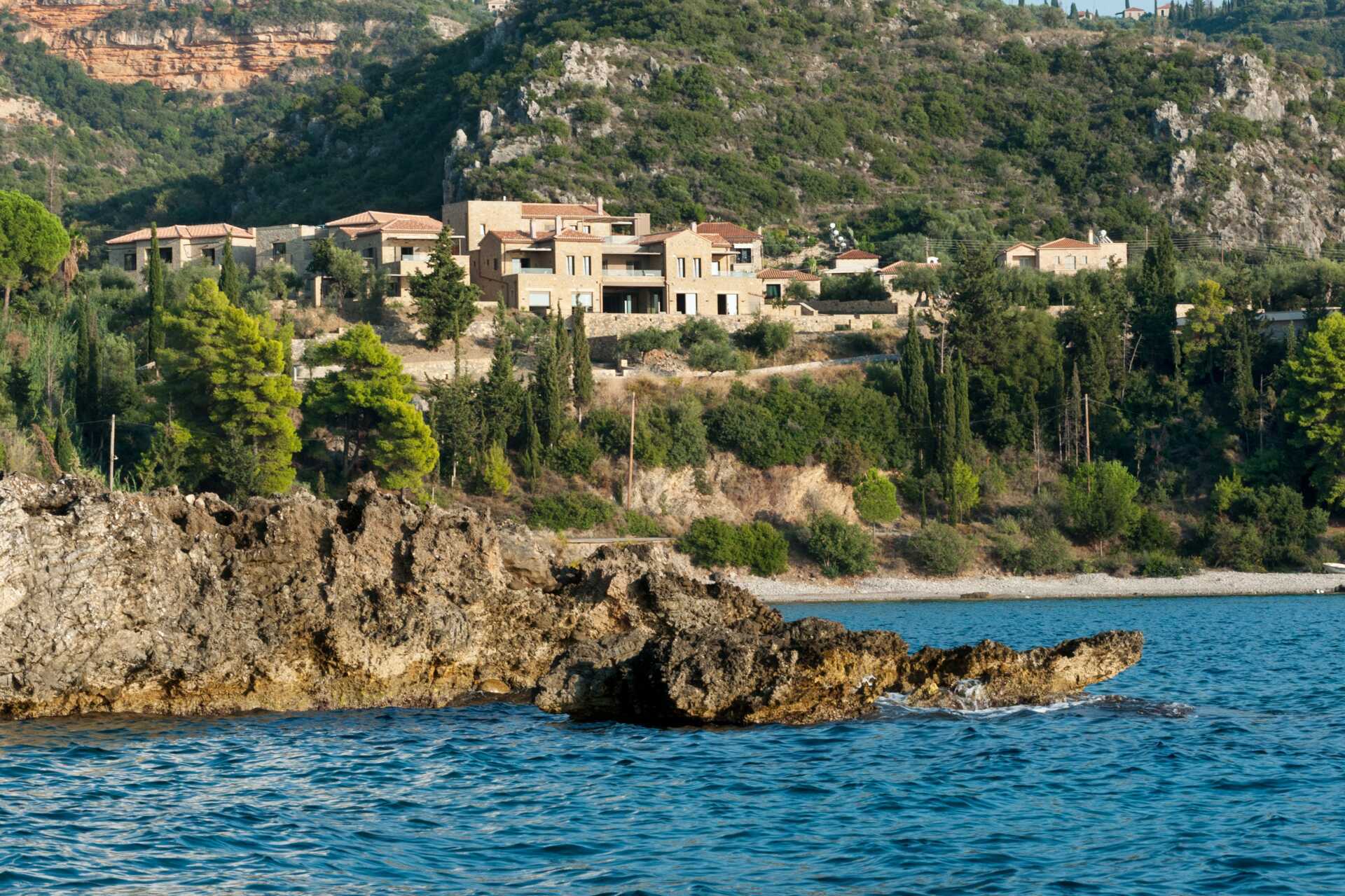 Hotellet, som består af flere mindre stenbygninger med en eller to etager, ligger blot en halv km uden for Kardamili, omgivet af sølvgrønne olivenlunde og farverige frugtplantager. Fra den lille bakke, som hotellet ligger på, har du udsigt over en lille bugt med en lang hvid stenstrand.