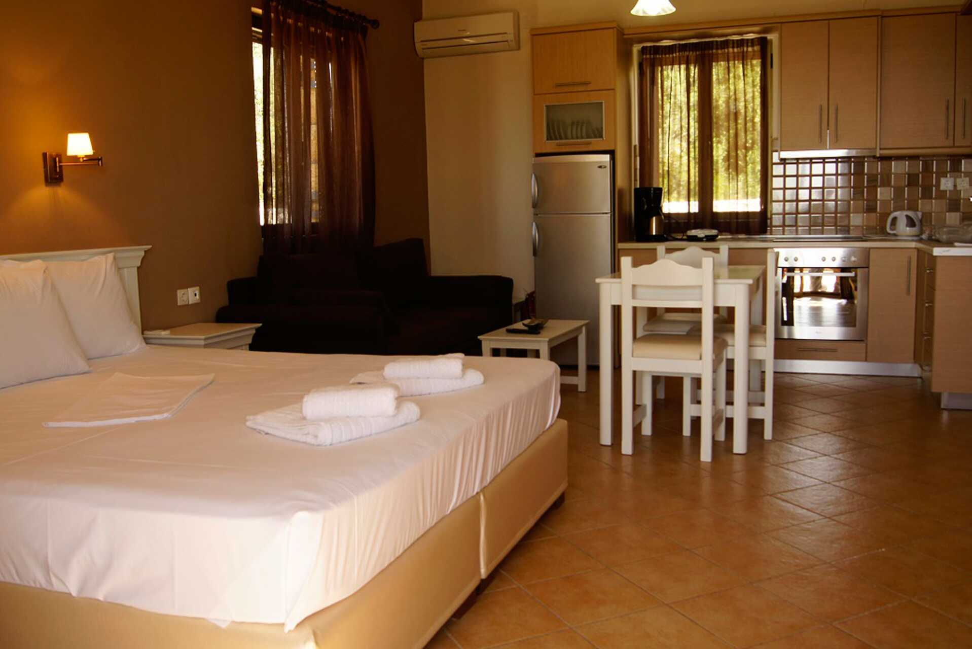 Lidt højere oppe på hotellet (bookes via hoteldelen Kolokotronis Villas) findes veludstyrede 2- og 3-værelses lejligheder med eget poolområde, der omfatter en pool med børnesektion samt solstole og parasoller.